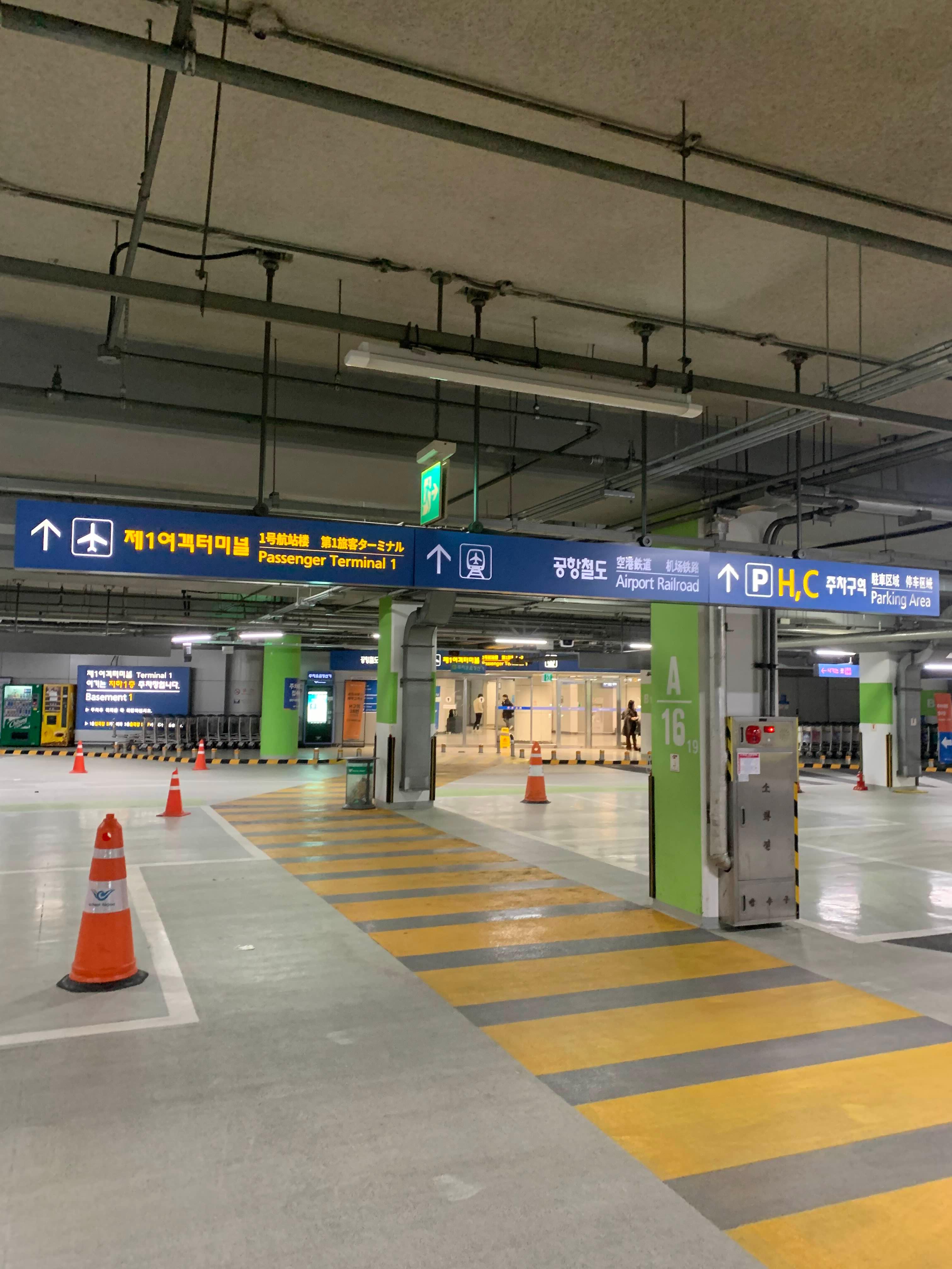 주차하고 내리면 바로 1 여객터미널로 이동할 수 있는 길로 연결된다.