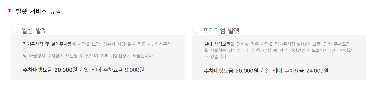 발렛 및 주차비용
