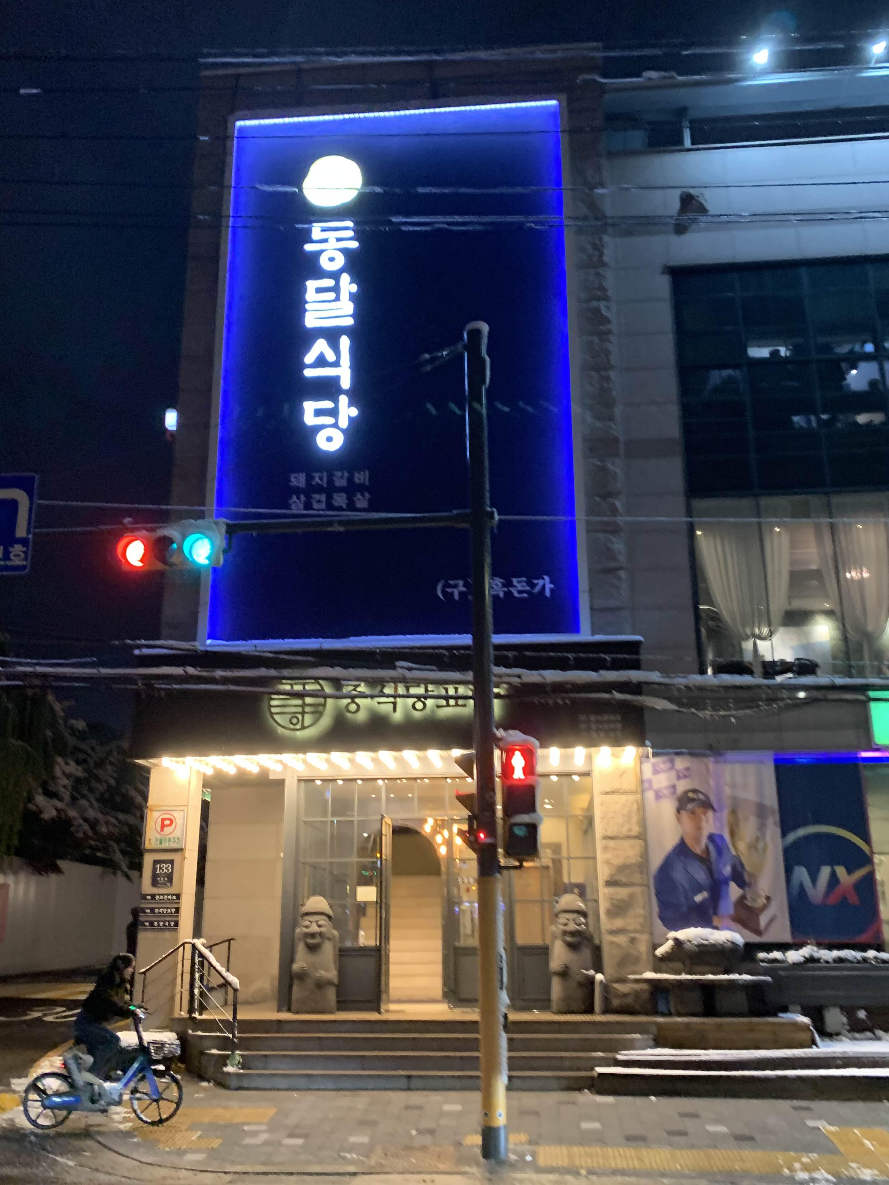 내부 사진은 안 찍었지만, 입구 쪽에 홀이 있고, 좌측으로 들어가면 룸들이 있다. 인테리어는 전반적으로 고급적이고 손님들도 어느 정도 분위기 있는 모습이었다. 눈이 많이 왔던 날 퇴근하고 첫째와 눈사람 만들어주고 옷이 젖어 운동복으로 갈아입고 나왔는데 나만 운동복이었다.