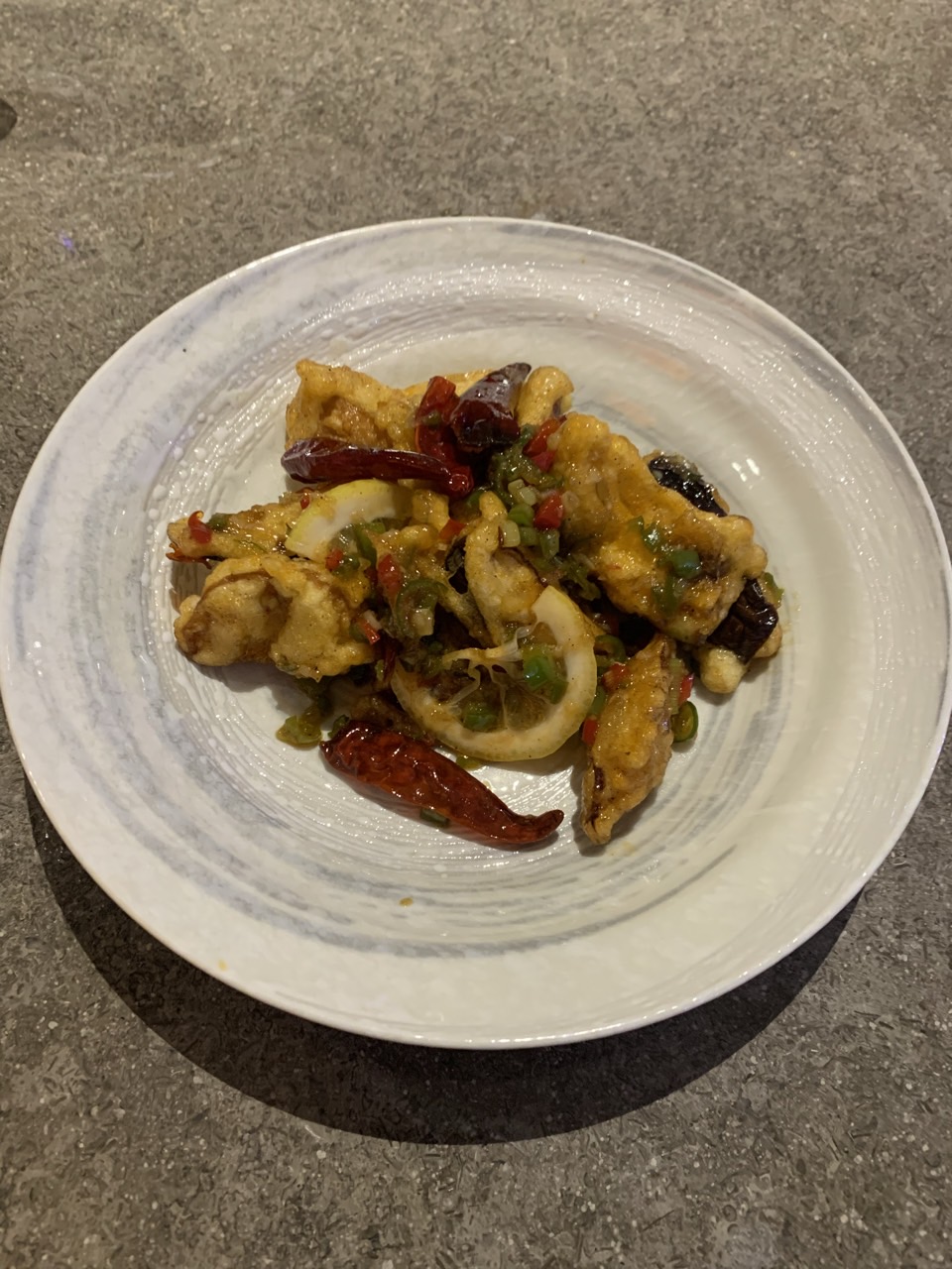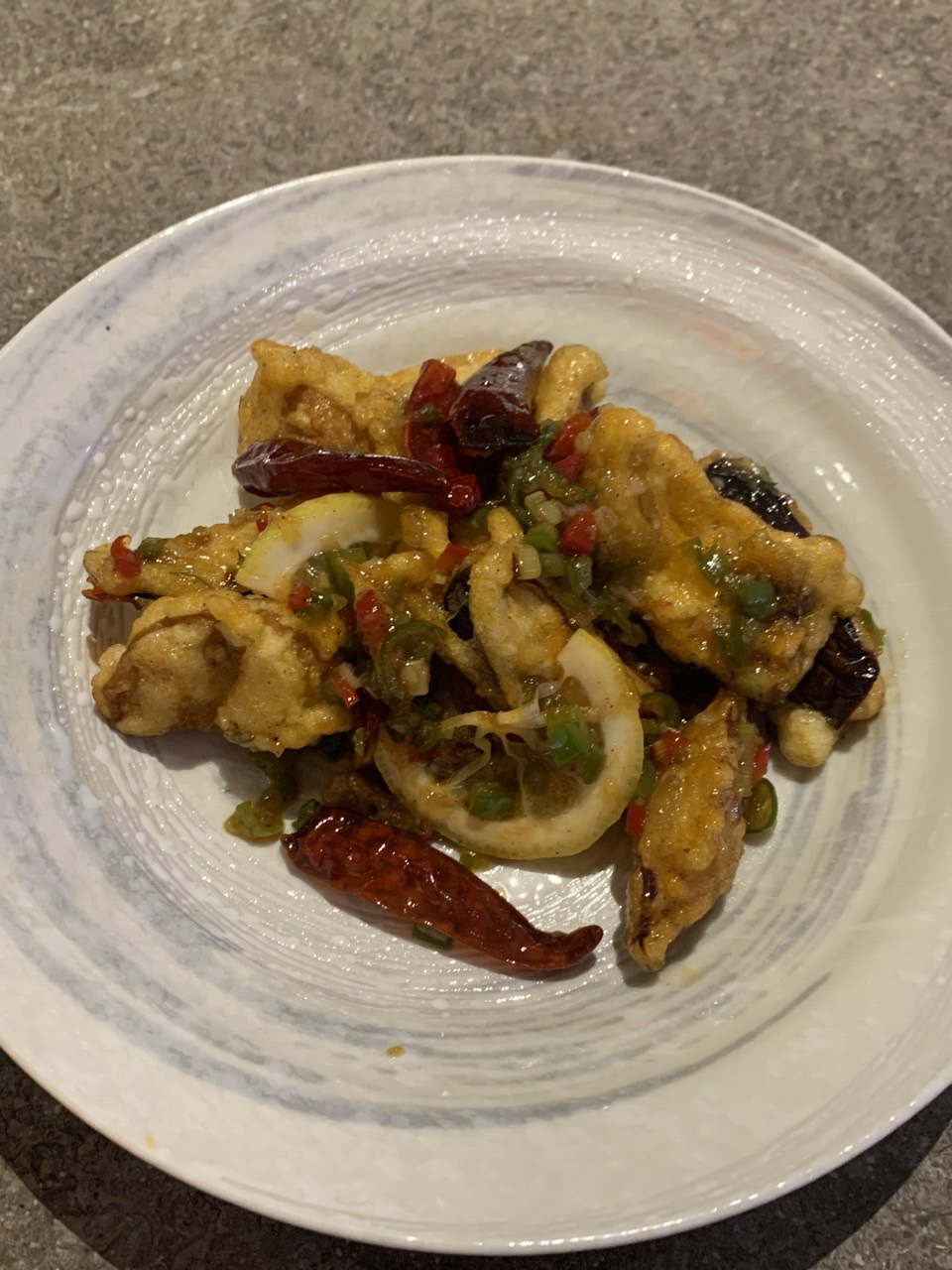 역도미를 튀겨서 마라소스에 볶은 요리. 마라향이 강하지 않고 소스 안에 야채가 듬뿍 들어가 있어서 좋았다.
