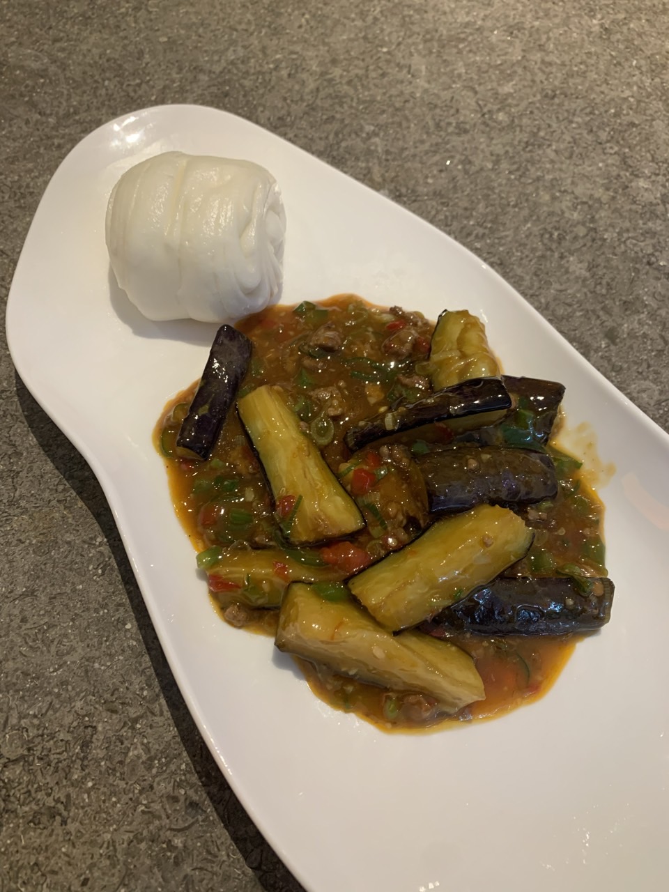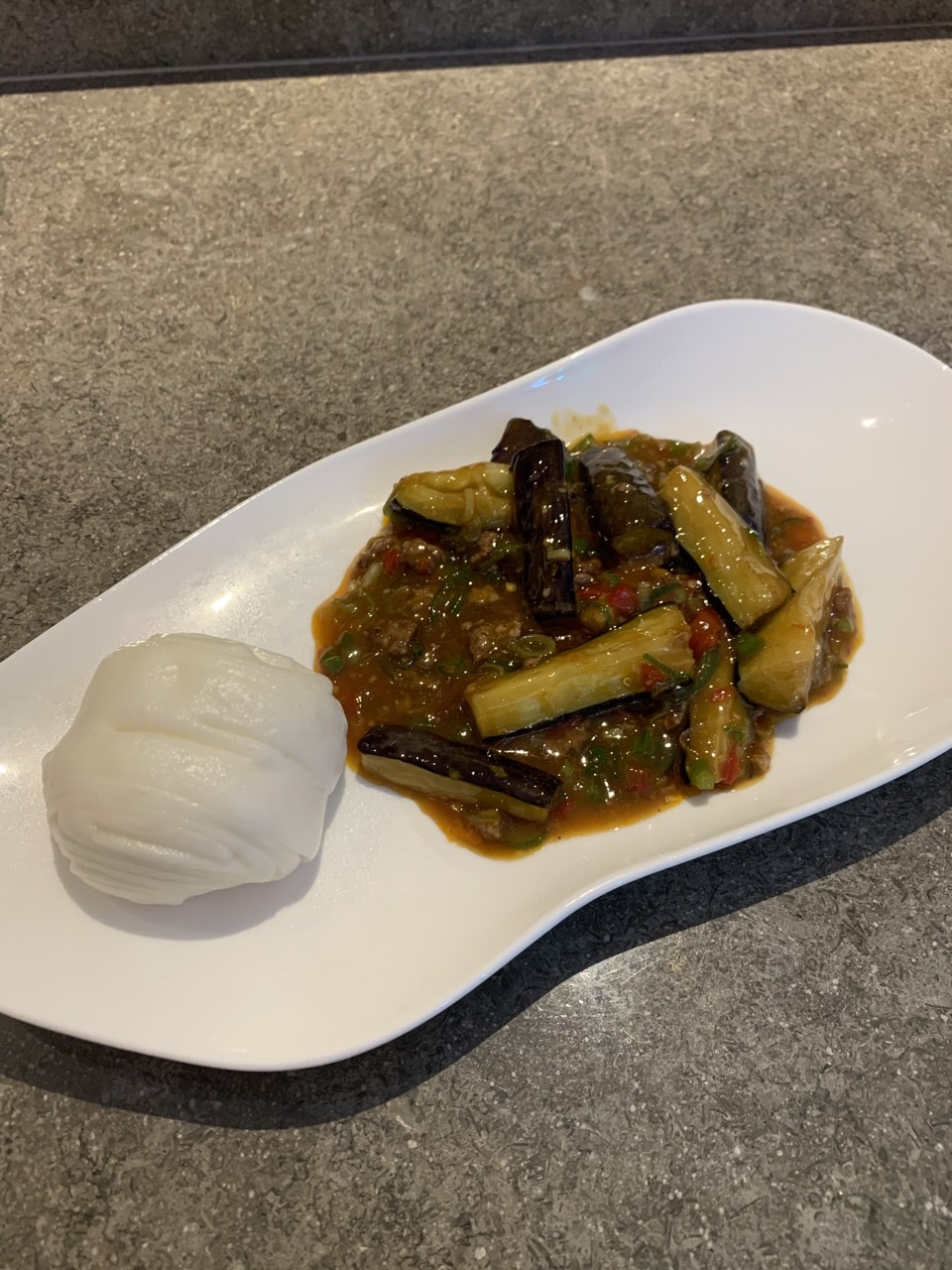꽃빵과 함께 나온 어향가지. 소고기로 볶은 소스라 소스 안에 소고기가 상당히 많다. 꽃빵과 함께 먹으면 되는데 고량주가 생각나는 음식이다. 부모님 모시고 왔는데 혼자 달릴 순 없어서 참았다.