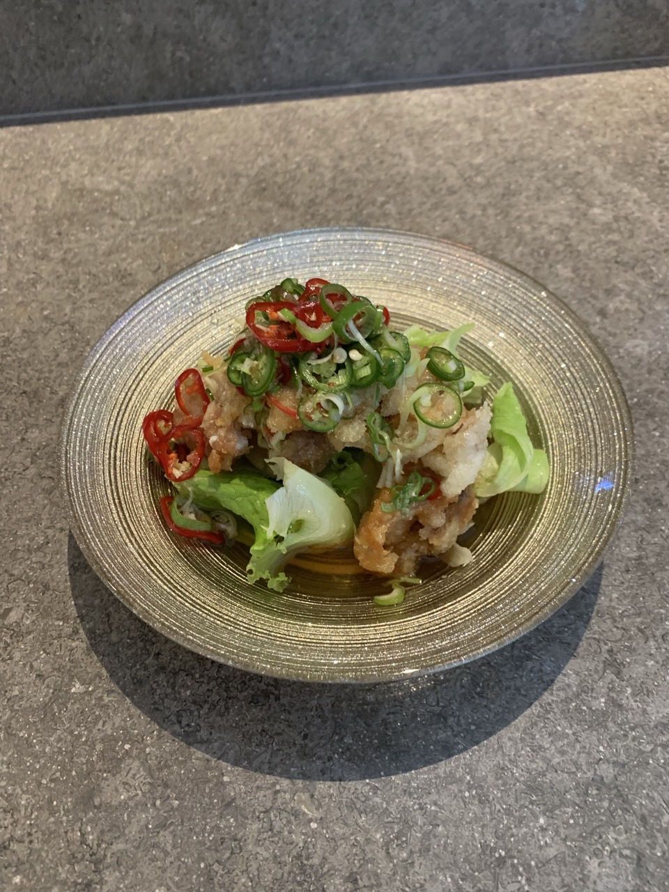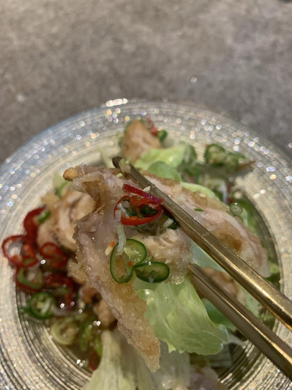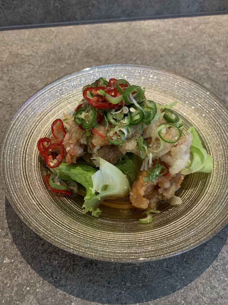 유린기 아래는 양상추가 있고, 위에는 고추로 덮여있다. 튀김 정도는 먹기 좋을 정도로 바삭했고, 고추와 함께 먹으니 느끼한 맛을 잡아주어 좋았다.