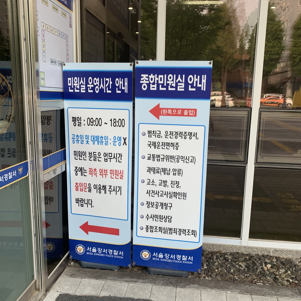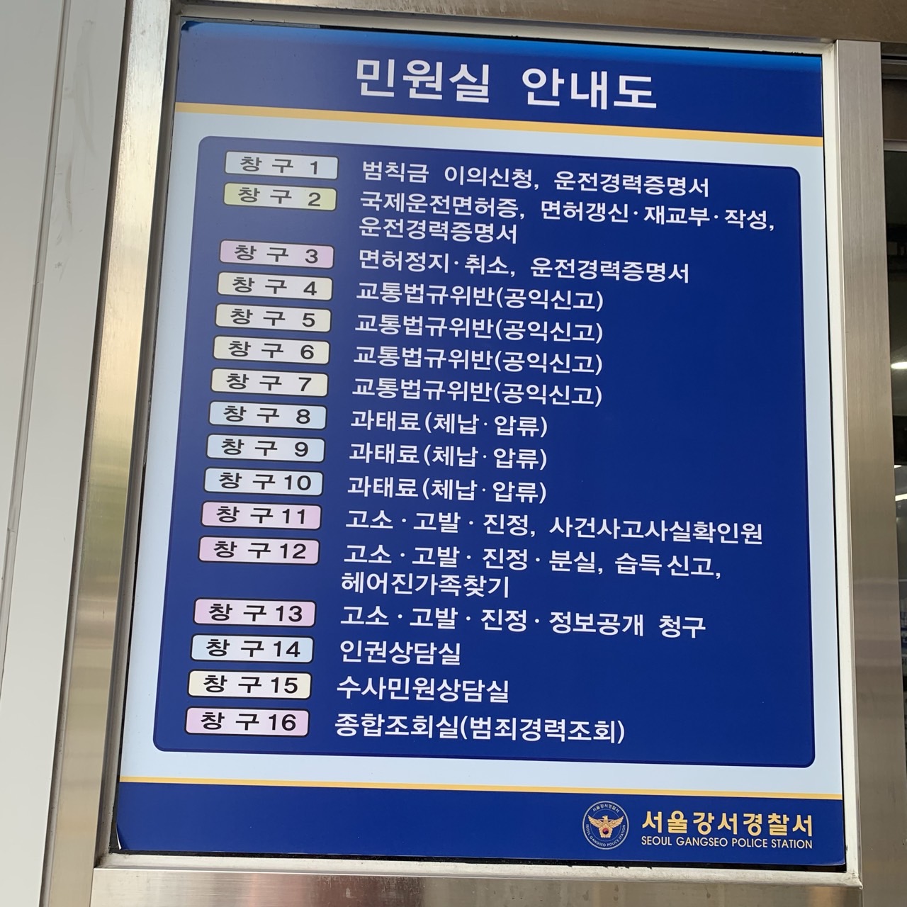 국제운전면허증을 발급받기 위해 근처에 있는 강서경찰서로 방문했다.