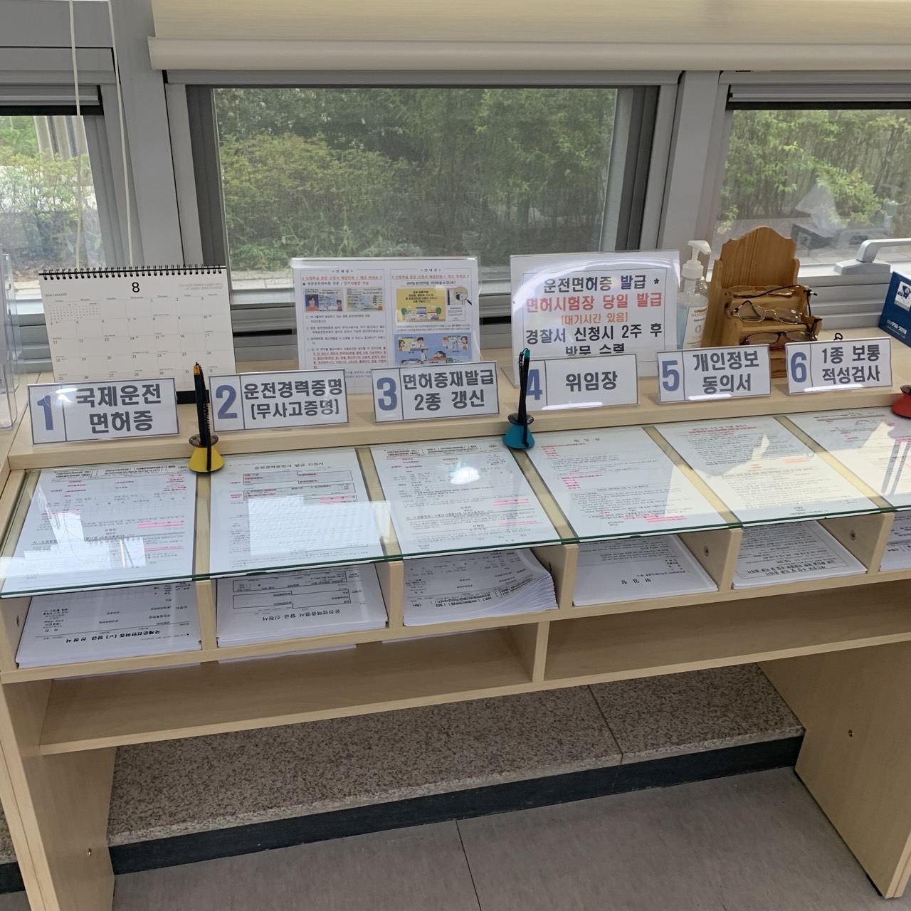 민원실 창구 번호에 따라 부서를 확인하고 국제운전면허증을 찾아가면 된다. 강서경찰서는 창구 2다. 해당되는 양식을 작성하고 해당 창구로 가서 신청하면 된다. 나는 양식을 작성해서 창구로 방문하였고 운전면허증과 여권 그리고 수수료를 결제하니 신청 과정은 끝났고 잠시 대기한다.