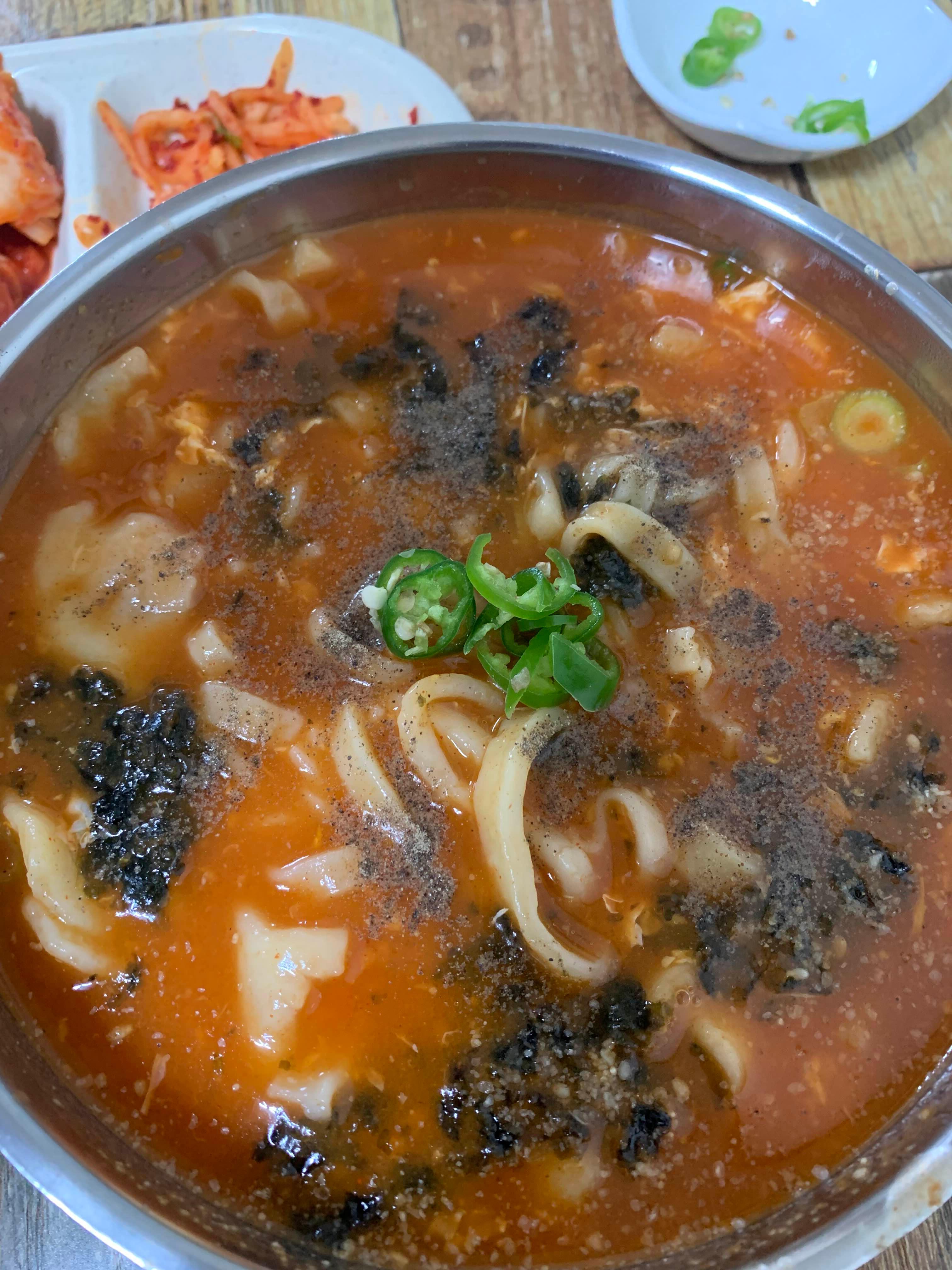 맛있게 먹으려면 후추와 청양고추를 넣으라고 해서 추가해 봤다. 그냥 맛있다.