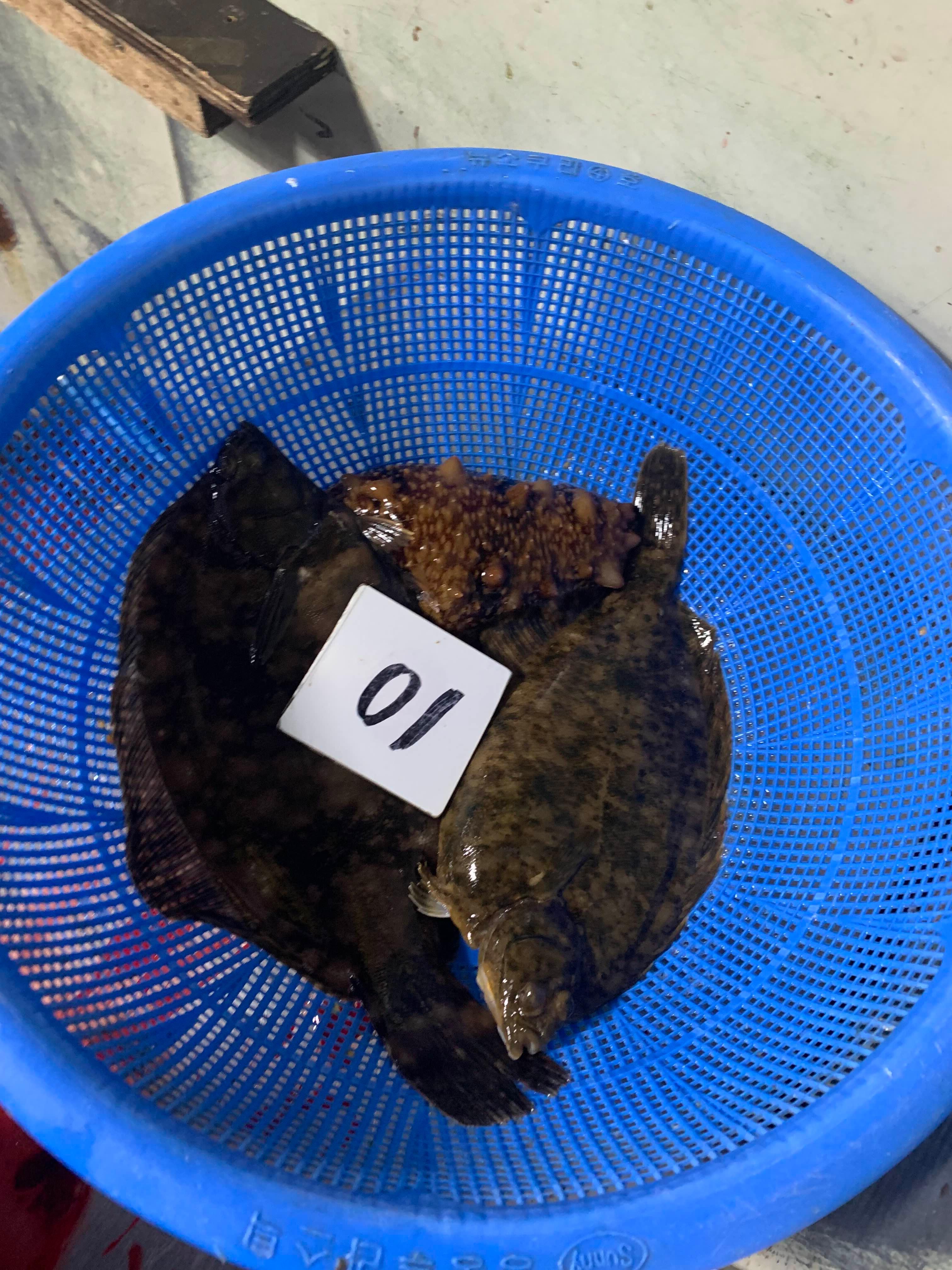 혼자 먹을 거라 알아서 챙겨달라는데 아무 물고기는 먹기 싫고, 결국 내가 골랐다. 점도다리 2마리, 해삼 1마리, 꽃새우 2마리 이렇게 해서 총 4만 원이다. 혼자서 챙겨 먹기에 쉽지 않은 조합인데 먹고 싶은 것만 골라서 아주 만족스러웠다. 이곳에서 결제하고, 손질값은 추가로 현금으로 내면 된다.