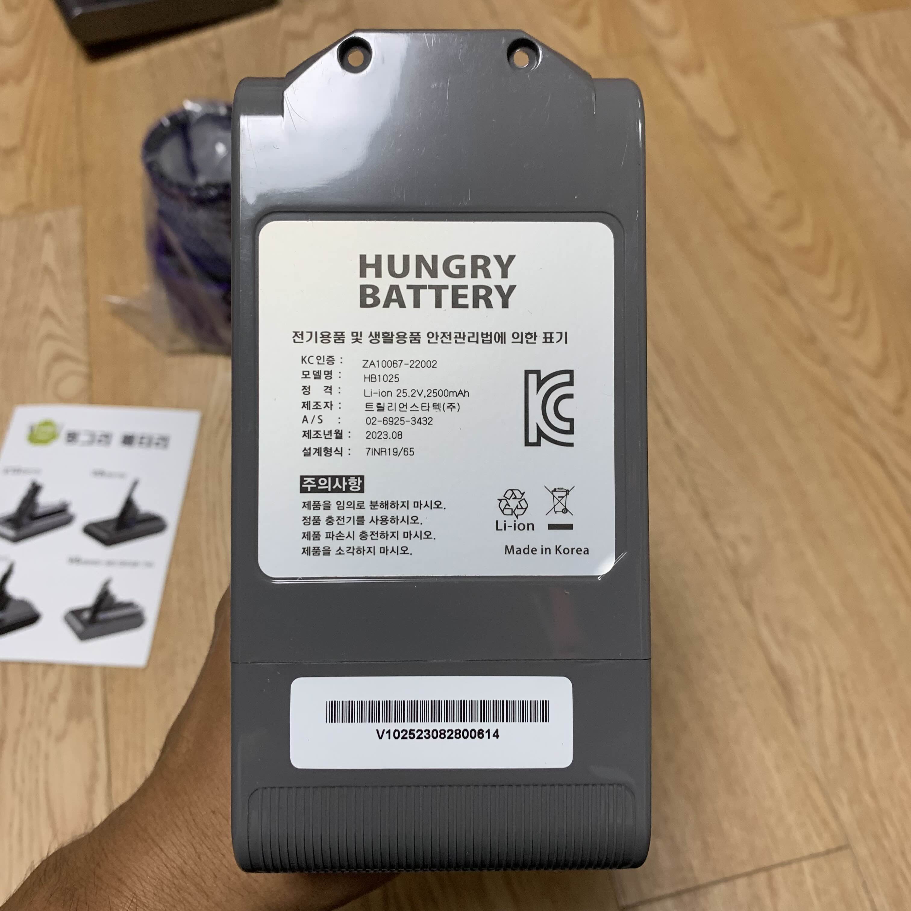 헝그리 배터리는 다이슨 시리즈에 맞게 배터리들이 구비되어 있다. 구성품은 배터리, 필터, 드라이버와 피스 3개.