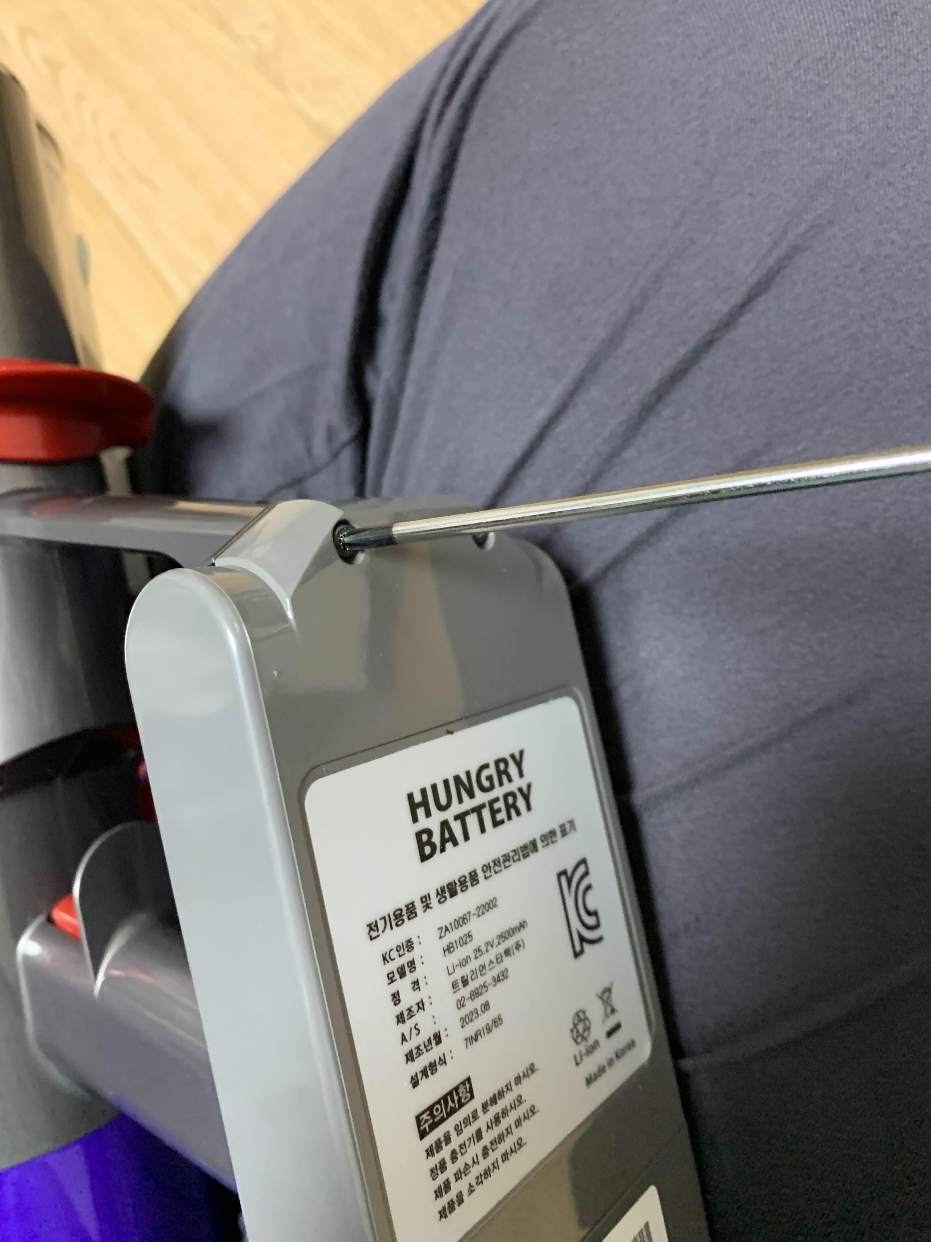 헝그리 배터리는 다이슨 시리즈에 맞게 배터리들이 구비되어 있다. 구성품은 배터리, 필터, 드라이버와 피스 3개.