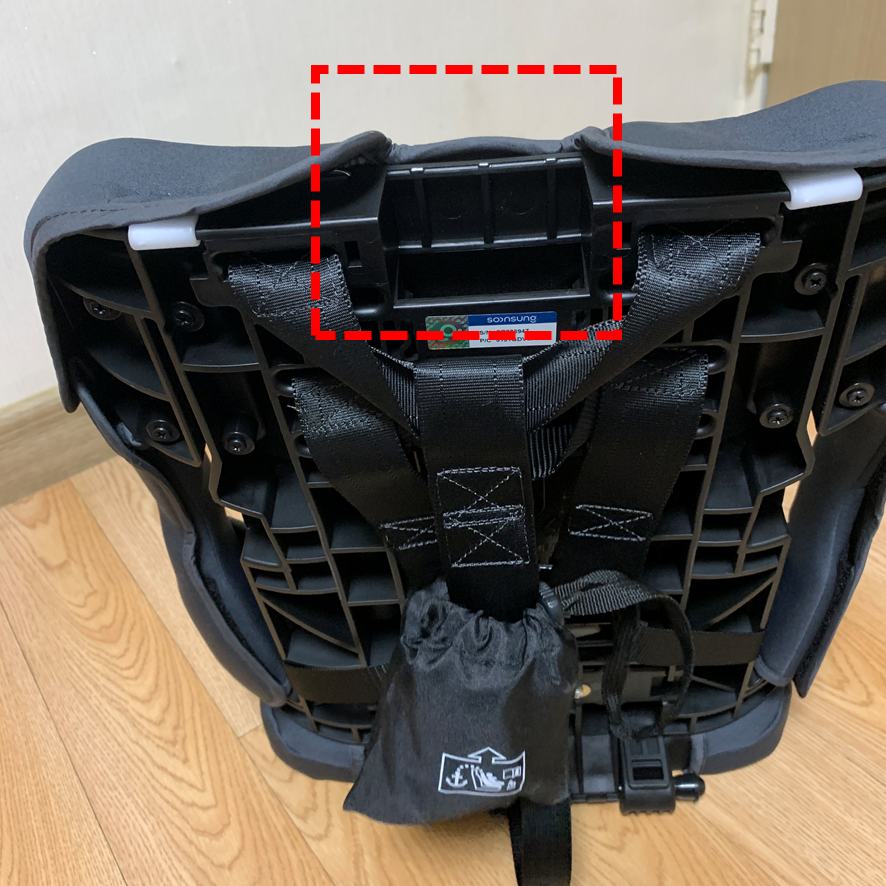 뒷면으로 돌려 표시된 빈 공간에 헤드레스트를 끼워주면 된다. 별도의 버튼 없이 손으로 꽉 눌러주고 '탁'소리가 나면 정상적으로 설치된 거다.