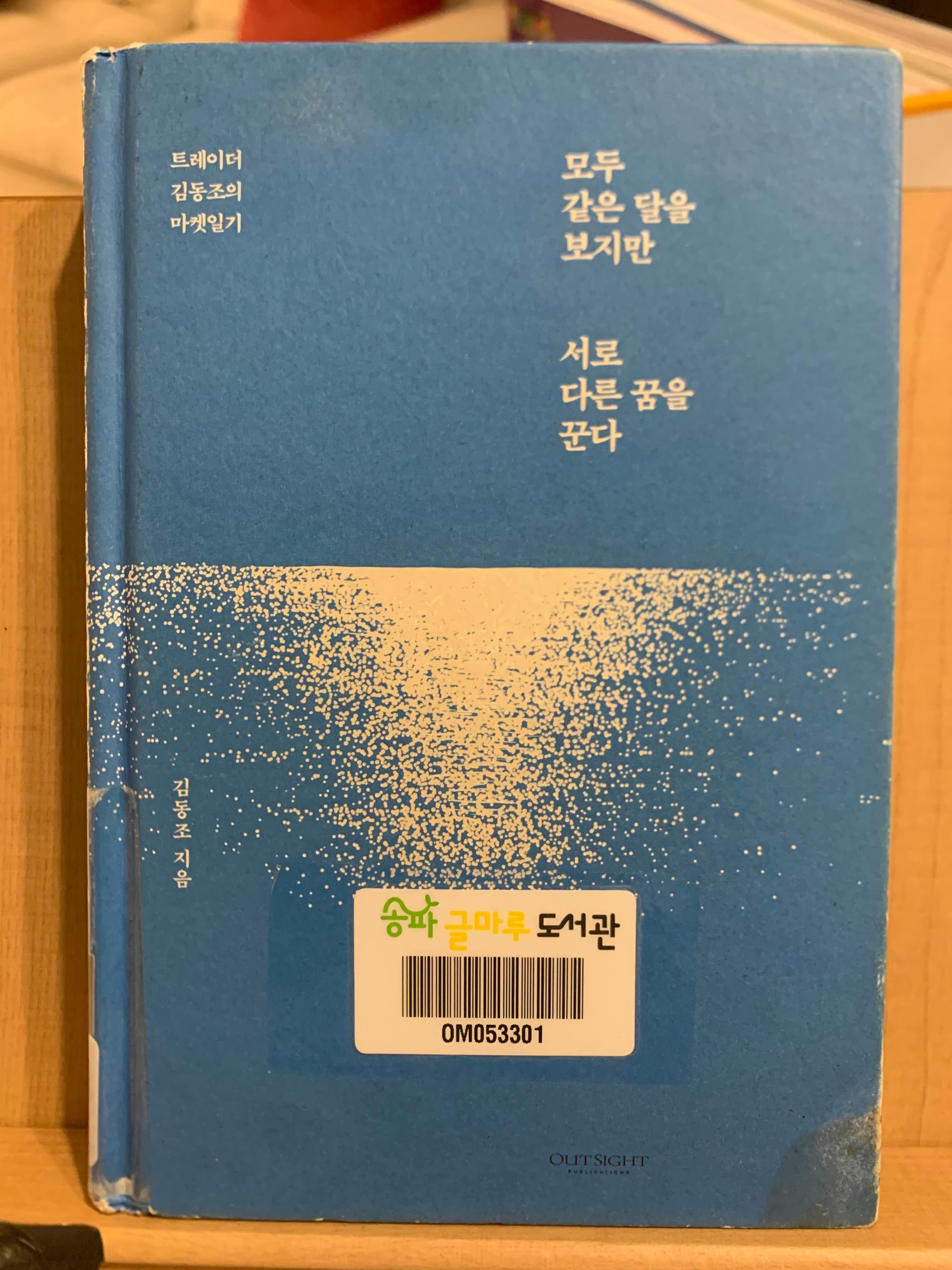 주말에 아이들과 도서관에 갔다가 구경하다 빌리게 된 책. 트레이더의 마켓일기라는데 다른 내용들도 짤막하게 있는 것 같아 읽게 되었다. 잠깐 곁눈질하며 봤던 느낌대로 실제 트레이더의 일기라기보다는 인생철학, 일상, 정치성향, 문화 서평 등 다양한 내용들이 담겨있는데 짧고 정리가 잘돼서 틈틈이 재미있게 읽었다. 자식과의 대화, 가치관들도 숨김없이 솔직하게 기록했는데, 사람들은 다 똑같다는 모습도 있지만, 읽고 배우고 싶은 모습들도 많기에 몇 가지를 배워가는 시간이라 좋았다. 김동조 작가를 검색해 보니 다른 책들도 있어서 다 읽어볼 계획이다.