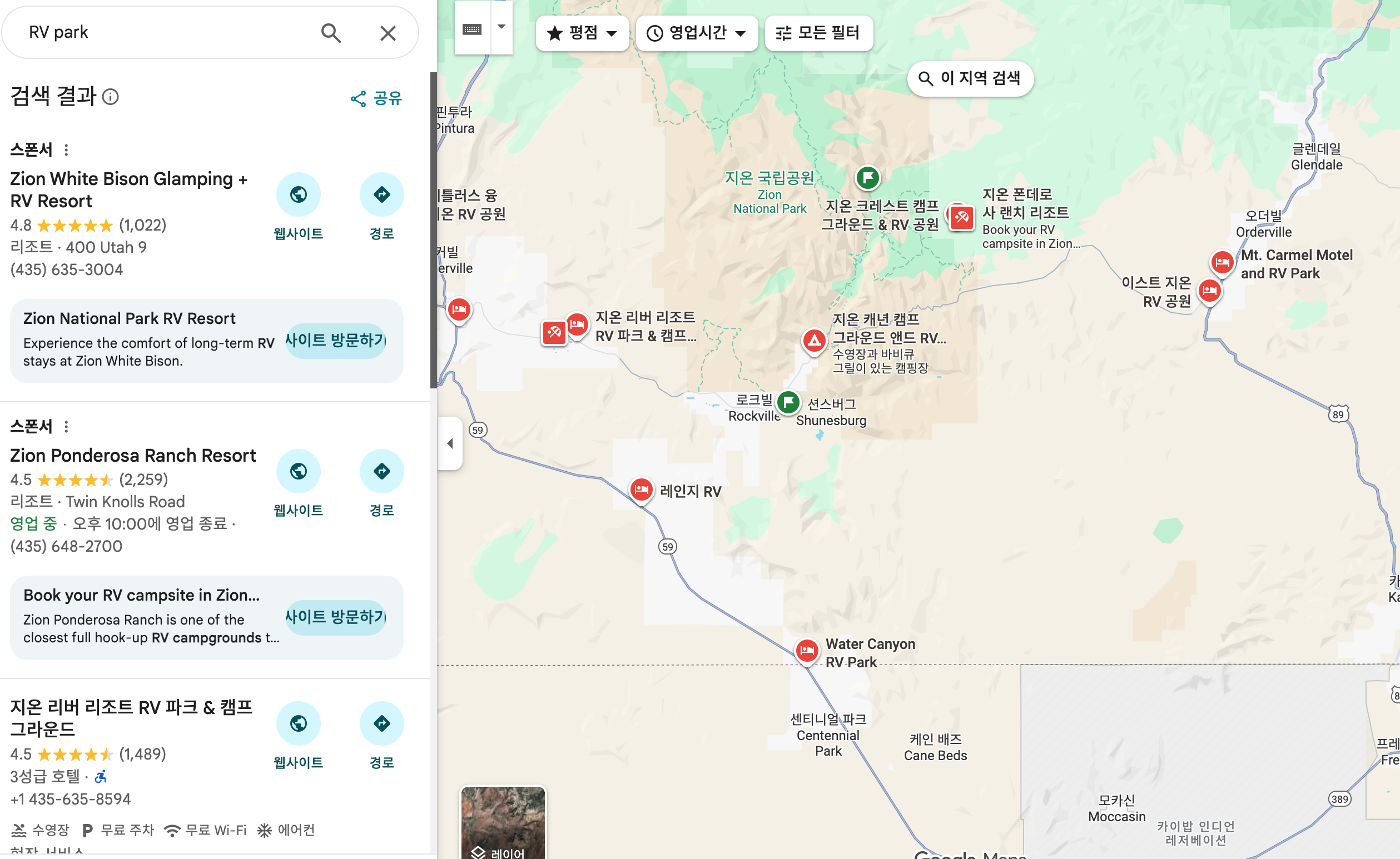구글맵에서 RV park 검색