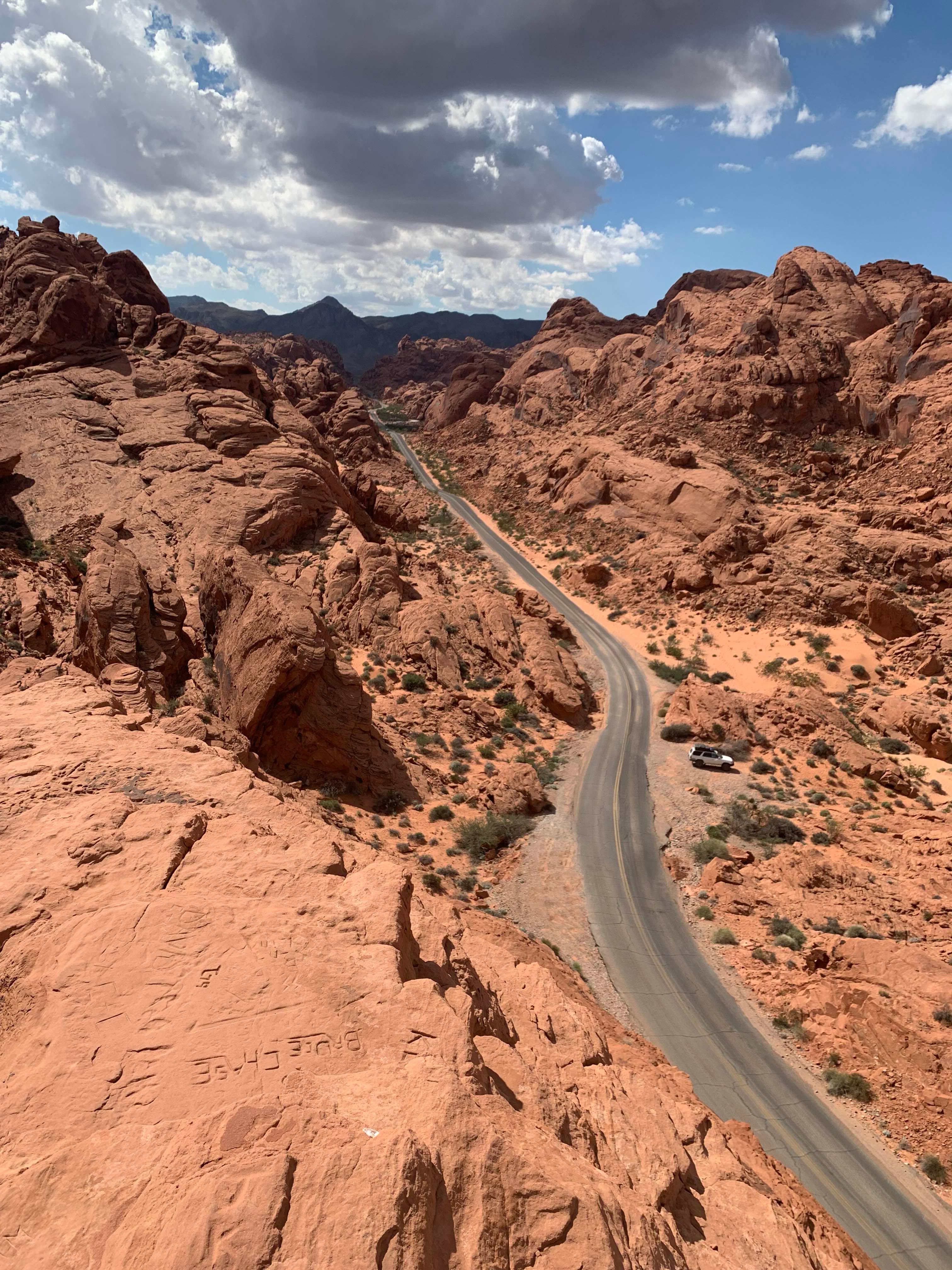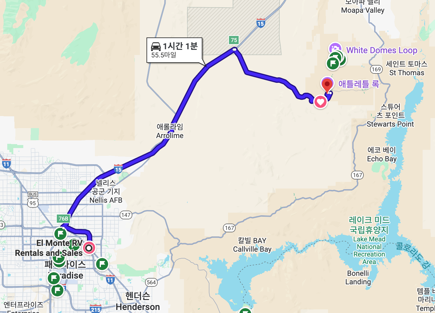 라스베이거스에서 로드베어 RV를 픽업해서 장보고 첫 목적지로 향한다. 오전에 캠핑카 픽업을 하고, 장 보면 시간이 많이 흘러갈 것 같아서 근교 갈만한 곳을 찾다가 밸리오브파이어 주립공원을 알게 되었다. 작지만 네바다에서 가장 오래된 주립공원. 붉은 배경으로 유명한 장소이다.