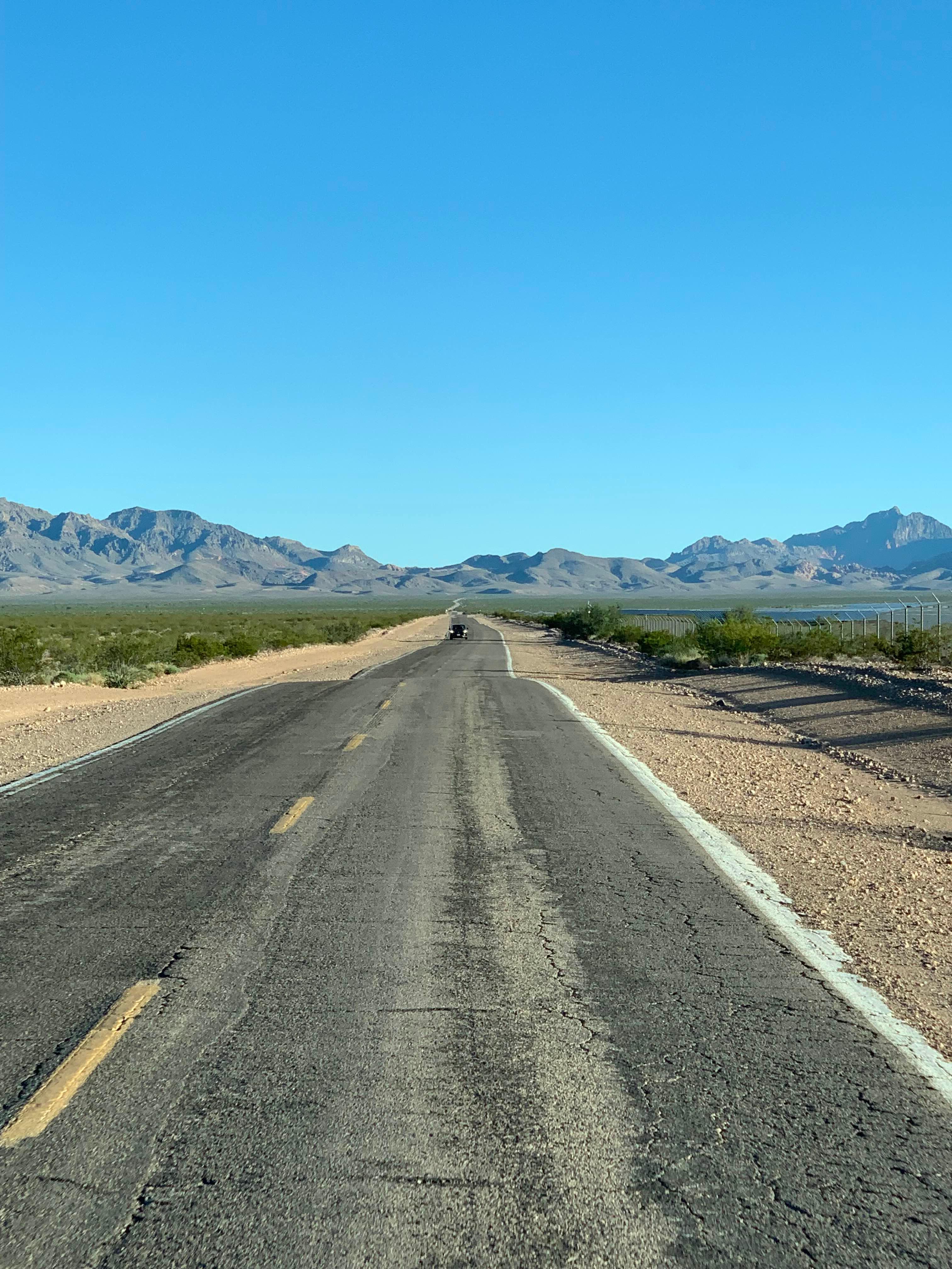 라스베이거스에서 포장도로를 달리다 보니 어느덧 점점 오래된 균열의 흔적이 보이는 울퉁불퉁 반포장 도로(?)로 들어왔다. 거의 다 왔다는 거다.