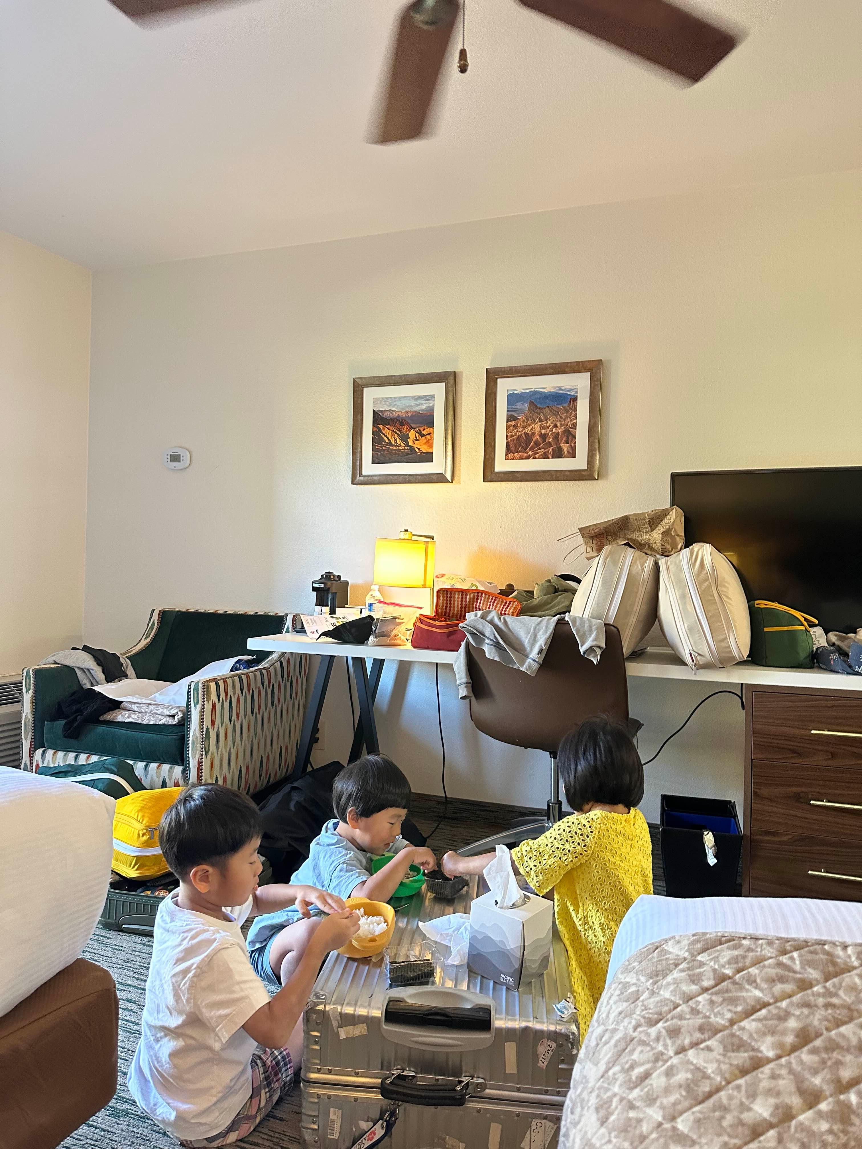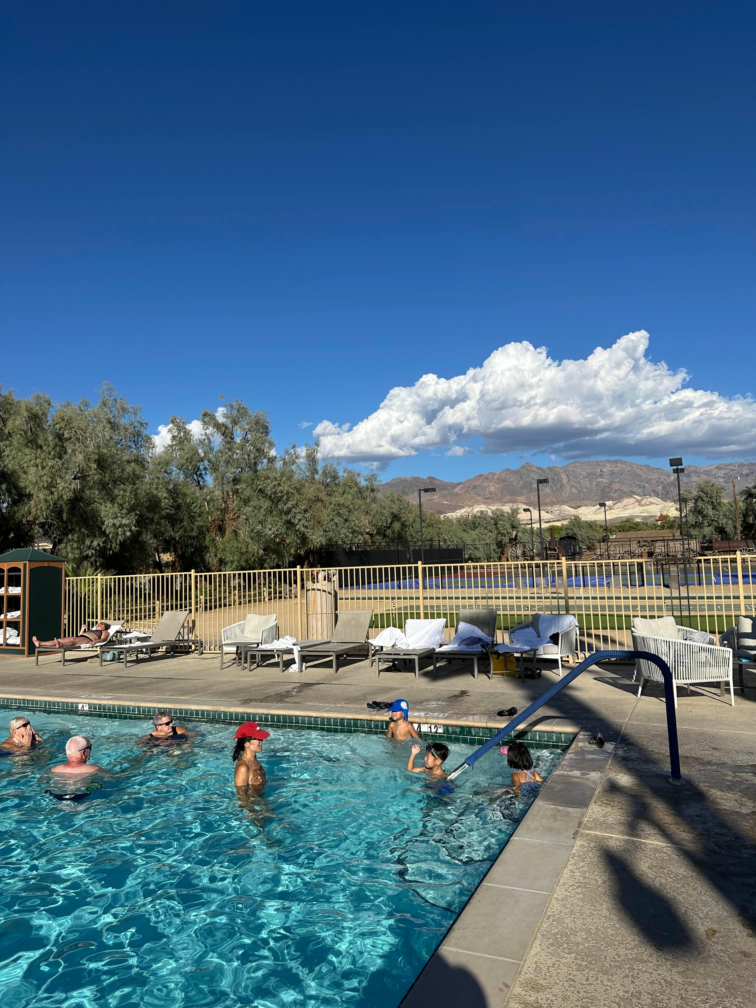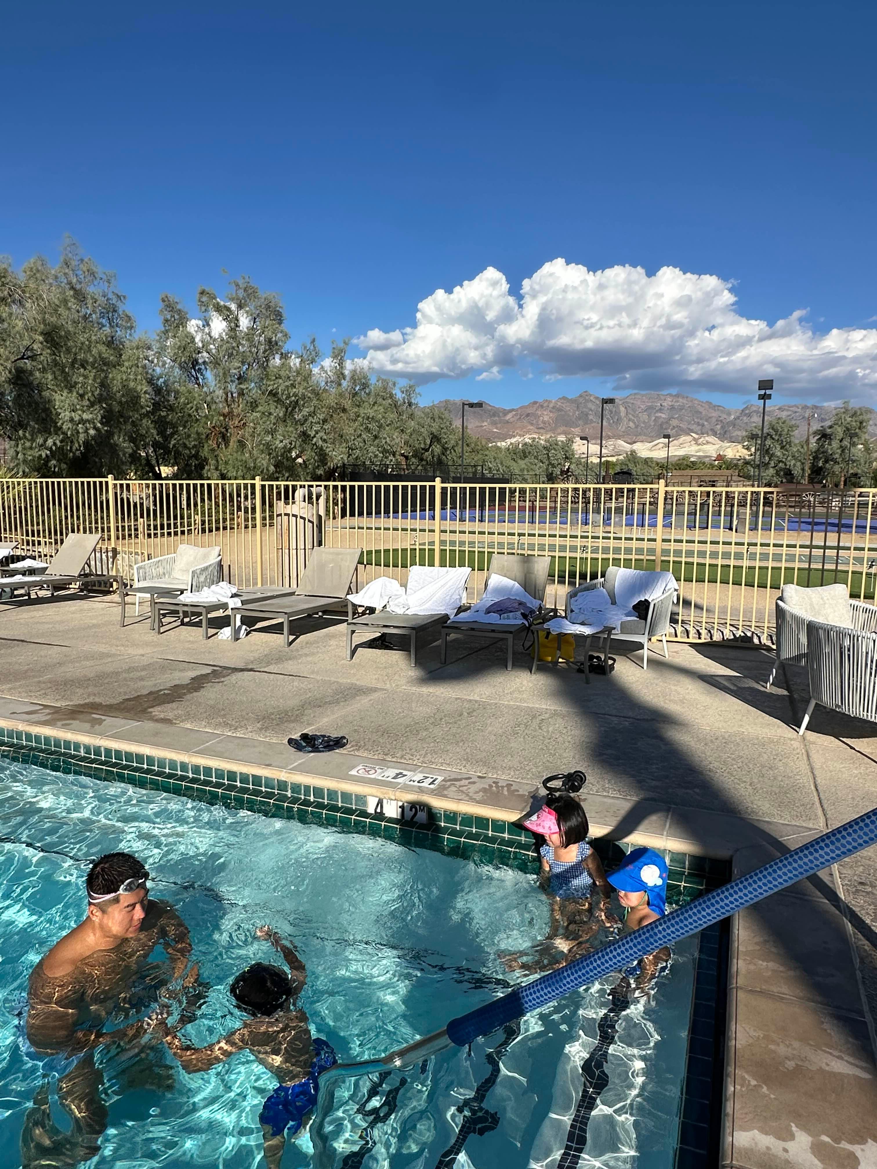 그리고 돌아와서 첫째랑 마지막 저녁수영! 물기가 묻어있으면 추웠는데 물속은 따뜻해서 나오기가 싫었다. 물속에서 별구경하며 데스밸리에서의 저녁을 마무리한다.