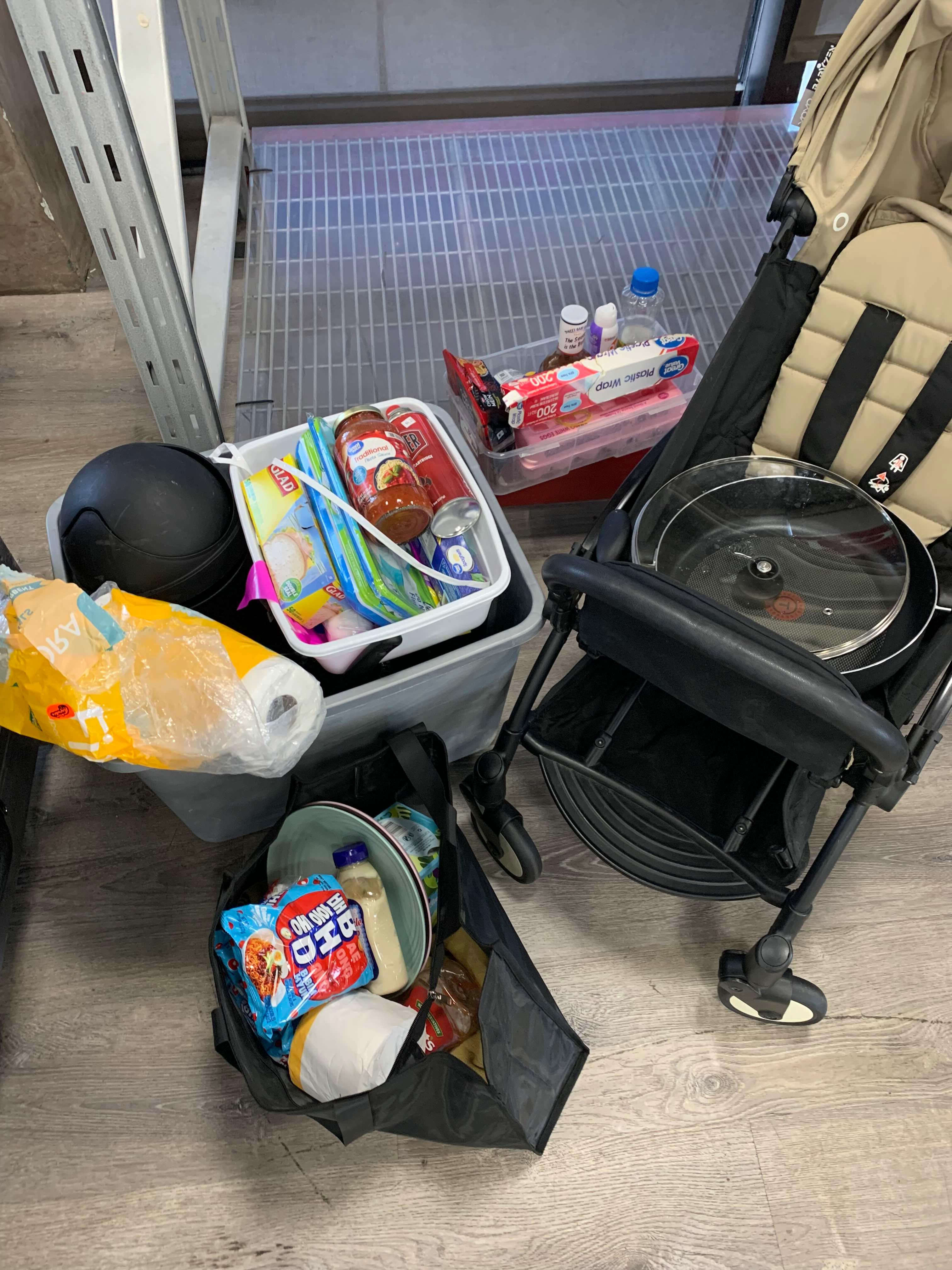 실내에는 사람들이 캠핑이 끝나고 기부하고 간 품목들이 있다. 그래서 필요한 품목들을 봤는데 생각보다 괜찮은 것들이 있어서 많이 챙겼다. 소스들부터 쓰레기통, 프라이팬 그리고 배홍동까지 있었다.