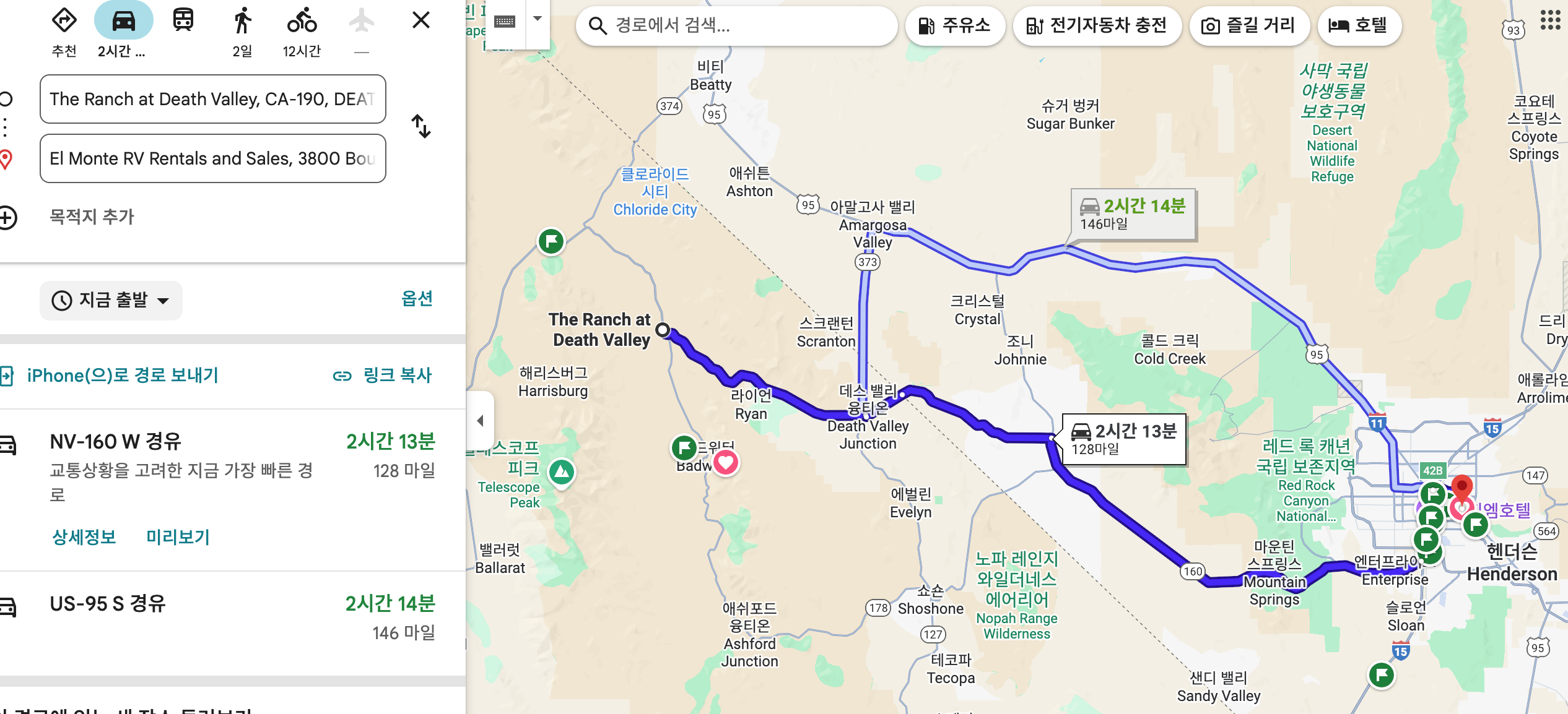 숙소에서 라스베가스 엘몬테 RV 지점까지는 2시간 조금 넘게 걸린다. 마지막 서버번을 타고 신나게 달려본다.