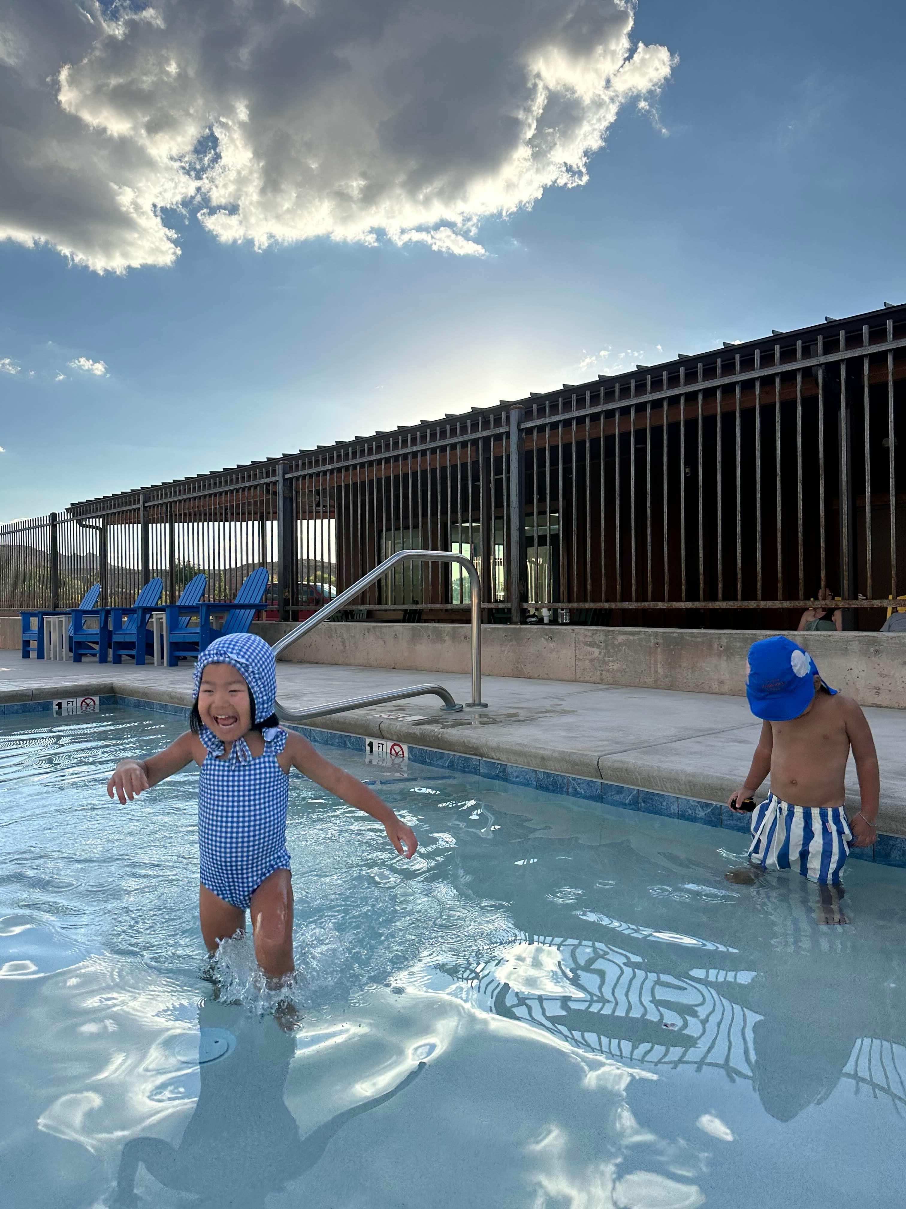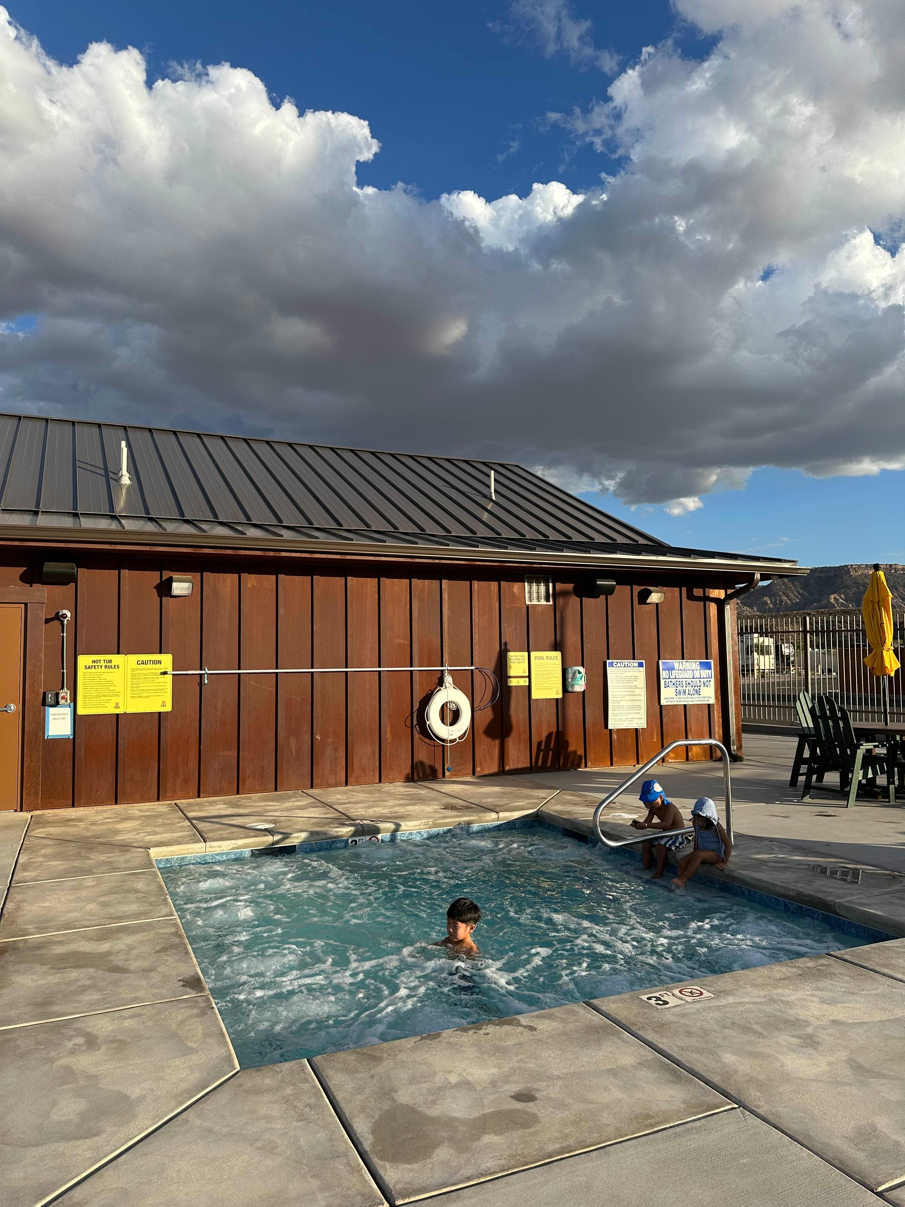 자쿠지와 수영장. 날씨는 선선하니 좋았지만, 수영하기에는 쌀쌀해서 대부분 자쿠지에서 시간을 보냈다.