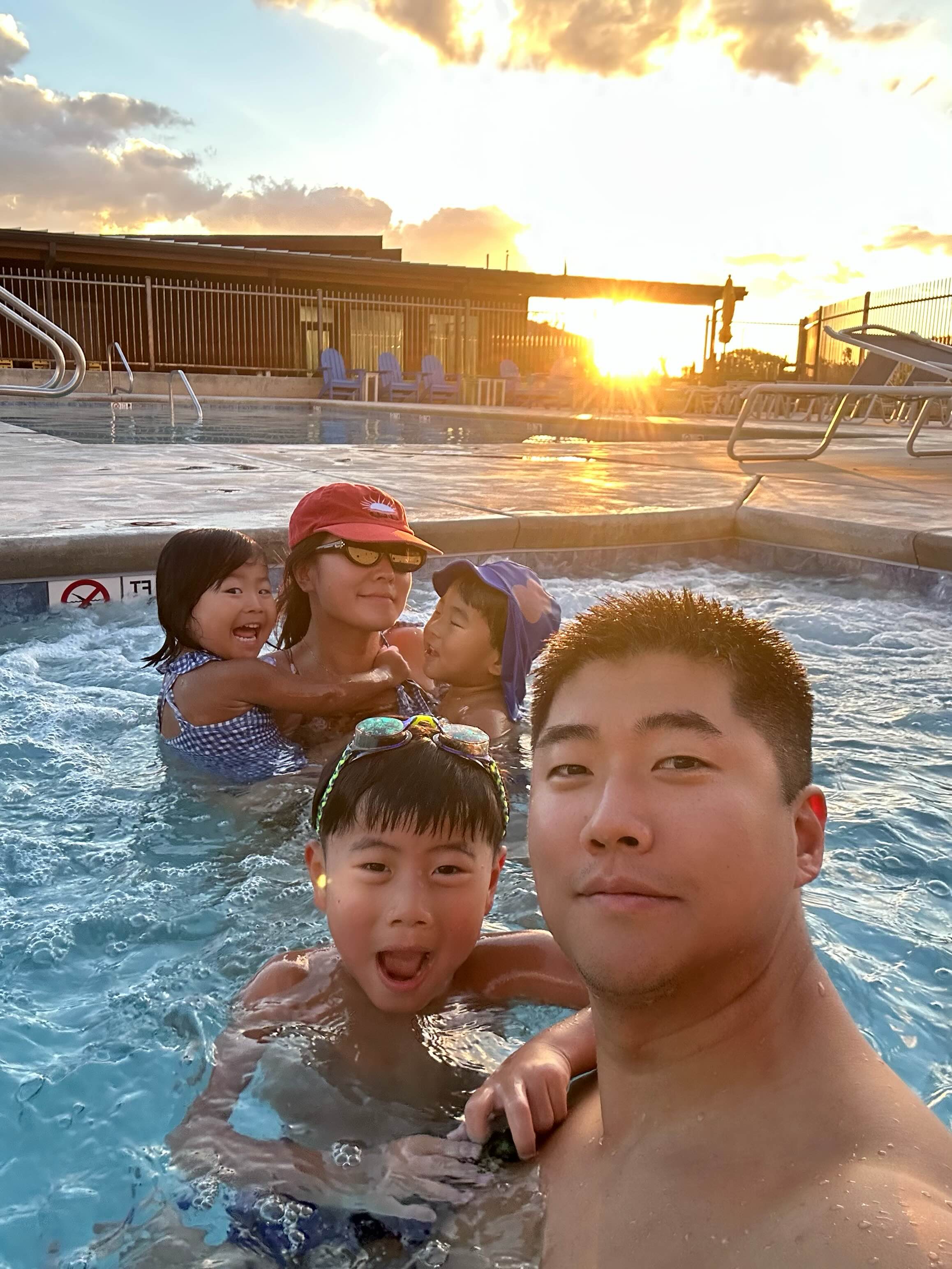자쿠지에서 노을을 바라보며 수영. 아름다운 순간이다.