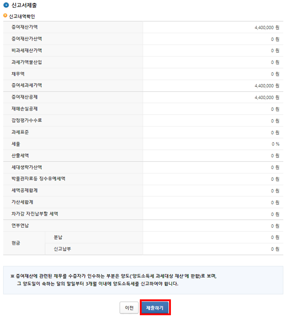 그럼 이렇게 증여세 신고서 접수증이 확인되고, 이상없으면 확인란에 체크 후 마무리하면 된다.