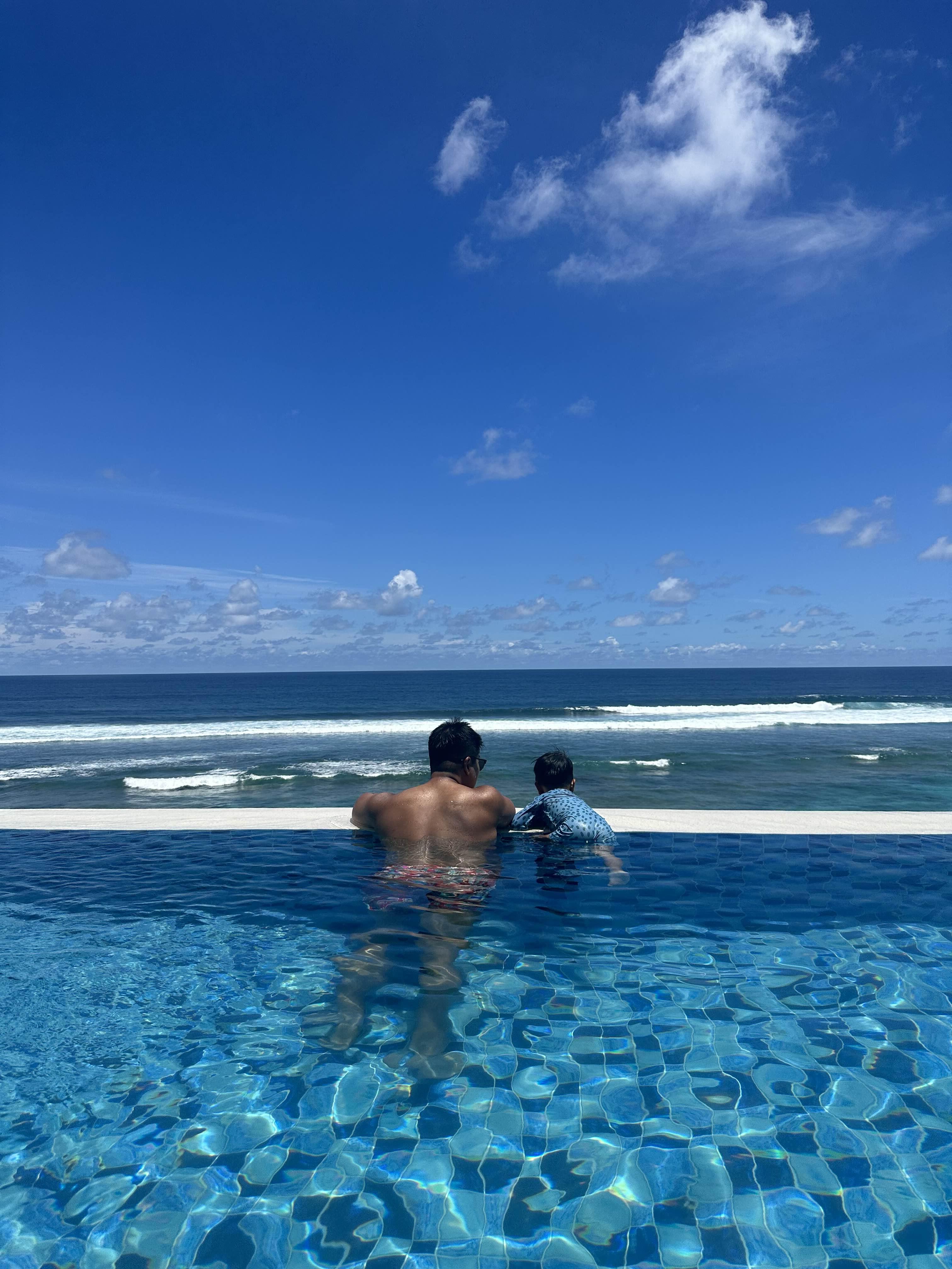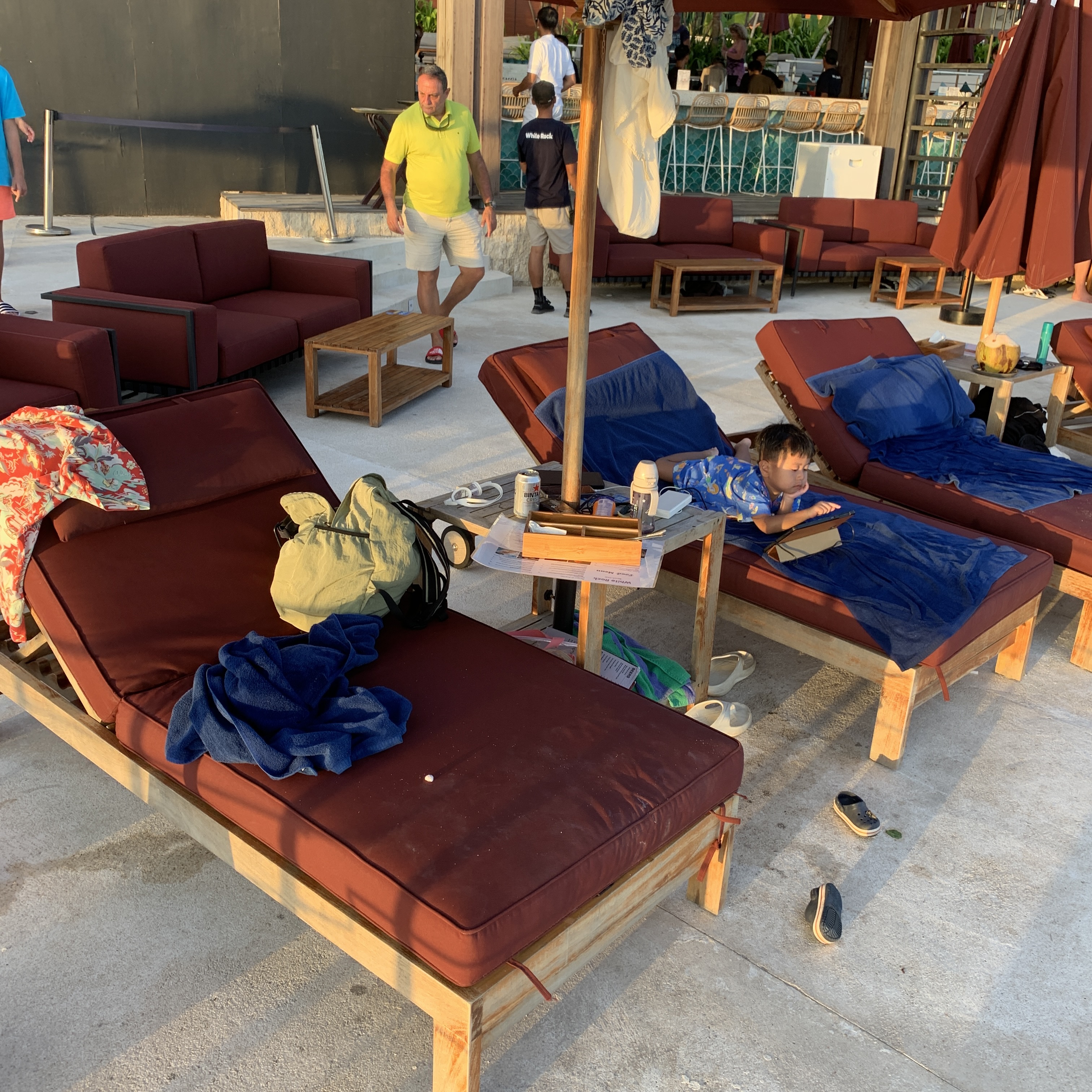 둘째날은 라군배드. 첫째날 담당 매니저한테 이야기해서 다음날도 올테니 라군배드 50% 할인된 가격으로 제공해달라고 하니 흔쾌히 알았다고한다. 그렇게 2,500,000루피아의 절반가격으로 라군배드에 머물렀다.신상비치클럽이고 아직 사람들이 많이 붐비지 않아서인지 그렇게 해주었나 싶다. 메인풀 바로 앞이라 물에 왔다갔다하기 정말 좋다.