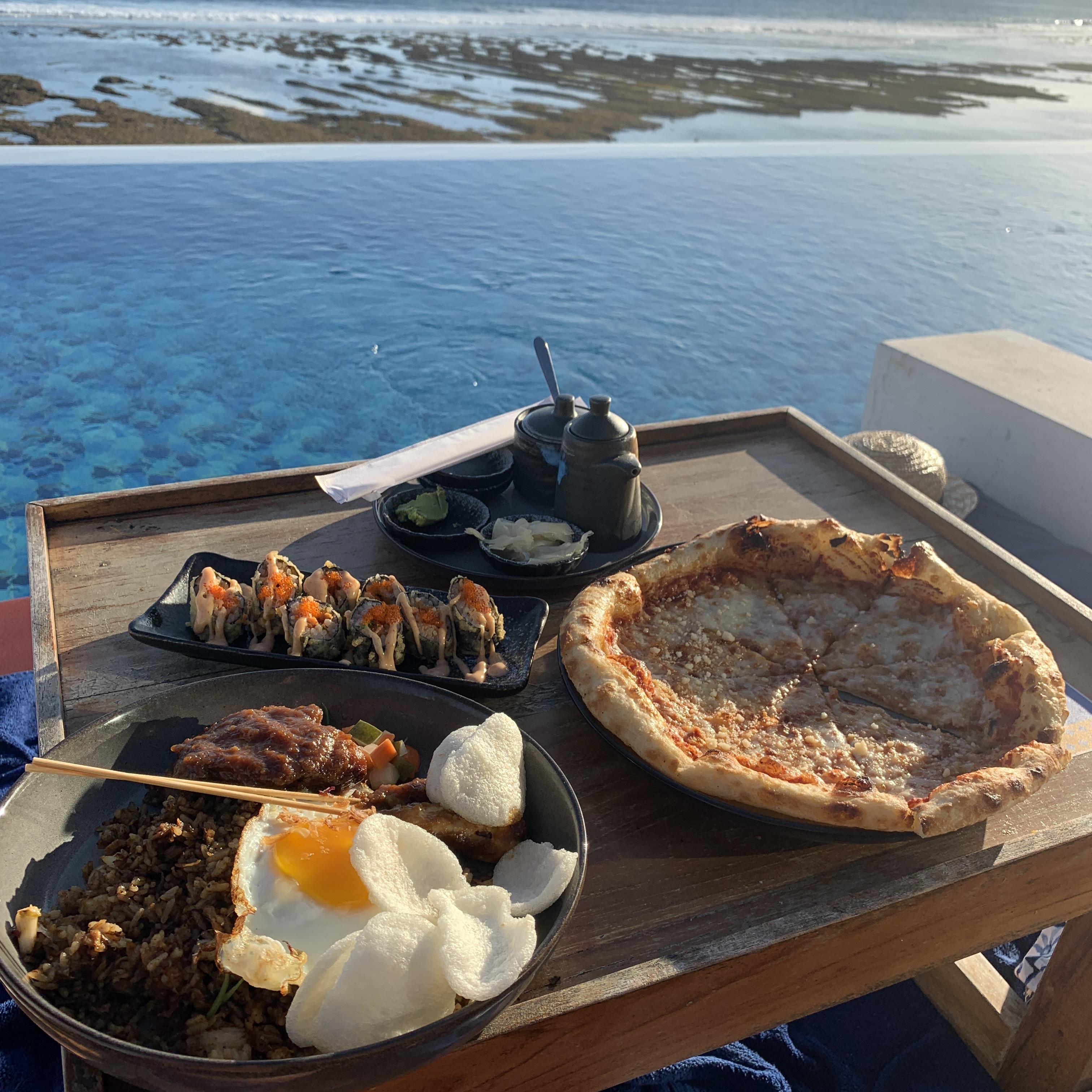 메뉴판은 QR코드로 보면된다. 발리 어딜가든 비치클럽 음식은 실패없이 정말 맛있다.