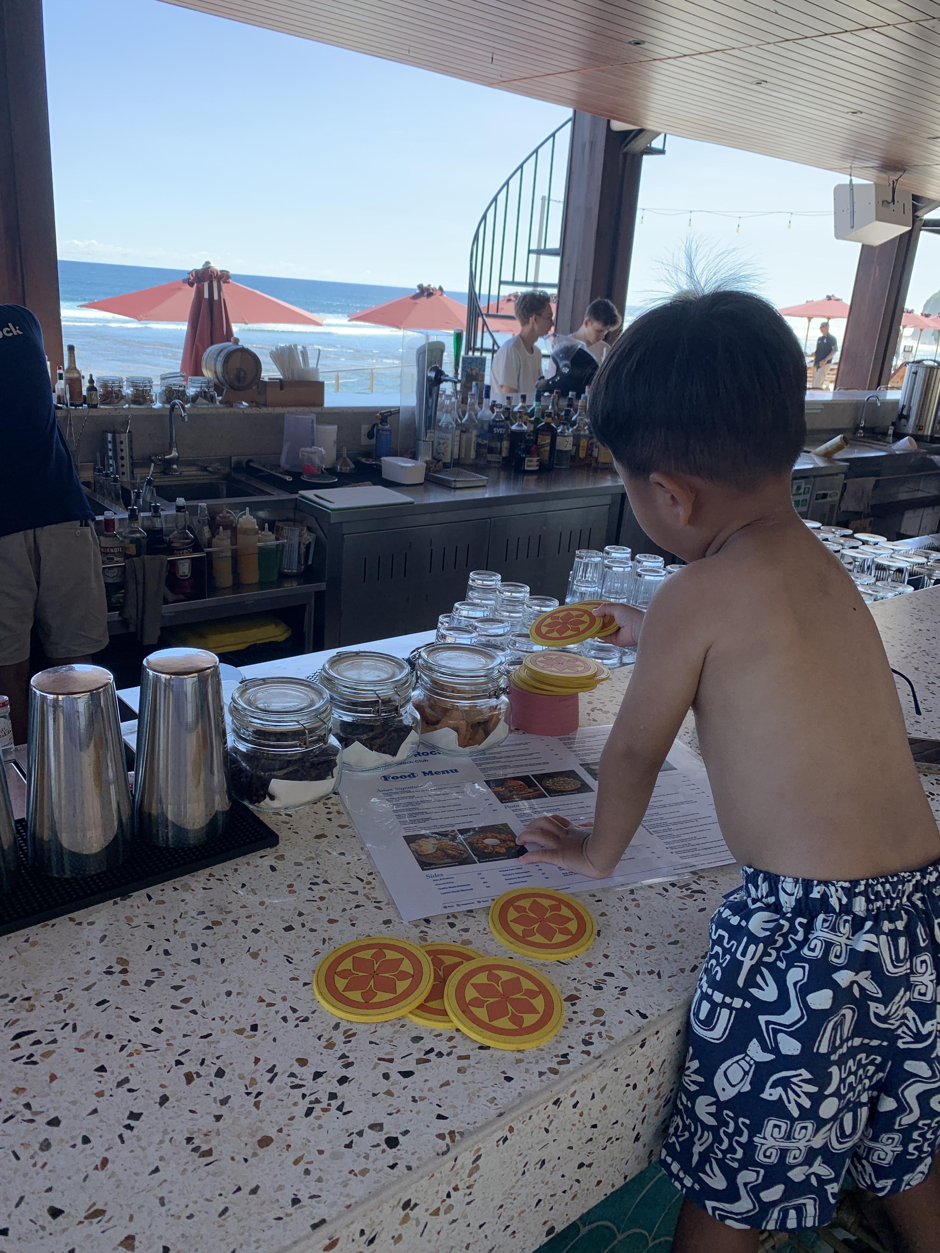 바에서 아이들과 편하게 놀 수 있는 아름다운 비치클럽이다