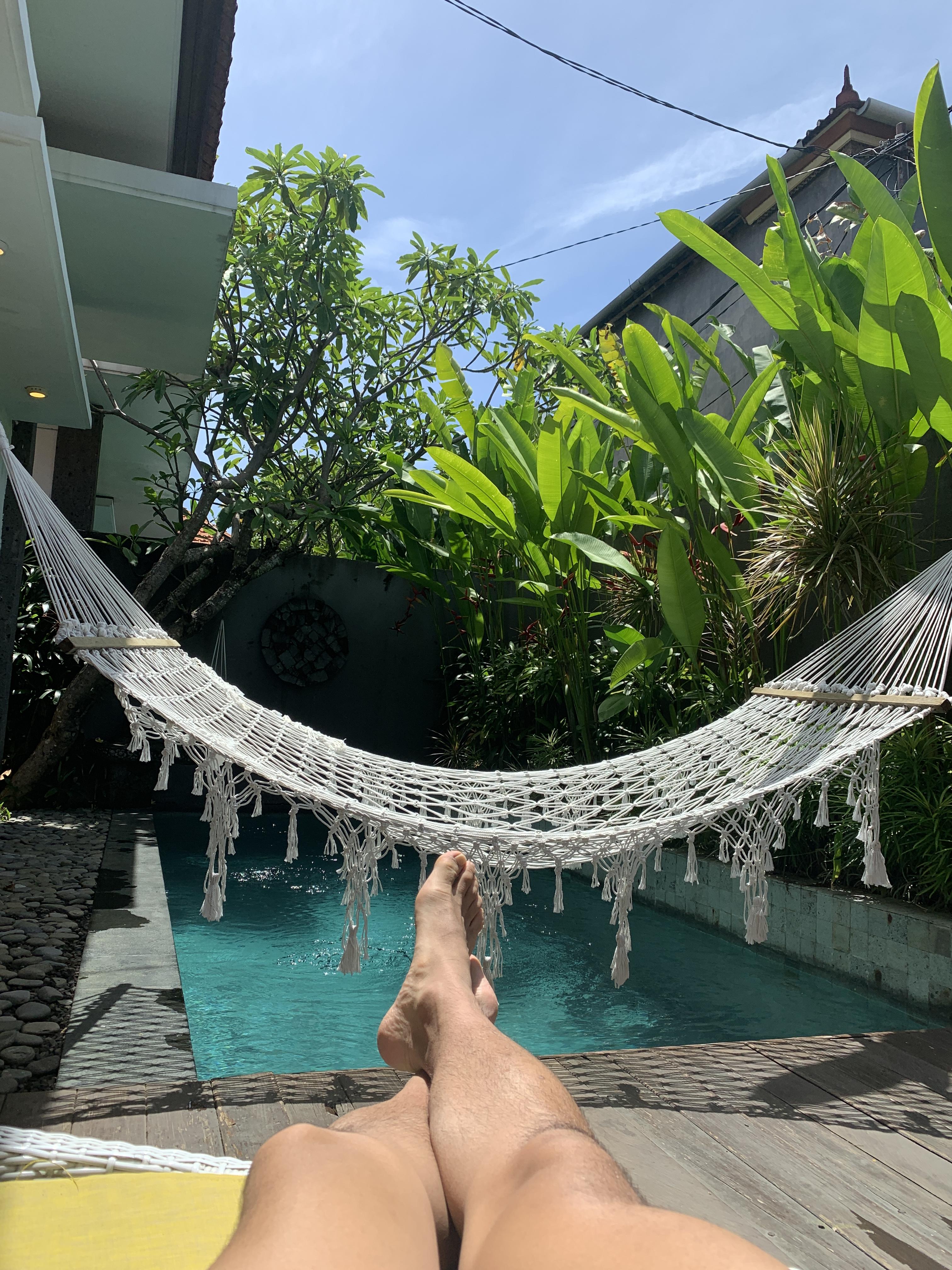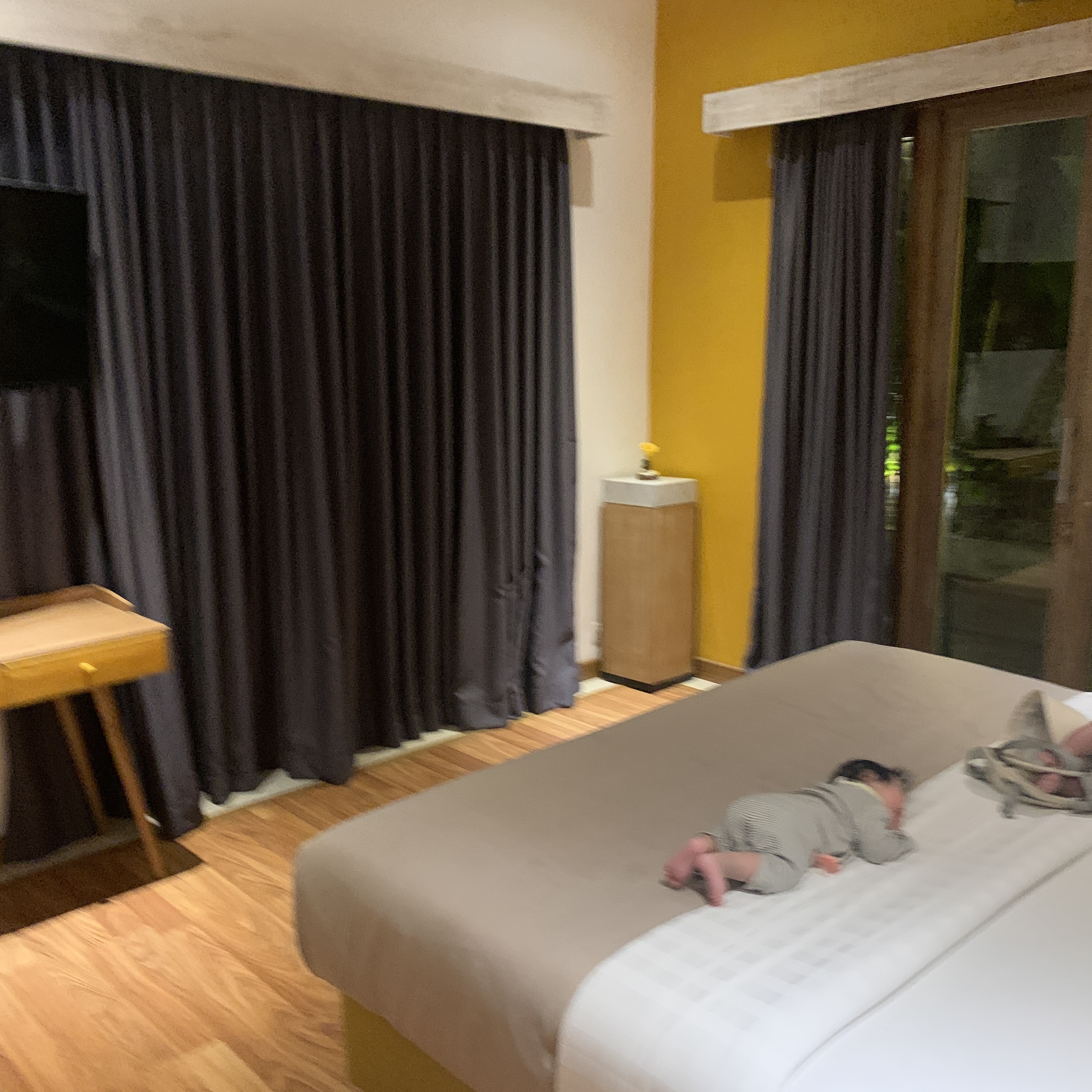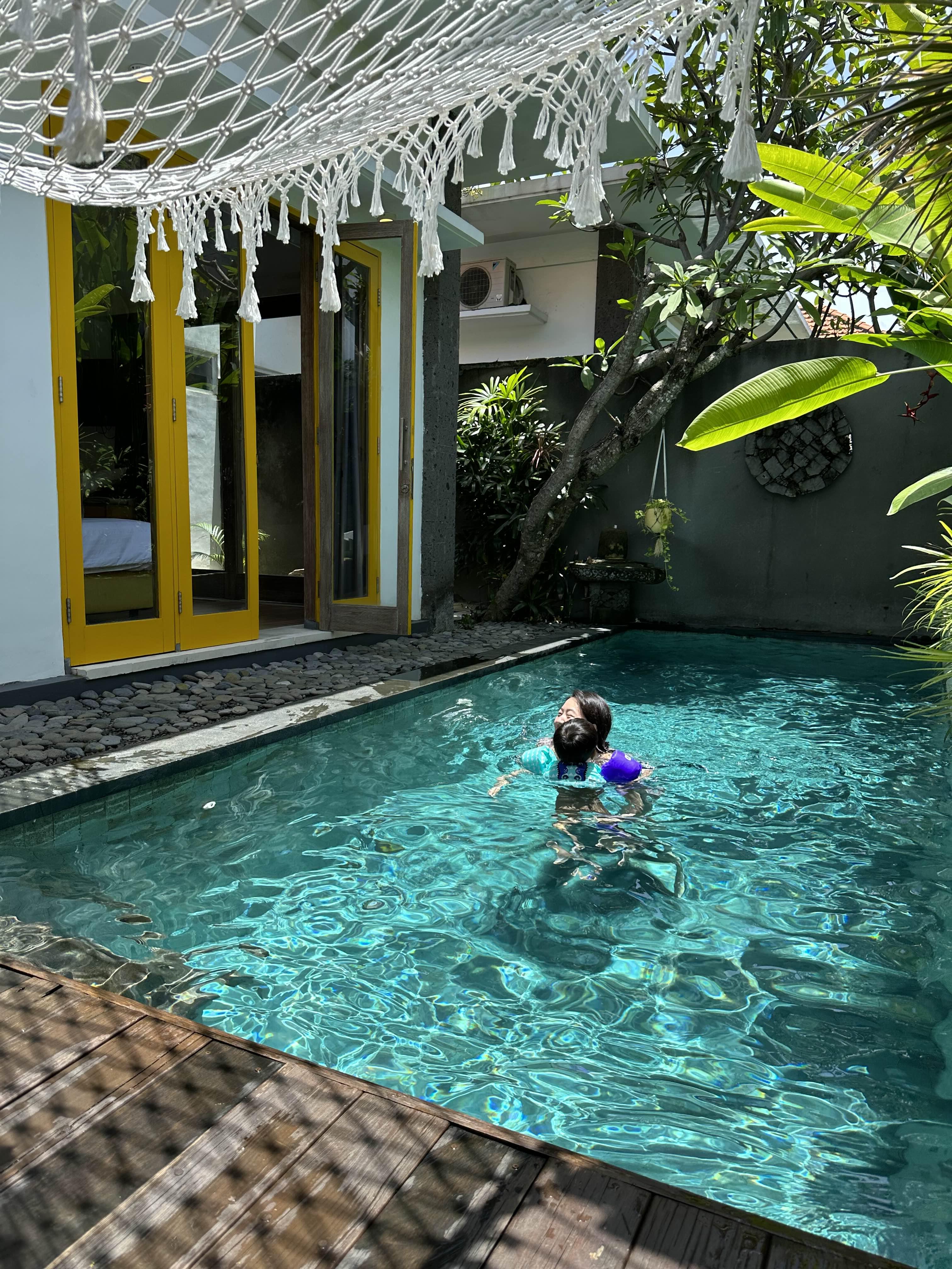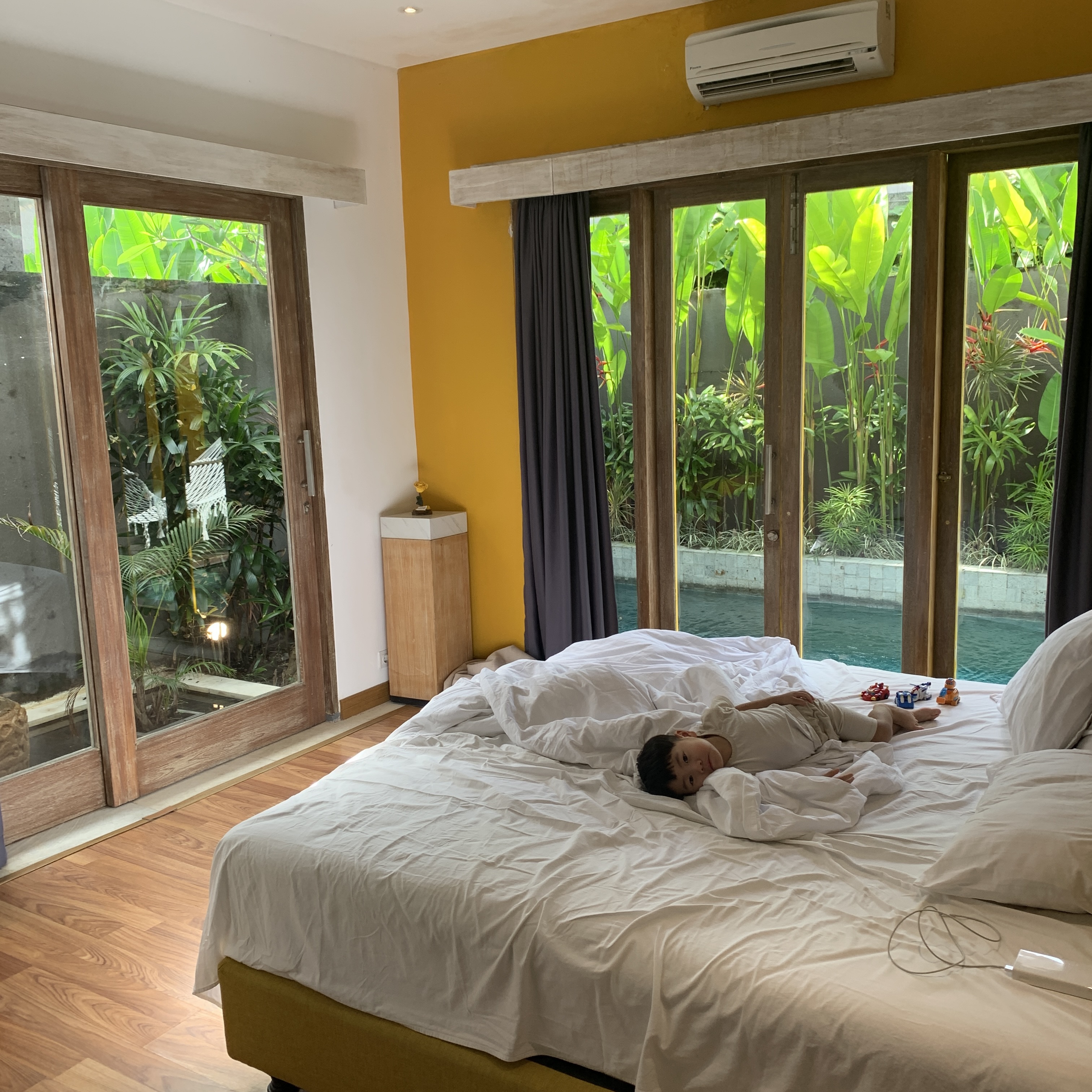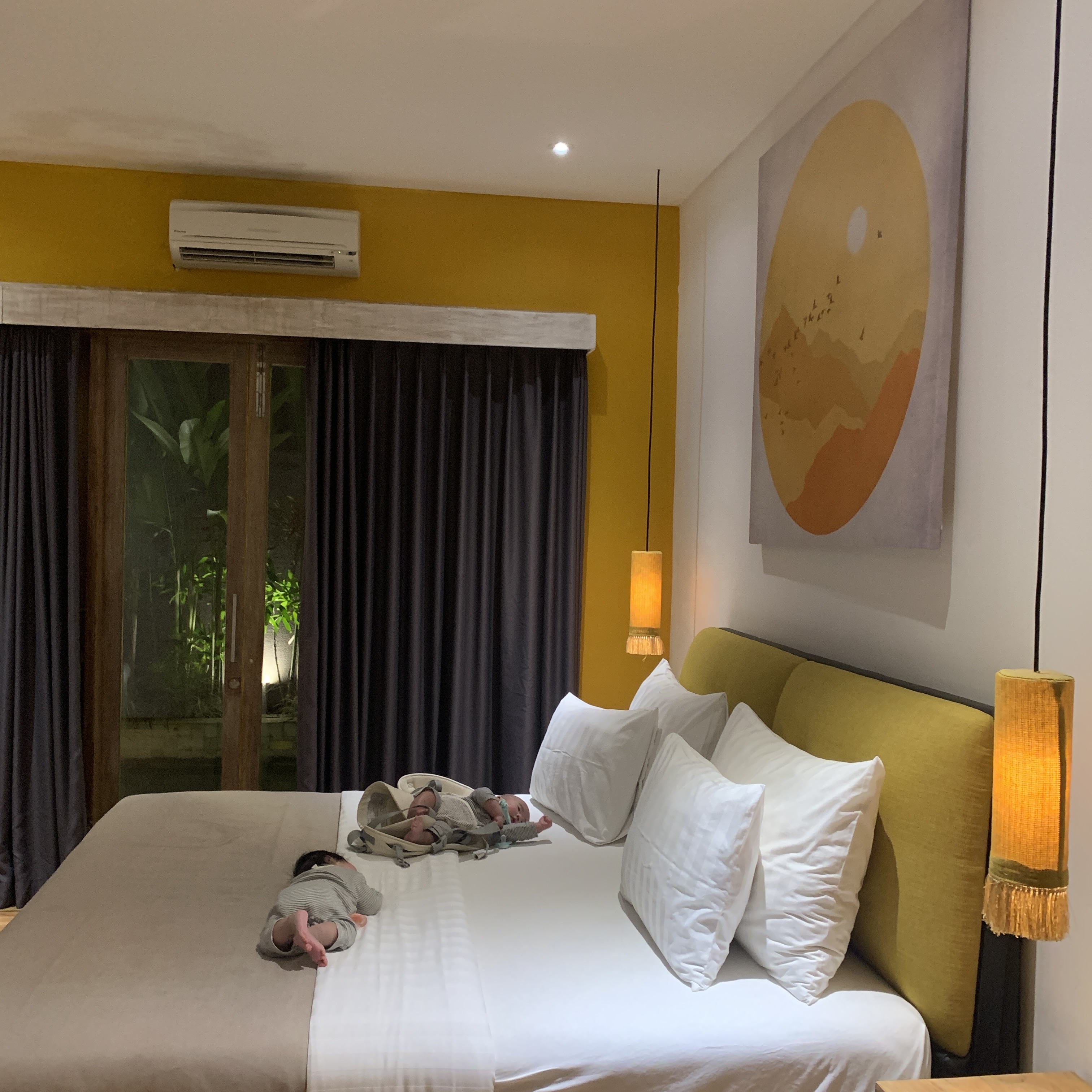 수영장이 딸려있어서 매일같이 일어나서 아침 먹고 모닝 수영을 즐겼고, 따스한 햇볕아래 원형 소파에서 음악을 듣다가 낮잠에 취하기도 했다. 4달 된 쌍둥이들이 있어서 분유수유랑 목욕도 잘했다. 에어컨이 한번 고장 났는데 카운터에 이야기하니 바로 와서 수리를 해주었고, 객실 청소는 오후 3시 전까지 원하는 때에 해준다. 4시 넘어서 늦게 객실 청소 요청한 적도 있는데 흔쾌히 해주었다. 해변과는 조금 떨어져 있지만, 이곳에서 묵는 매일 저녁 짱구, 스미냑 해변을 왔다 갔다 하며 일몰을 감상했다. 이쪽 지역은 교통 체증이 거의 하루종일이라 보면 되고, 도로 사정이 안 좋아서 오토바이를 탄다고 해도 밀린다. 짱구에 있는 라브리사 클럽비치는 차로 50분 정도, 스미냑에 있는 포테이토 헤드 비치클럽은 차로 25분 정도 걸렸다. 그랩으로 이용하면 평균 4~6만 루피아(한화로 3~4천 원)이다. 시간별로, 교통체증별로 가격은 수시로 변동된다. 4일동안 묵으면서 딱히 불편한 점을 못 느꼈다. 이정도면 양호하다.