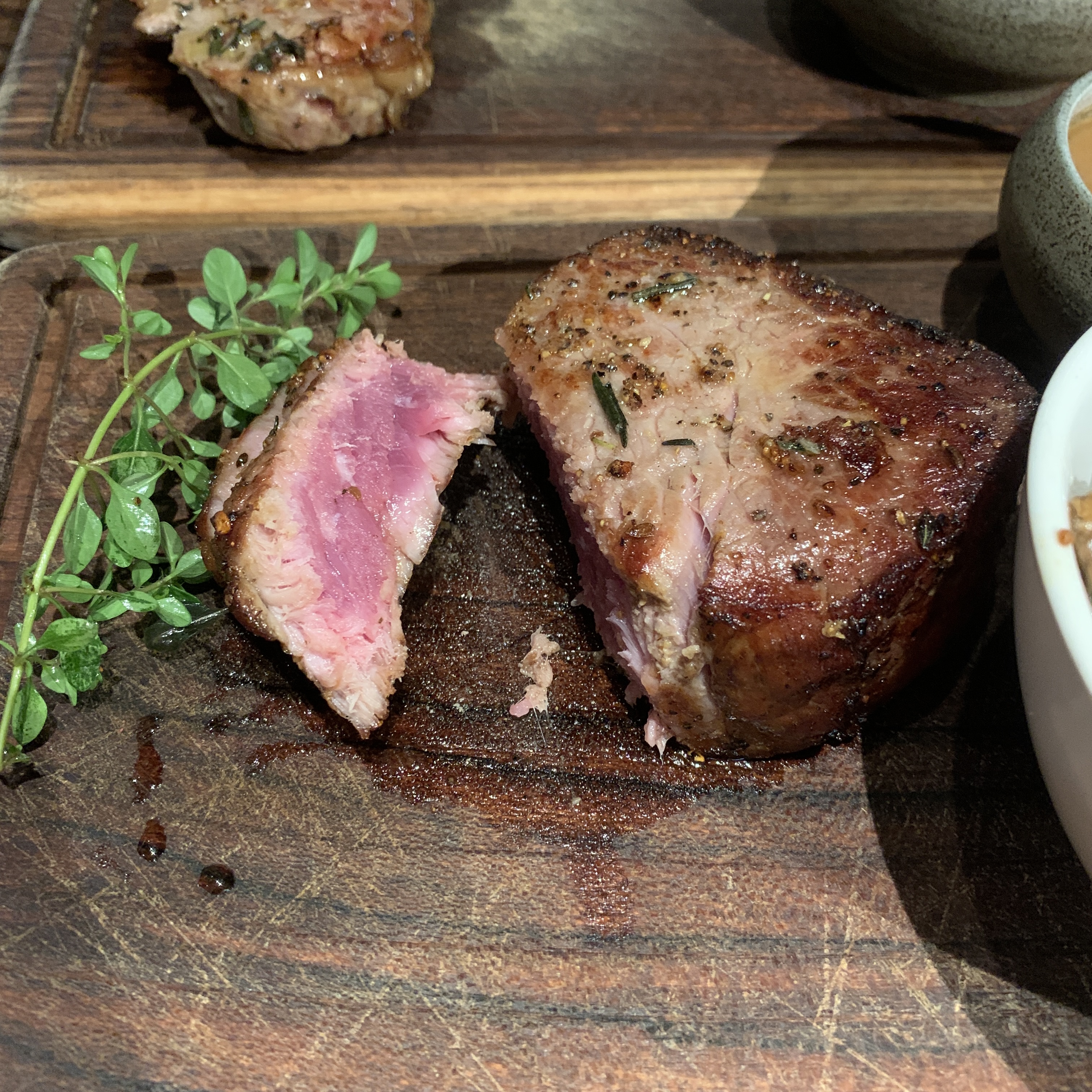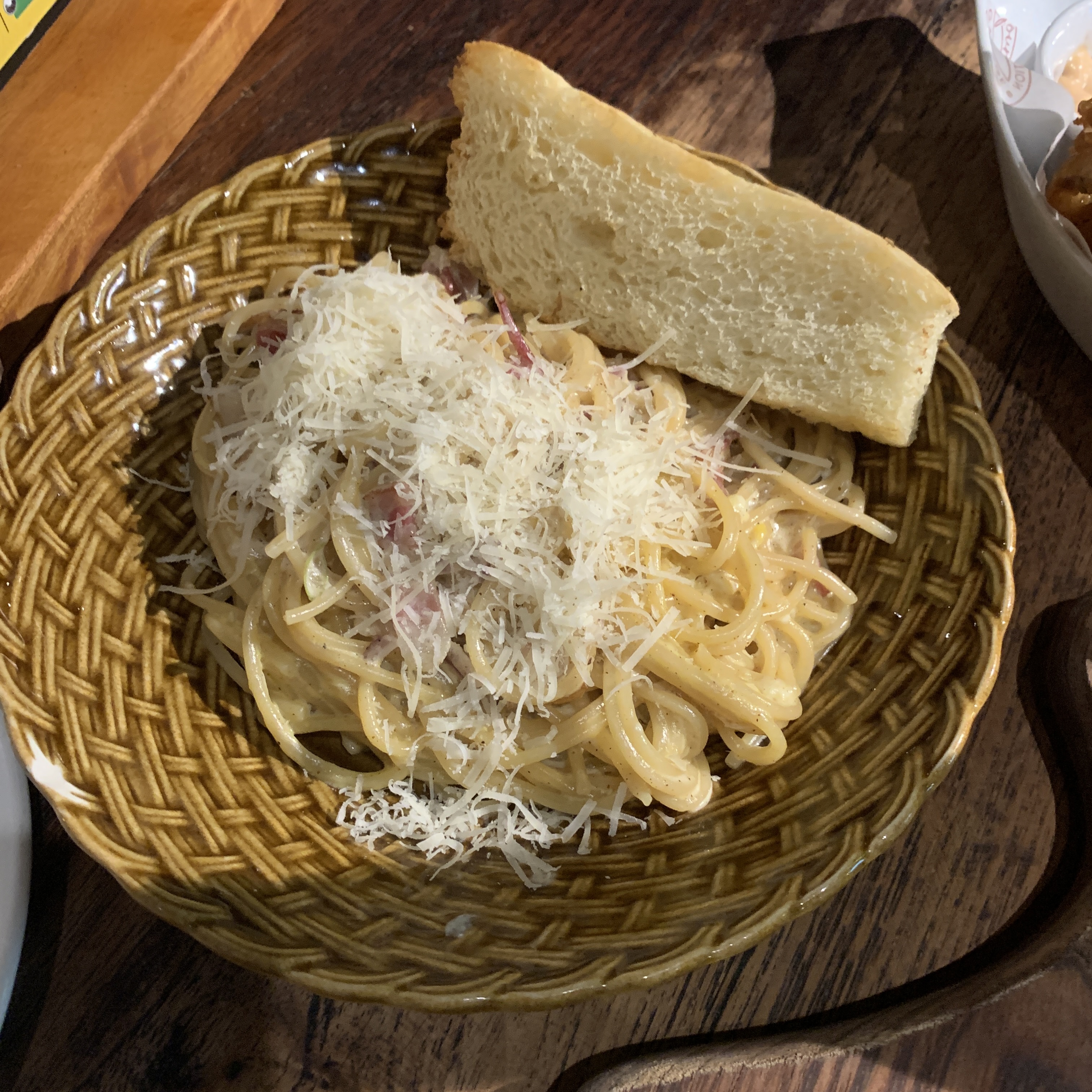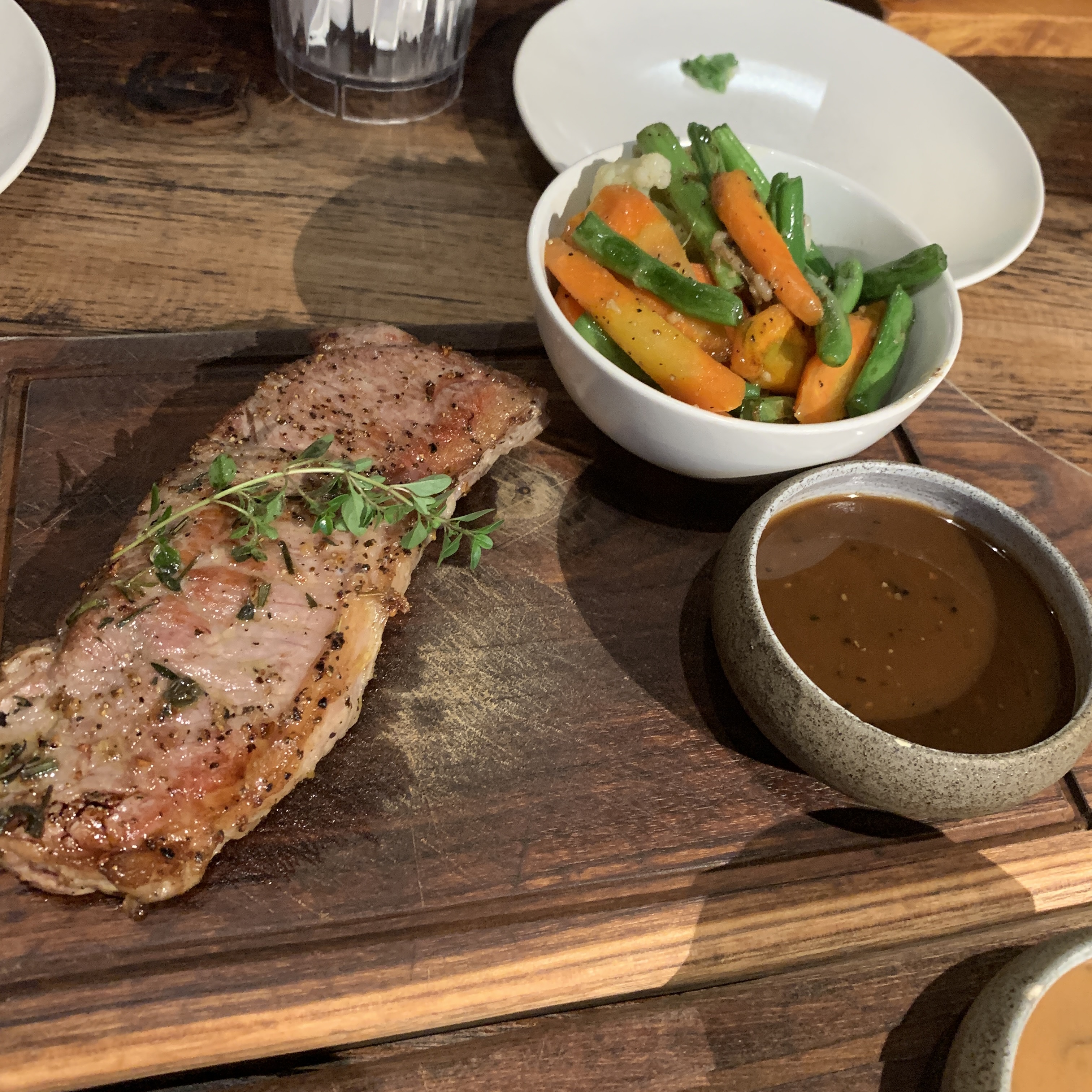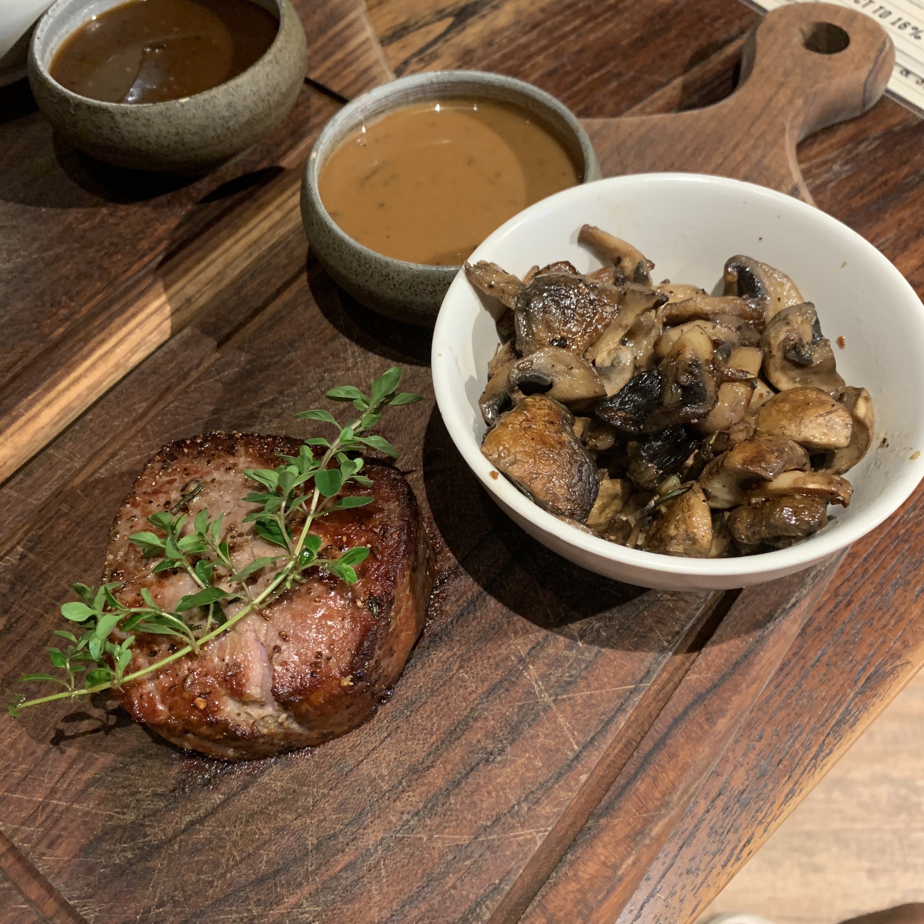 굽기는 미디엄레어로 나왔다. 첫 번째가 안심, 두 번째가 채끝살 사이드는 버섯과 야채 주문했다. 고기는 채끝살이 미디엄 레어인데도 불구하고 조금 질겼다. 와규가 아니라서 그런가 나는 질겼지만 아까워서 먹었고, 와이프는 먹다가 남겼다. 사이드로 나온 버섯과 야채는 적당히 익었고 간도 잘돼있어 고기와 잘 어울렸다. 양파튀김은 튀김옷을 잘 입혀 식감이 좋았고 마요네즈 소스와 잘 어울려 가장 맛있었다. 까르보나라랑 마르게리따피자도 실패 없이 기본에 충실한 맛이었다.