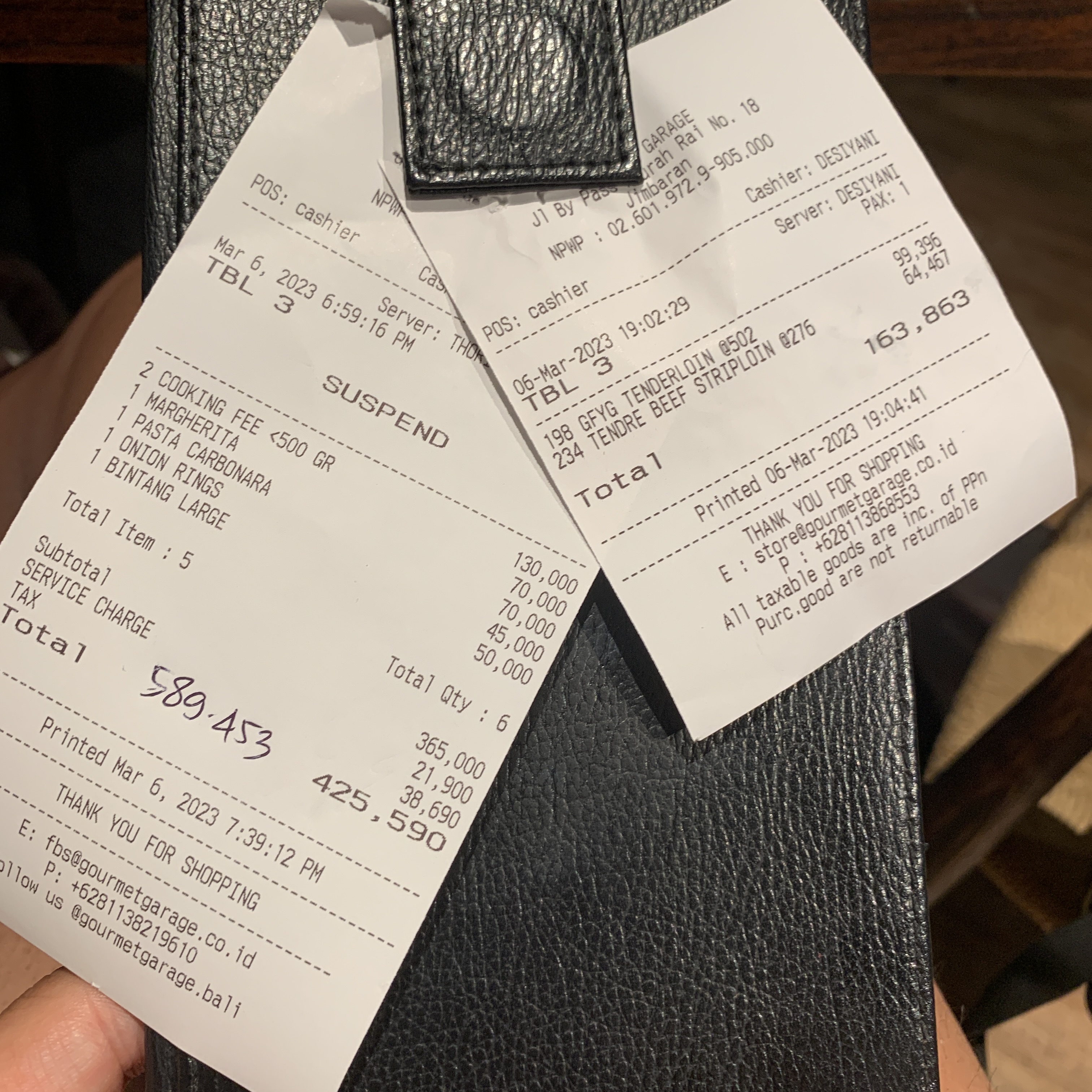 총 590,453루피아. 호주산이라 스테이크 2개를 시켰음에도 저렴하게 잘 먹었다.