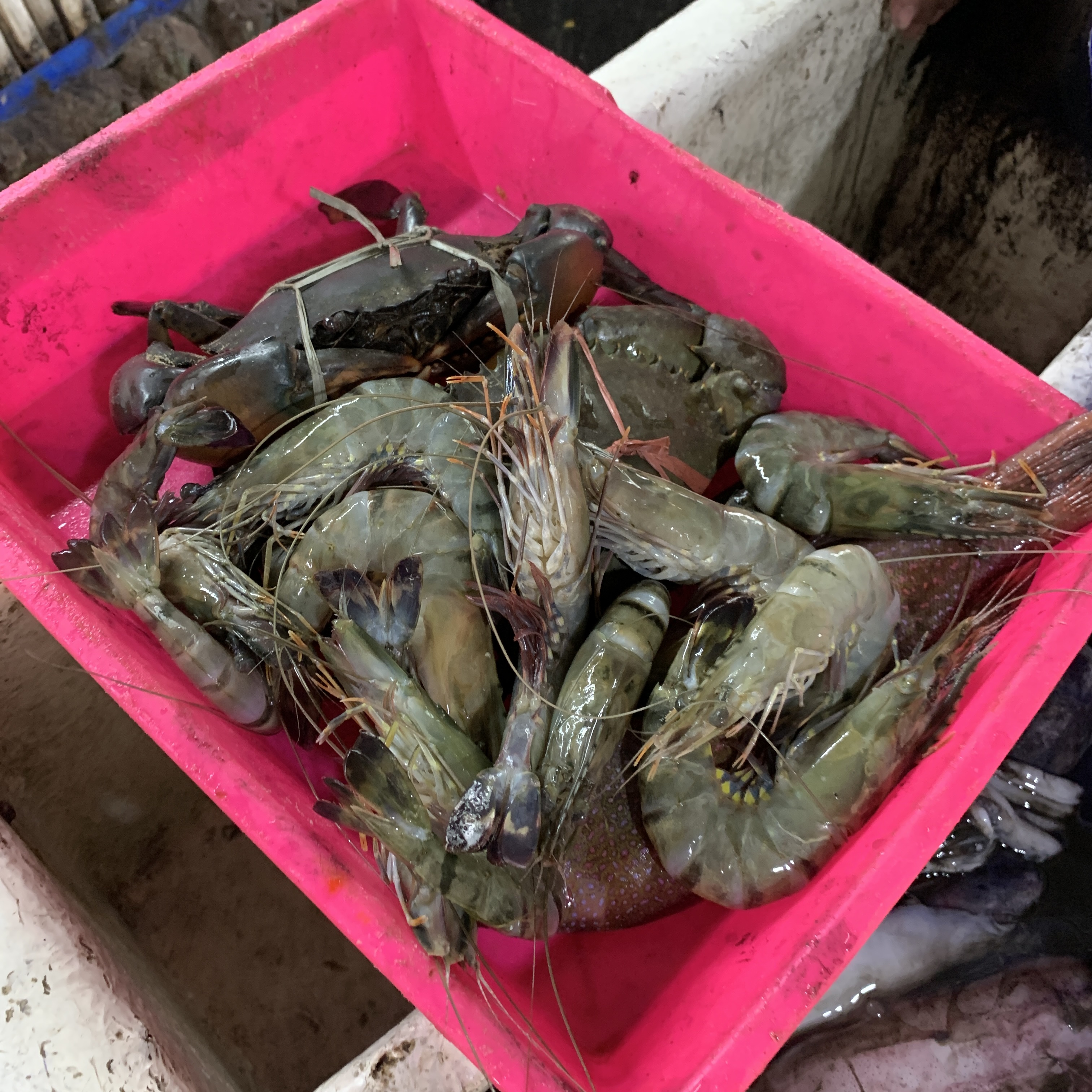 싱싱한 해산물들이 각자 자리에 위치해 있다. 한국처럼 수조가 없고 주변 청결상태가 좋진 않아 비위생적으로 보이지만, 상품 하나하나는 신선해 보였다. 먹고 싶은 만큼 골르면 그 자리에서 무게를 확인하고 그대로 조리에 들어간다.