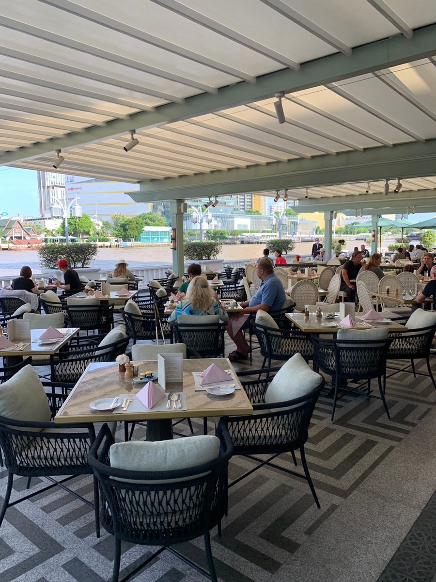 만다린 오리엔탈 방콕의 오 서스 라운지. 여자들에게 에프어눈티로 인기가 많은 장소이다. 투숙은 하지 않더라도 이곳의 에프터눈 티를 먹기 위해 많은 사람들이 방문한다.