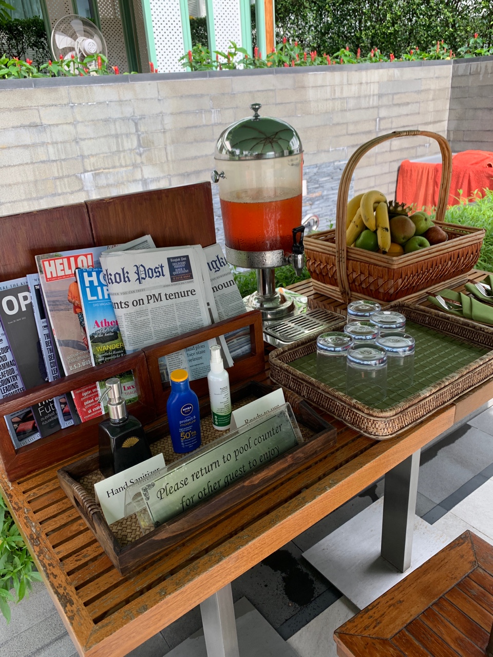 신문, 잡지, 음료, 과일, 선크림, 오일 등 휴식을 취하며 기본적으로 필요한 요소들이 구비되어있다. 물론 투숙객 무료 이용이다. 그리고 오후 4시쯤 되면 아이스크림 카트가 등장한다. 아이스크림 먹고 싶은 사람은 손들면 된다. 원스쿱이지만, 나는 투스쿱을 달라고 했다.