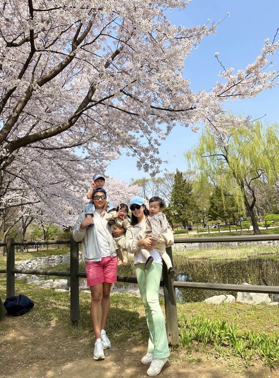24년 다섯 명이서 함께 용산가족공원에서. 올해 말 이사를 가기 때문에 이곳에서의 벚꽃구경은 올해가 마지막일 것 같다. 내년에는 새로운 장소에서 벚꽃구경하는 날을 기다리며