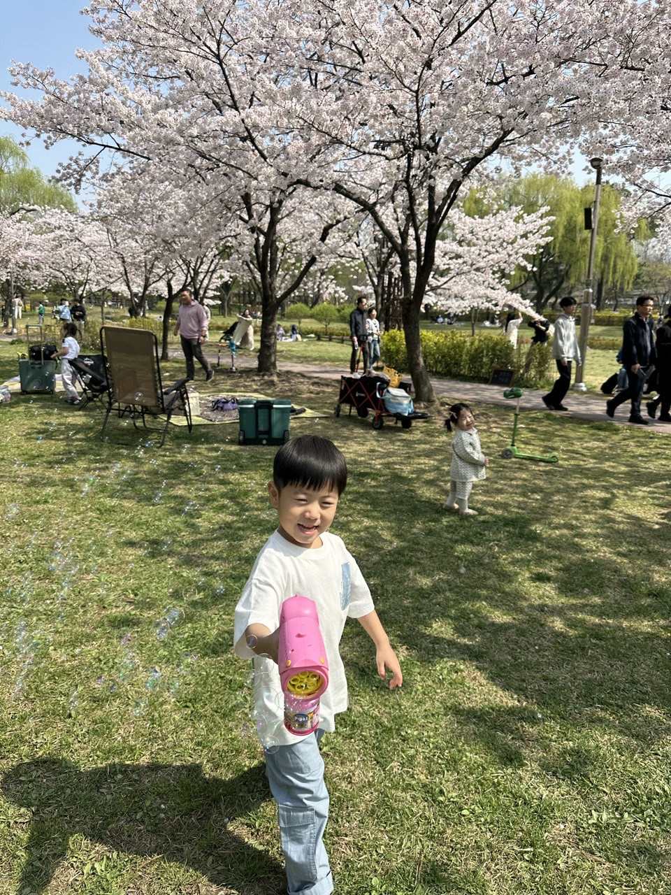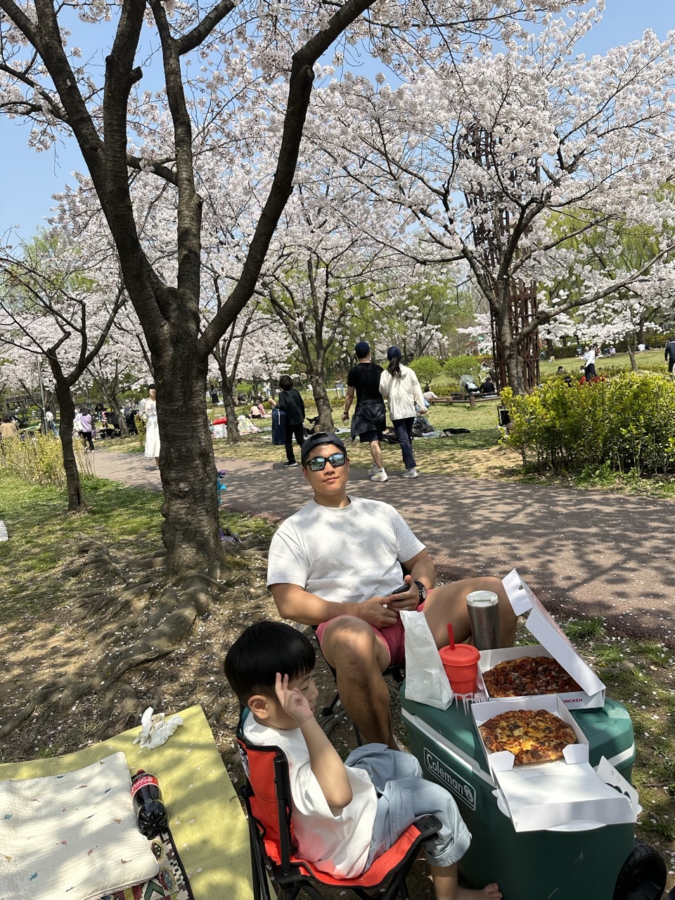 24년 다섯 명이서 함께 용산가족공원에서. 올해 말 이사를 가기 때문에 이곳에서의 벚꽃구경은 올해가 마지막일 것 같다. 내년에는 새로운 장소에서 벚꽃구경하는 날을 기다리며