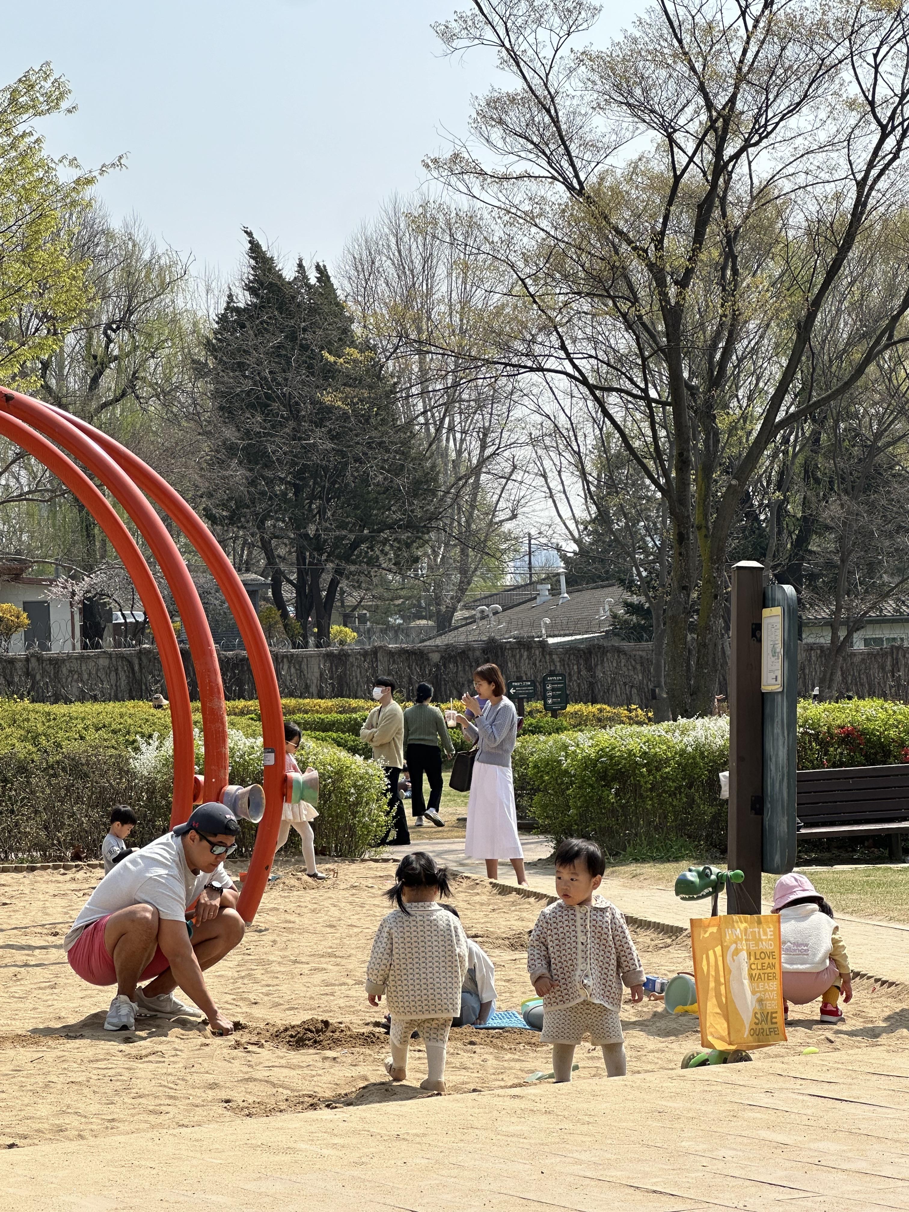 용산가족공원은 규모도 너무 크지 않고 적당한데 구경할 요소들이 많이 있다. 버드나무와 벚꽃, 연못도 있고 아이들에게 최최적인 모래놀이터가 있고 그 앞에 화장실과, 수도까지 연결돼서 물도 나온다. 주말에는 야외결혼식도 가끔 한다.