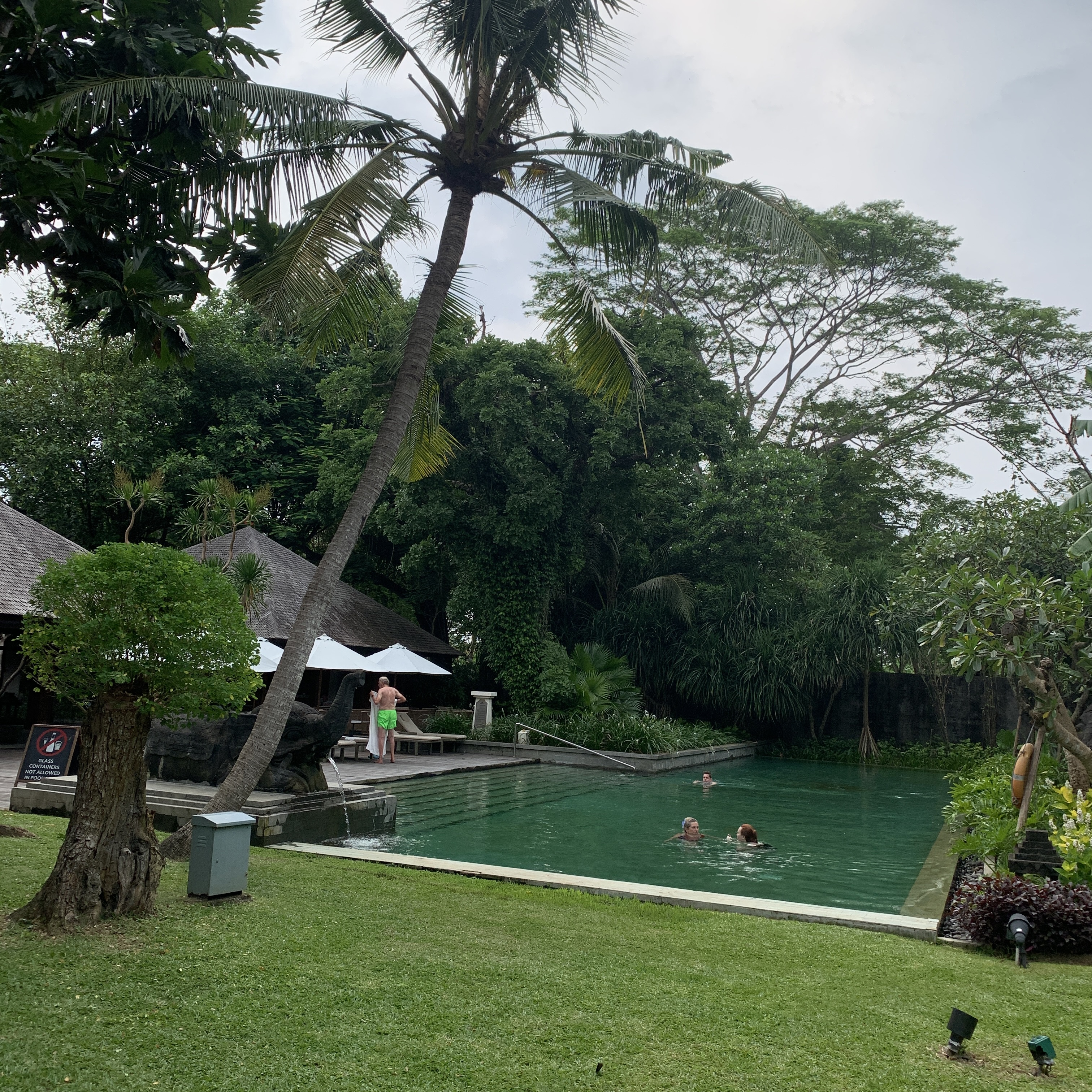 로비에서 보이는 연못과 조경시설들. 조경을 설계했다지만, 기간도 오래되고 나무들이 커서 설계했다기보다는 자연 친환경적인 느낌이다. 발리와 잘 어울리는 모습이다.