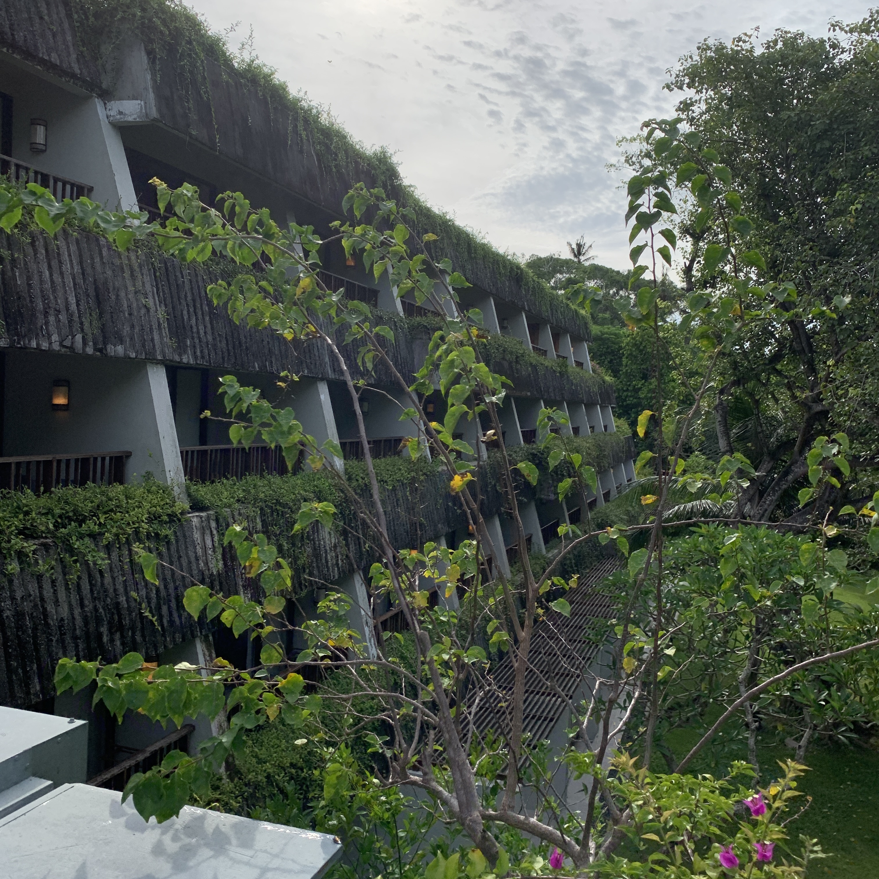 웰컴 과일이고 맛은 못 봤다. 그리고 발코니에서 바라본 객실 외관이다. 누가 정신병동 갔다고 했는데... 그냥 멋진 정글 속 호텔로 보인다.
