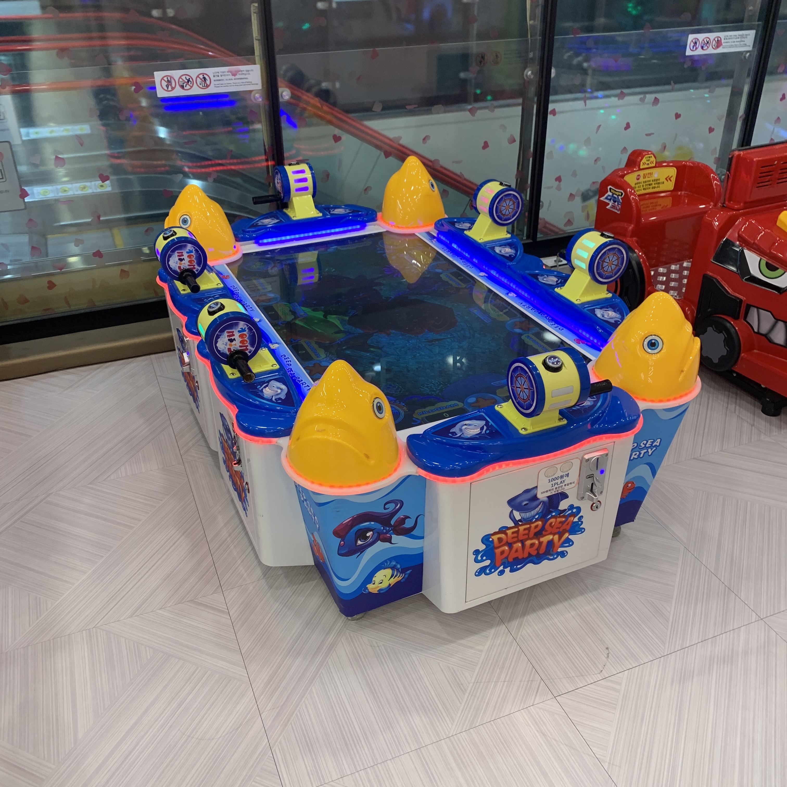 아이들이 놀 수 있는 대형 실내 4층 놀이터. 안에 미끄럼틀도 있고, 구름다리, 장애물이 있다. 아들이랑 같이 놀려고 들어갔는데 성인, 특히 아빠들에게는 안에서 돌아다니기에는 너무 좁다. 몇번 돌아다니다가 몸이 불편해서 안들어갔다. 그리고 사진 우측에는 어린이 낚시존이 있다. 1층에는 여러가지 바다생물들이 놓여져있고 2층에서 낚시대로 잡아올리는 놀이다. 서로 좌석이 붙어있어 주변에 갖다 대기만 하면 붙는다.