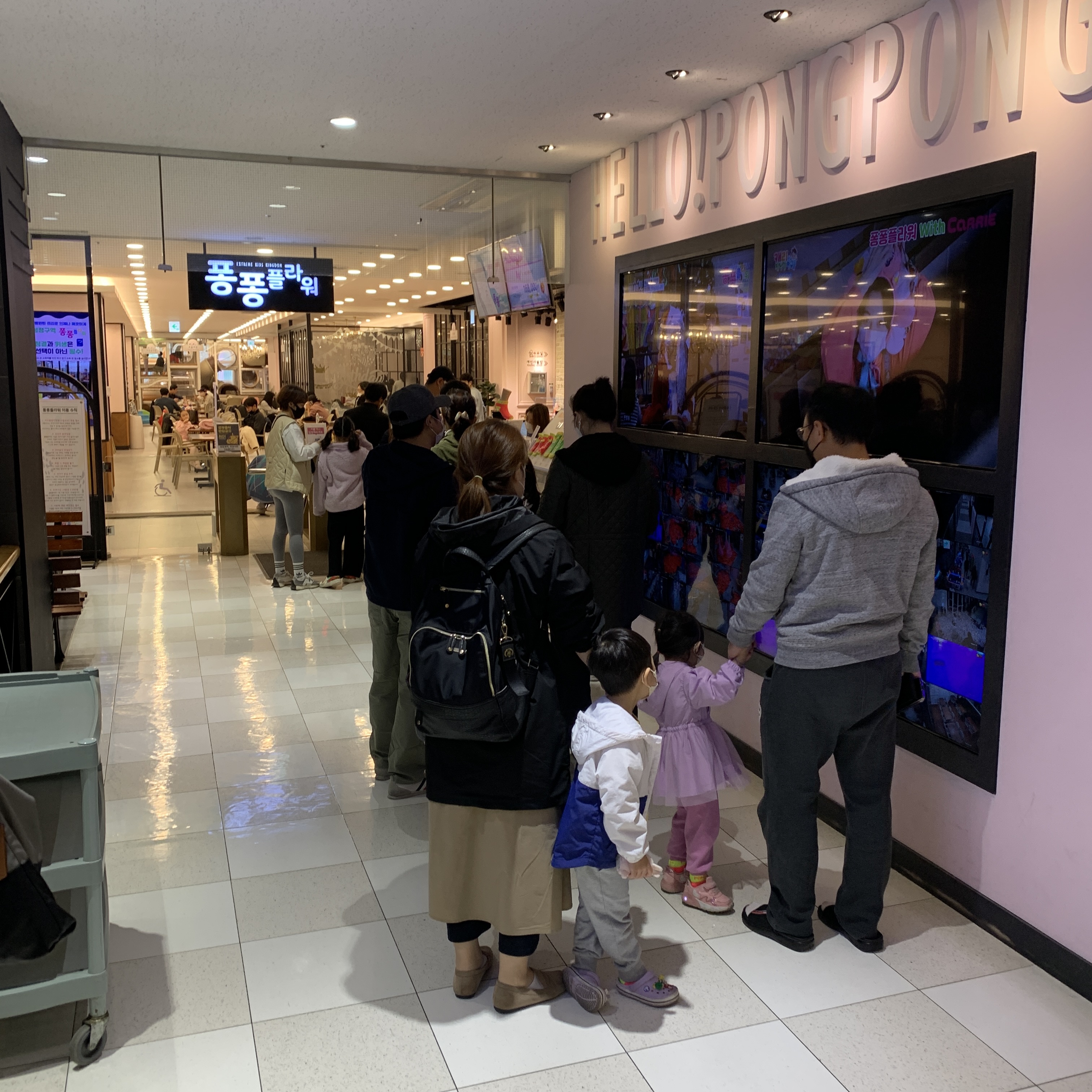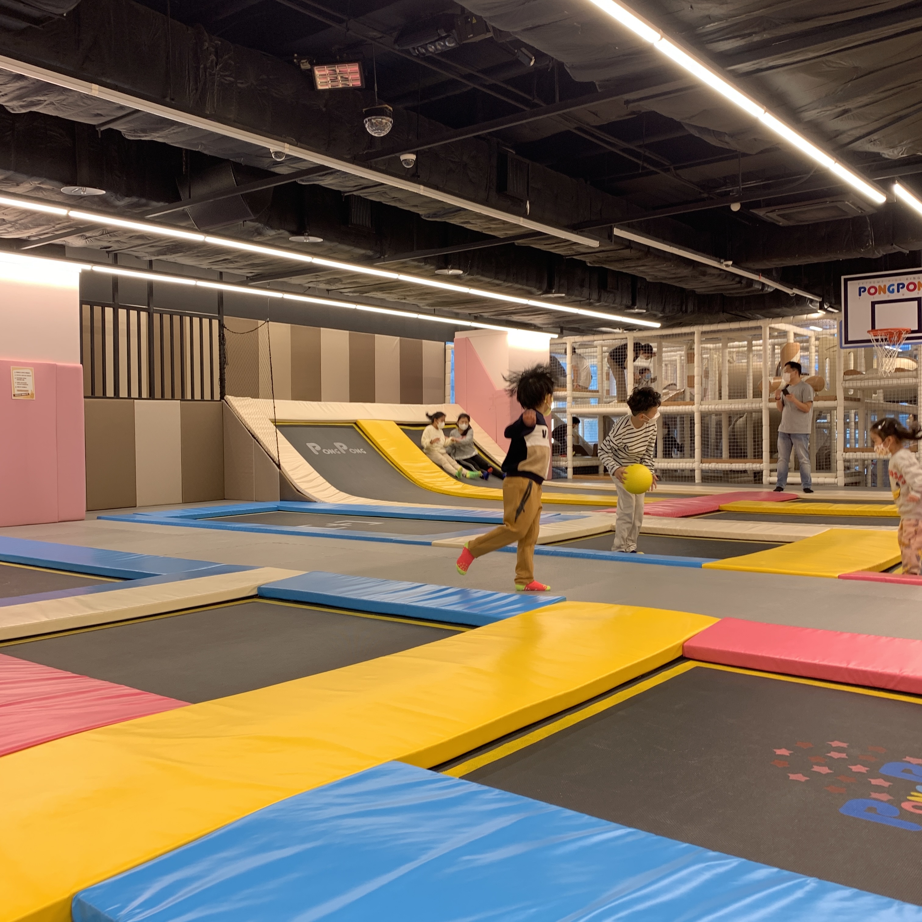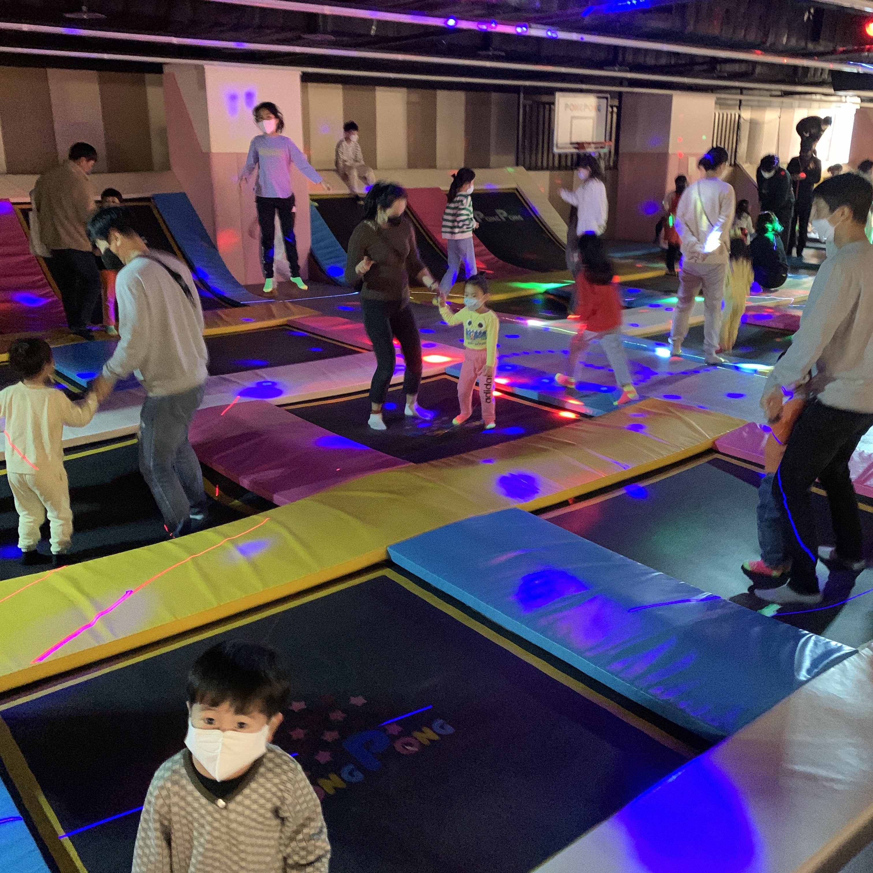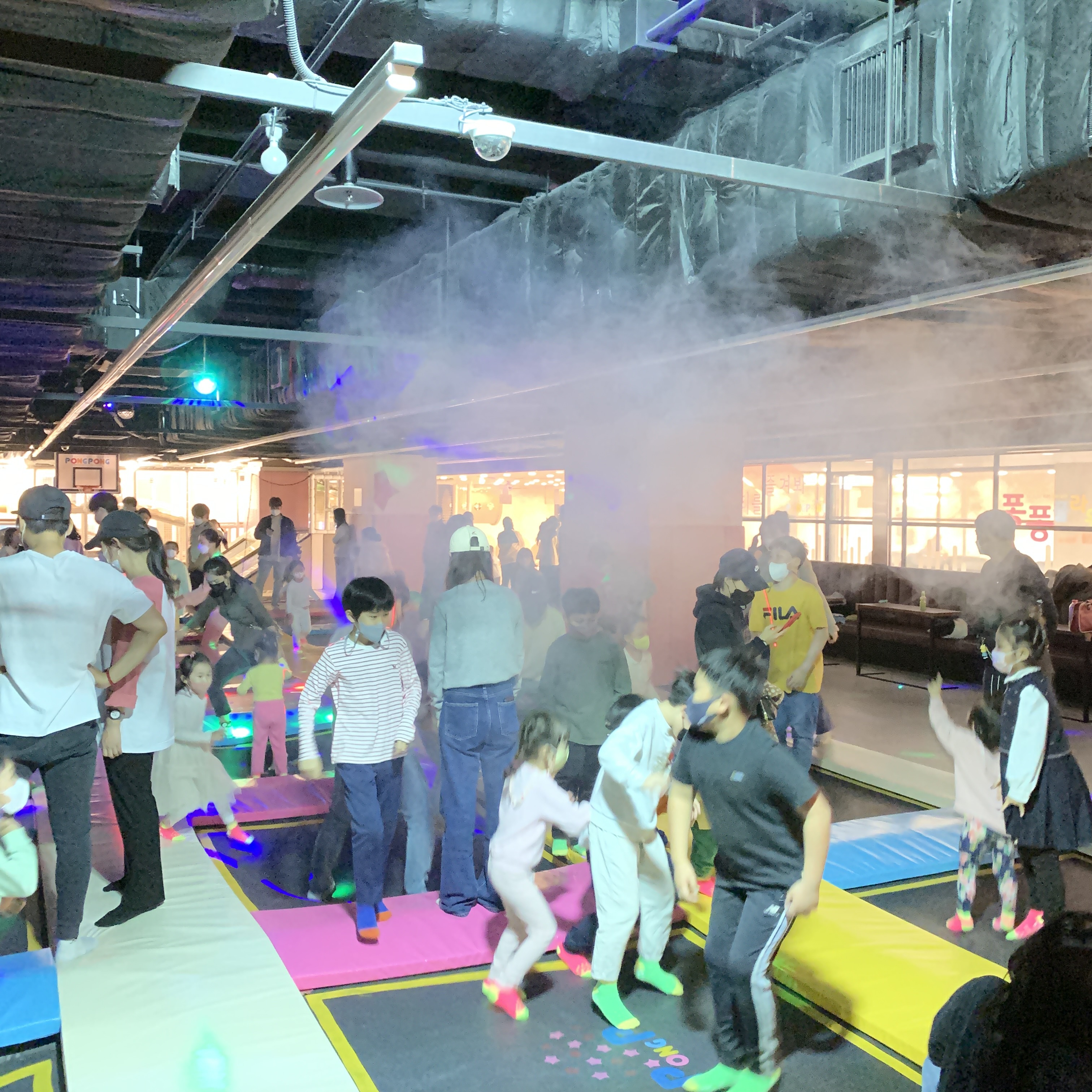 그리고 한번씩 트램플린존에서 파티가 열린다. 직원분들에 파티 전 안내 방송을 하면 어린이들이 모여들고, 곧 파티가 시작된다. 불이 꺼지고 싸이키 조명과 연기가 나와 사진으로 보면 어린이 클럽같다. 노래는 팝송이 나온다.