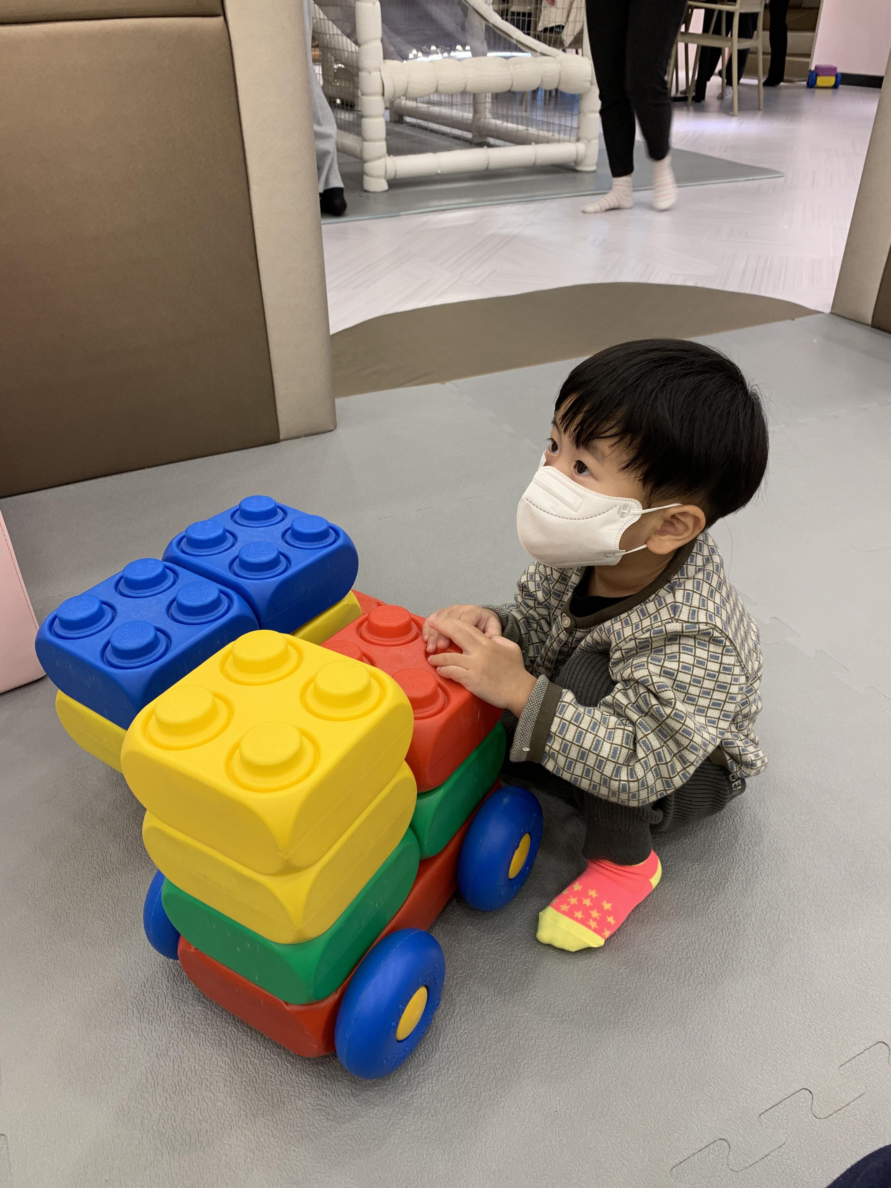 미니 볼풀장과 블럭 놀이할 수 있는 공간