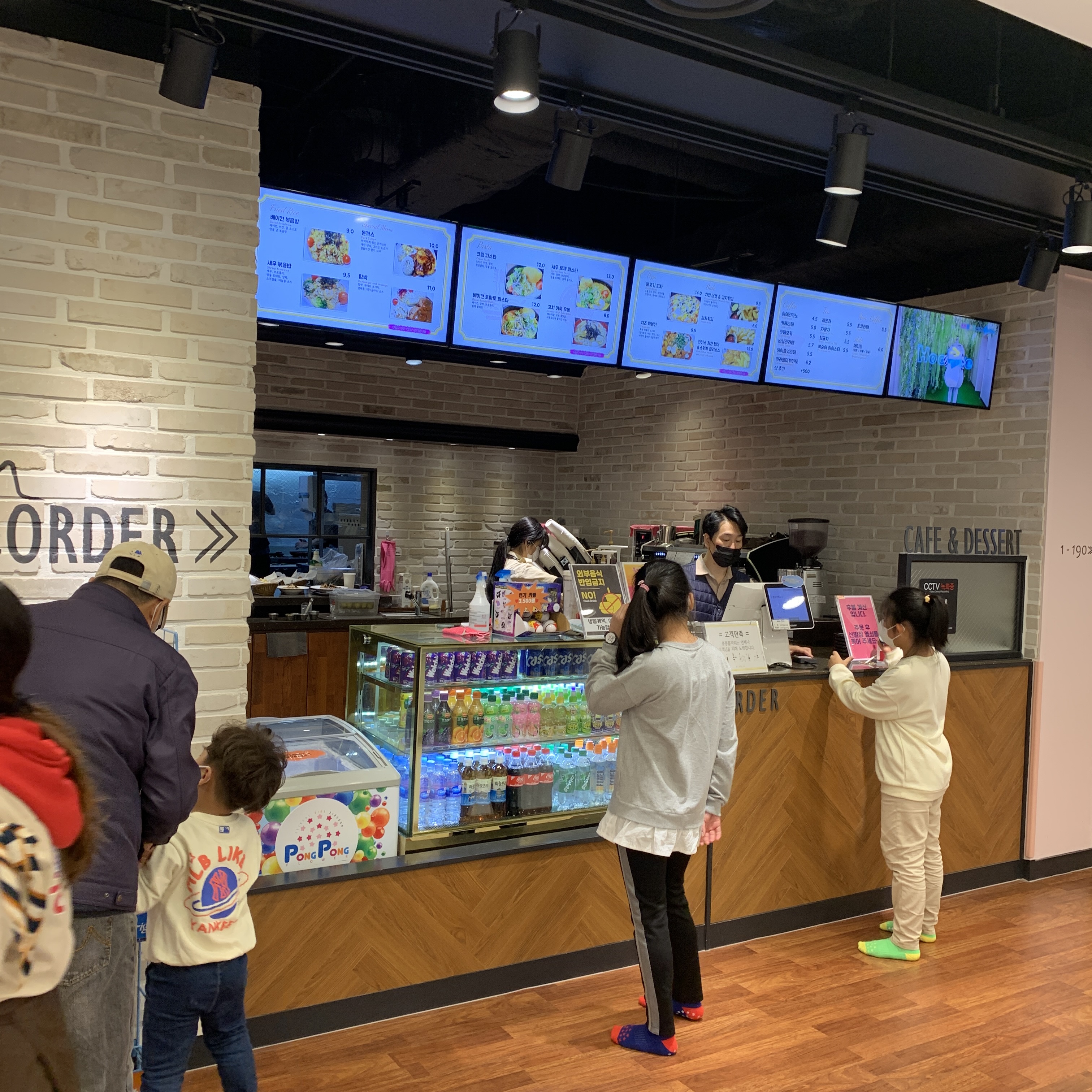 입장수속을 밞으면 카운터에서 팔찌형 번호키를 나눠준다. 내부에서 식당이용시 번호키로 선결제를 하고 나중에 퇴장할때 후불 계산하는 방식이다. 기본 놀이시간이 2시간이라 2시간이 넘어가면 추가요금도 번호키에 누적되어 결제하면 된다. 먹지는 않았지만 전체적으로 음식이 퀄리티도, 양도 괜찮아 보였다.