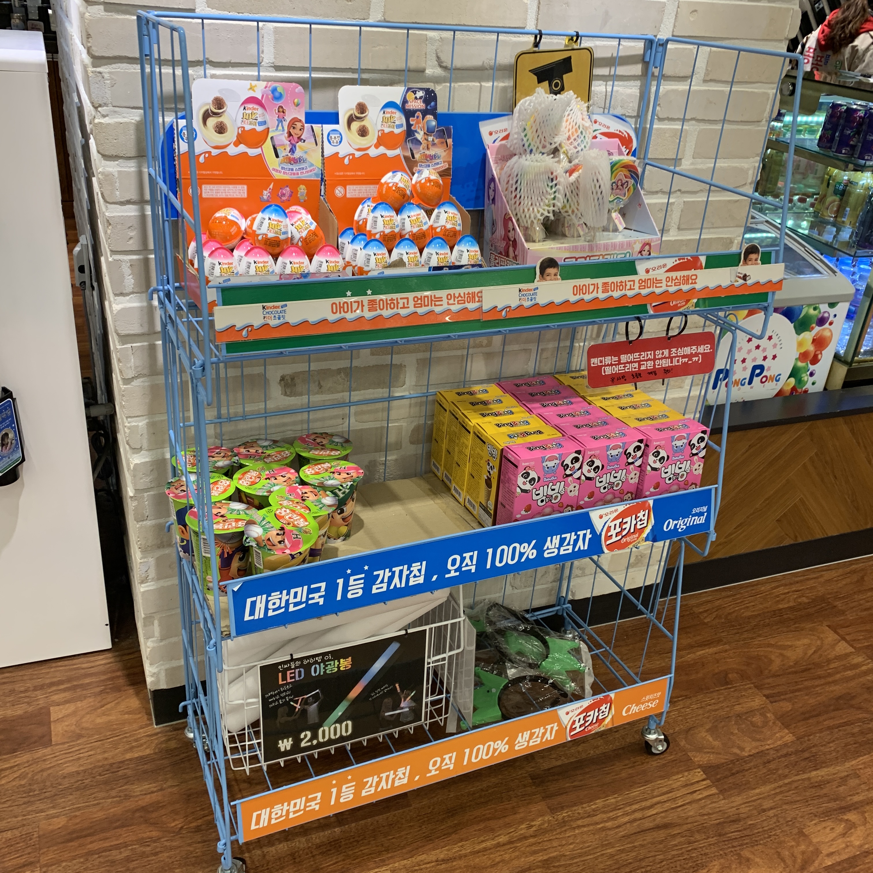 아이들이 들어오자마자 먹을 수 있도록 입구 앞에 진열을 잘해놨다. 어린이 눈높이에 맞춰 낮은 높이에 진열해 놓는 마케팅 센스 훌륭하다.