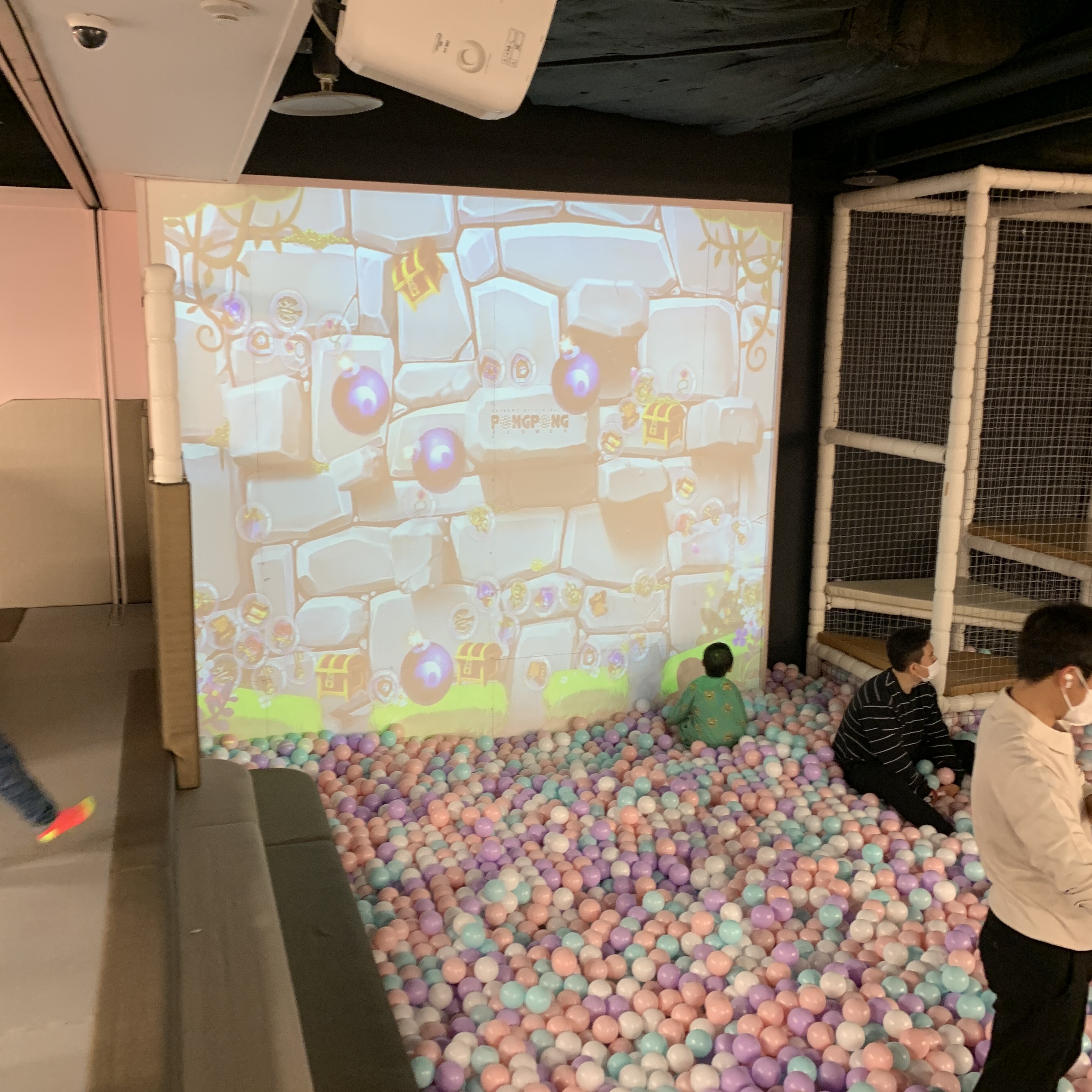 스크린으로 할 수 있는 볼터치게임과 징검다리 건너기 놀이 그리고 로프 타고 오르기