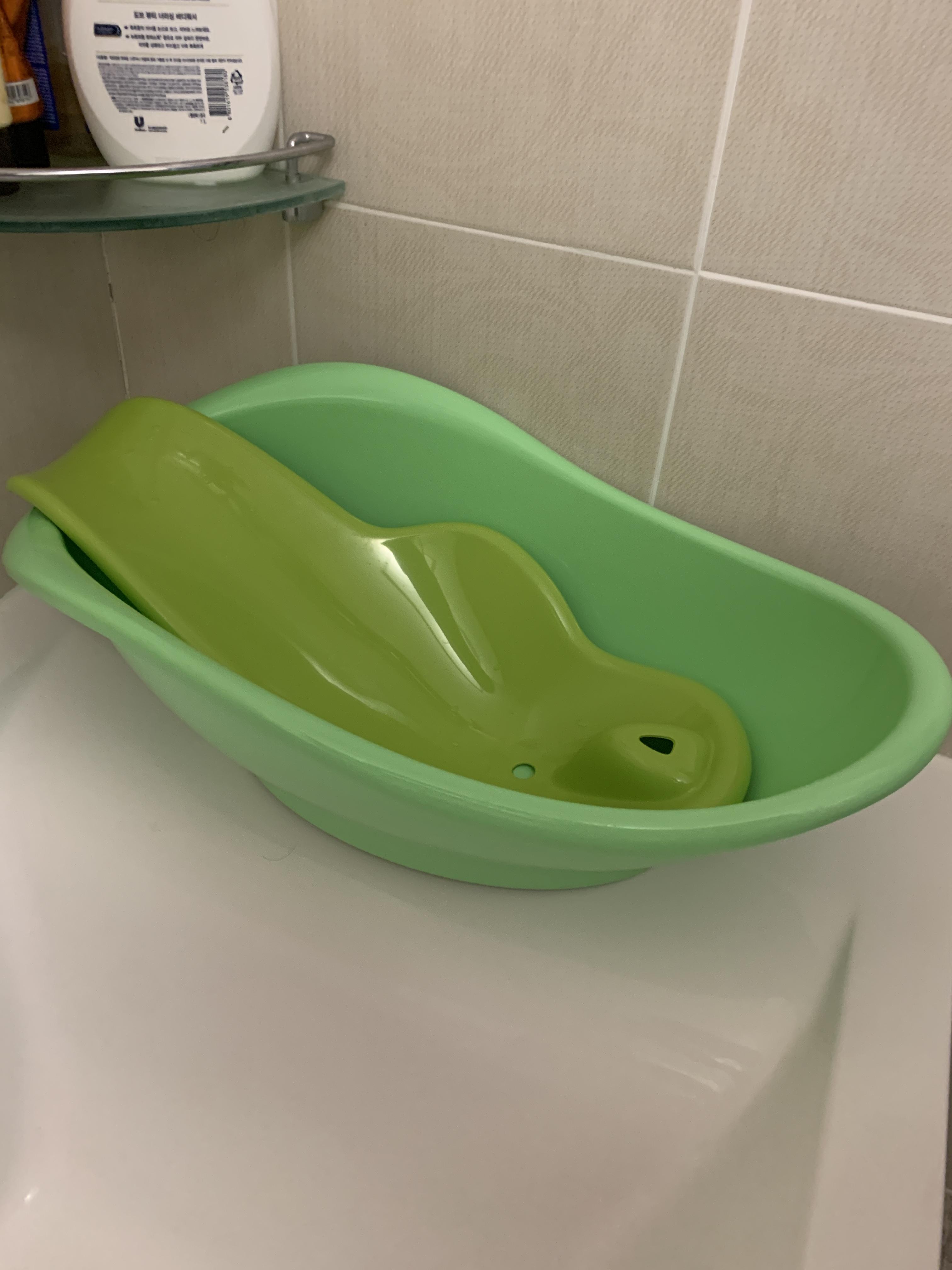 신생아는 목욕을 매일 시켜야 하지만 크기가 작아서 목욕시킬 시간이 되면 두려워진다. 이럴때 아기욕조가 있으면 아기를 안정적으로 자세를 잡아서 목욕을 시킬 수 있고, 물도 절약되기에 샤워할때 추천한다. 보통 아기욕조는 2개(샤워용, 행굼용)가 필요한데 기술이 된다면 1개만 사도 된다(숙달되면 세면대에서도 가능하기에 세면대에서 1차 샤워하고 행굼은 아기욕조에서 시켜주면 된다). 아기욕조는 바닥에 온도표시가 있어서 물을 받아 놓으면 해당 온도에 불이 들어온다.