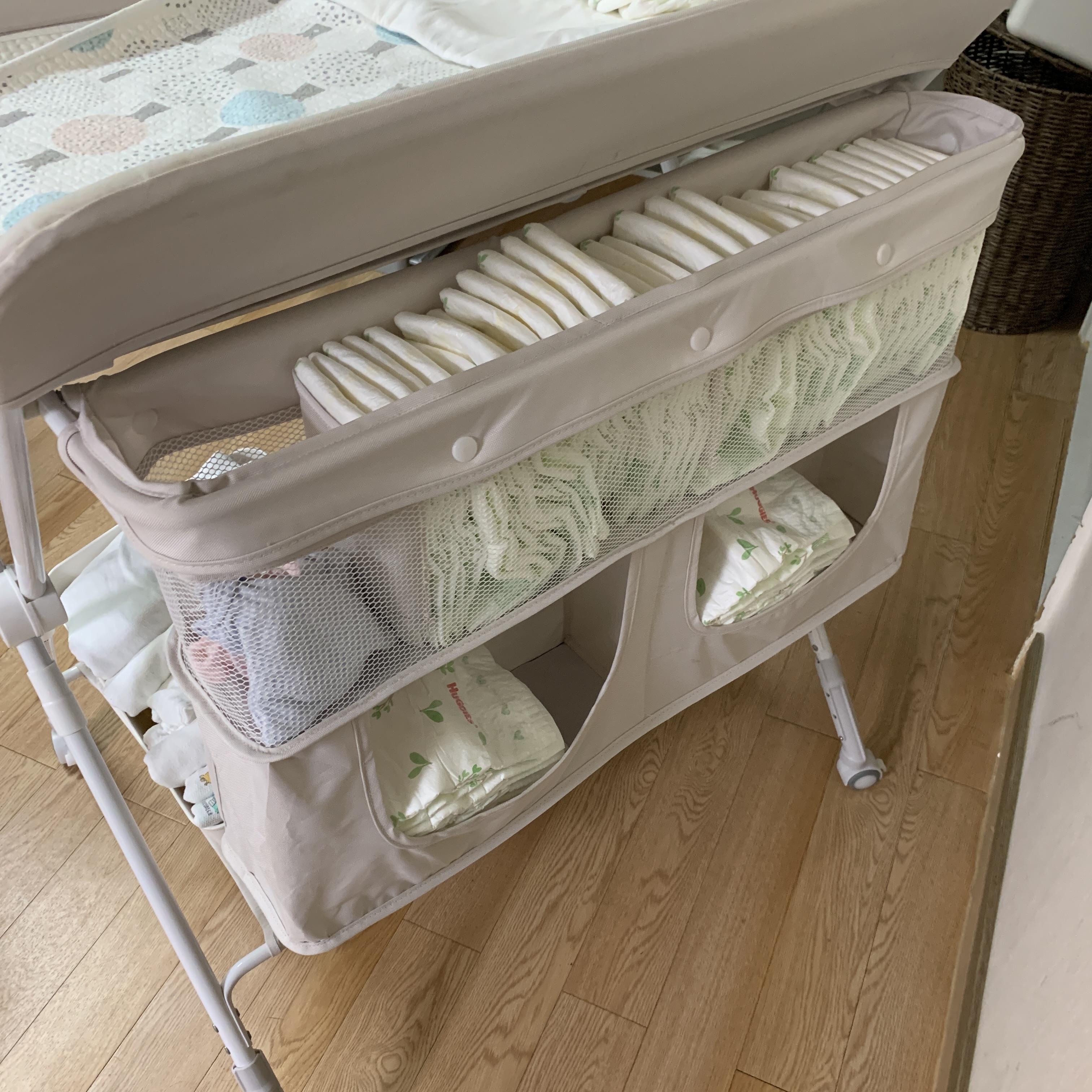 신생아 기저귀는 하루에도 몇번에서 몇십번씩 갈아줘야한다. 보통은 아이를 바닥에 눕혀서 기저귀를 가는데 계속해서 이렇게 반복되는 동작이 나오면 불편하다. 가뜩이나 산모는 출산 후 뼈도 비틀어지고 몸상태도 안좋은데 자칫하면 피로가 누적되어 몸이 상할수가있다. 기저귀 갈이대는 서서 기저귀를 갈 수 있기에 편하다. 아이를 기저귀갈이대 위에 눕힌 후 기저귀를 가는 용도로 제작 되었지만, 그 용도 외에 기저귀 파우치, 그리고 간단한 건조대, 수납함까지 있어서 다용도로 사용할 수 있고 바퀴가 달려있어 편하게 이동도 가능하다.