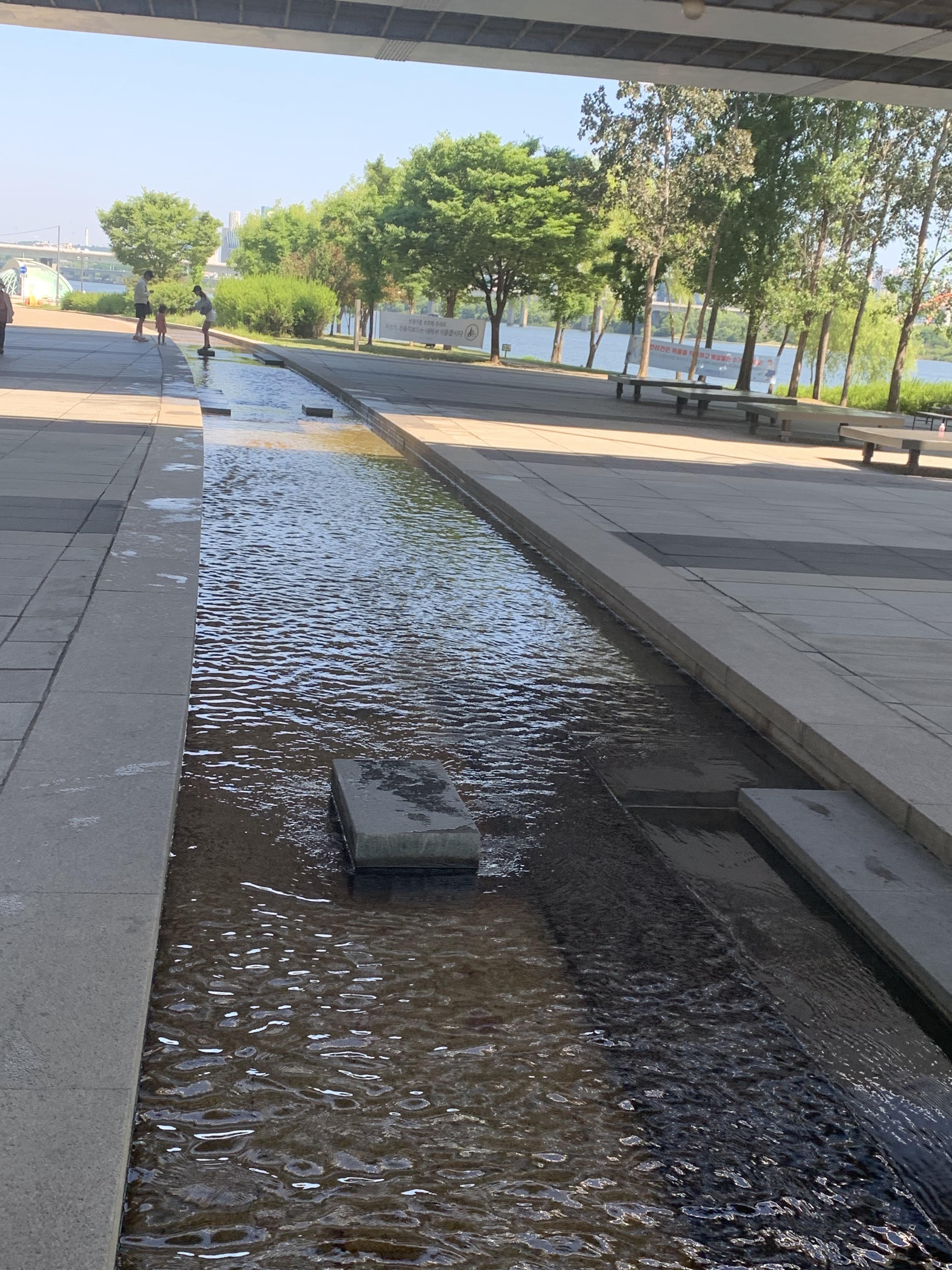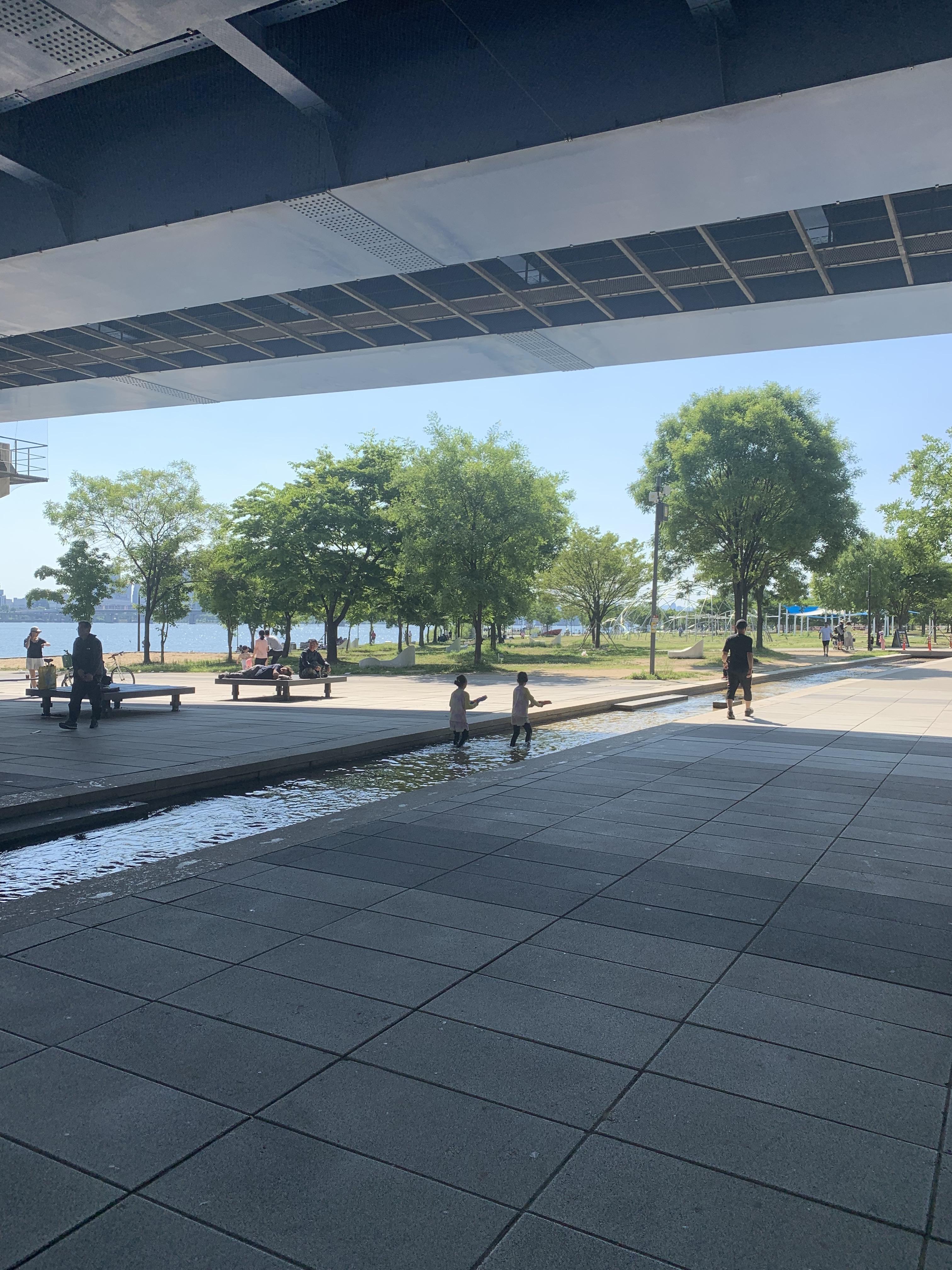 주차장에서 마포대교 아래로 지나가면 물빛광장으로 이어진다. 마포대교 아래도 물이 흐르고, 자연 그늘이 형성되어 더운 날 이곳에서 놀아도 충분히 좋을 듯하다. 하지만 처음 와봤기에 그늘막치는 장소까지 이동해 본다.