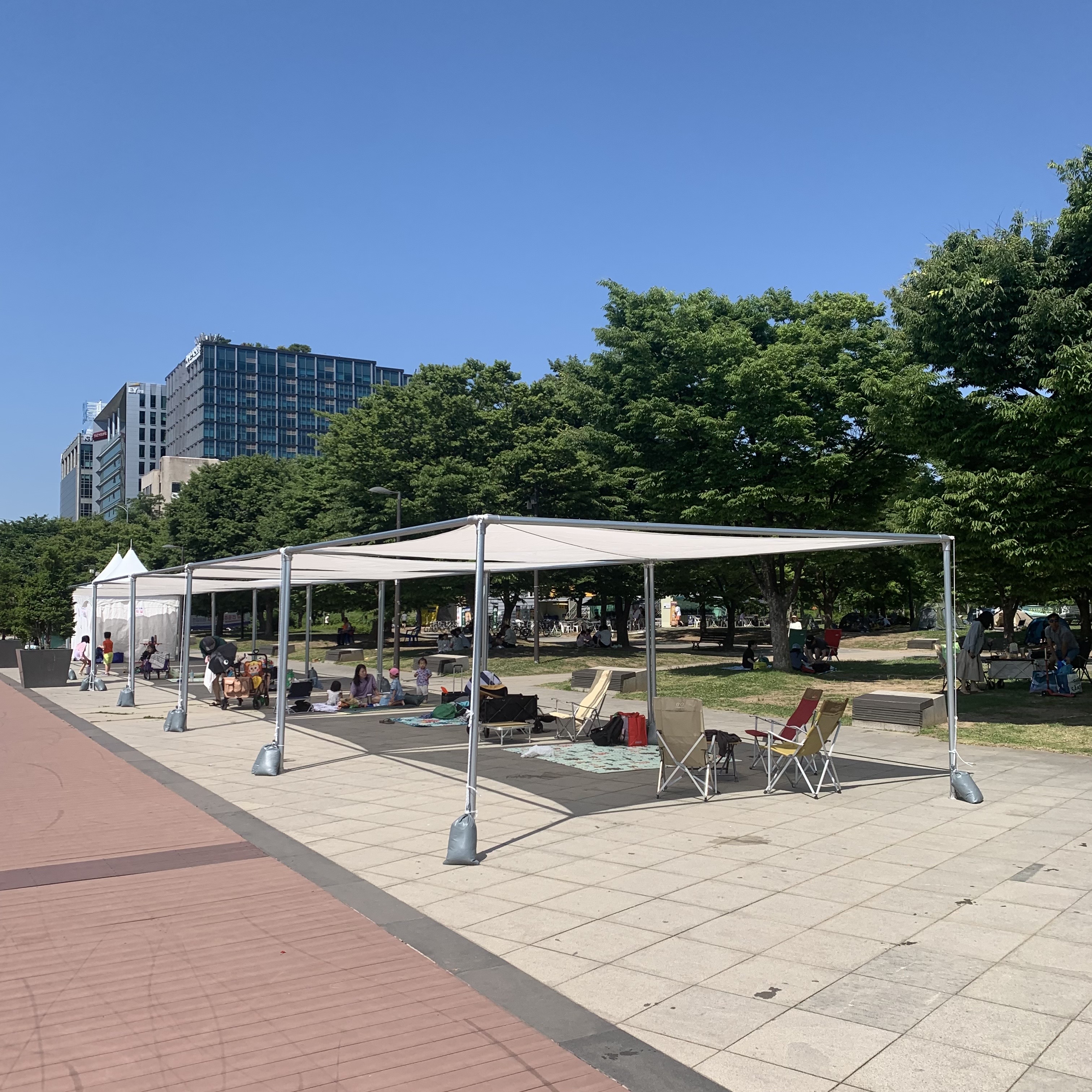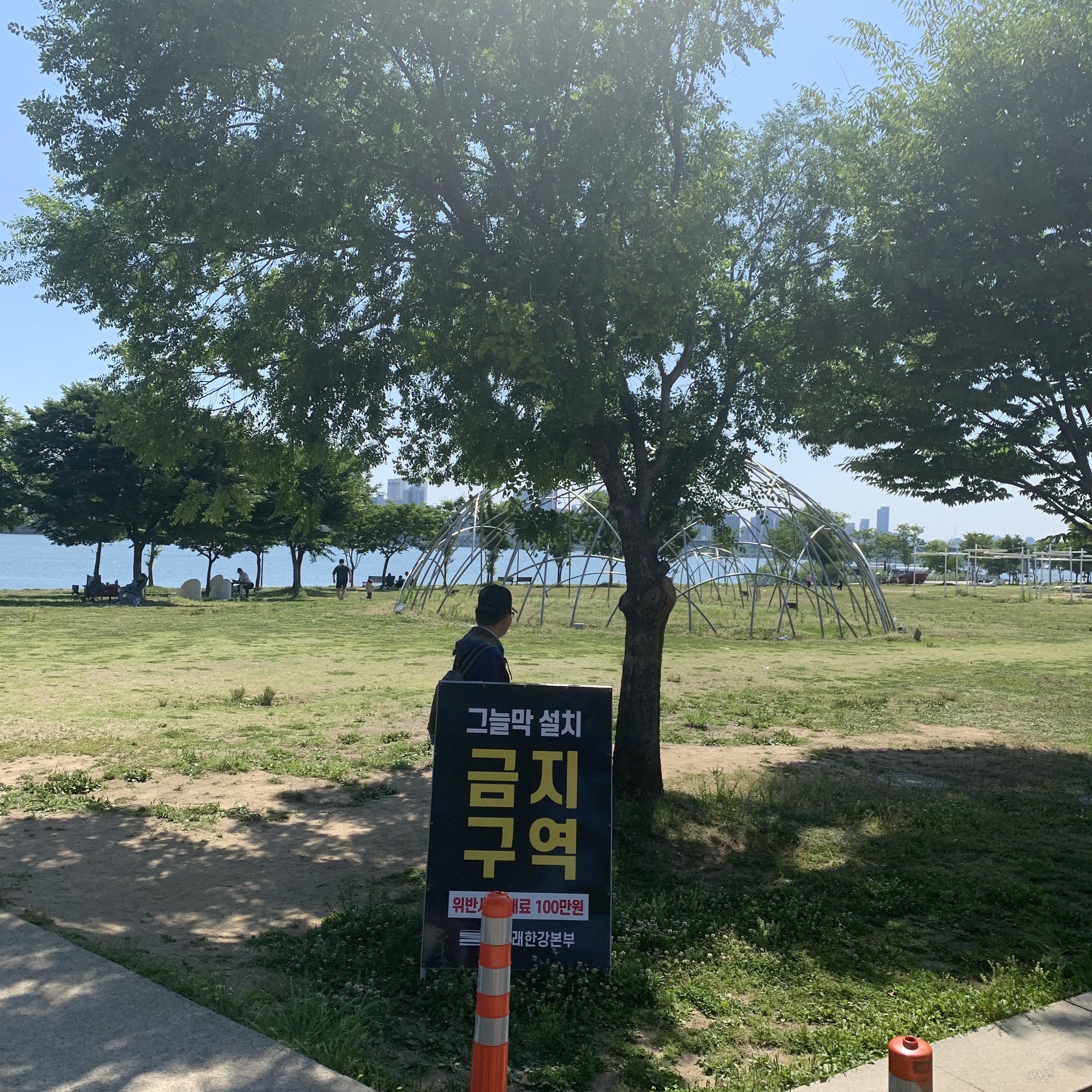 물빛광장으로 들어오면 쉴 수 있는 공간들이 있는데 아무 장소에나 그늘막을 설치할 수 있는 게 아니다. 돗자리 설치할 수 있는 장소와 그늘막 설치할 수 있는 장소가 별도로 있으니 확인하고 가자.
