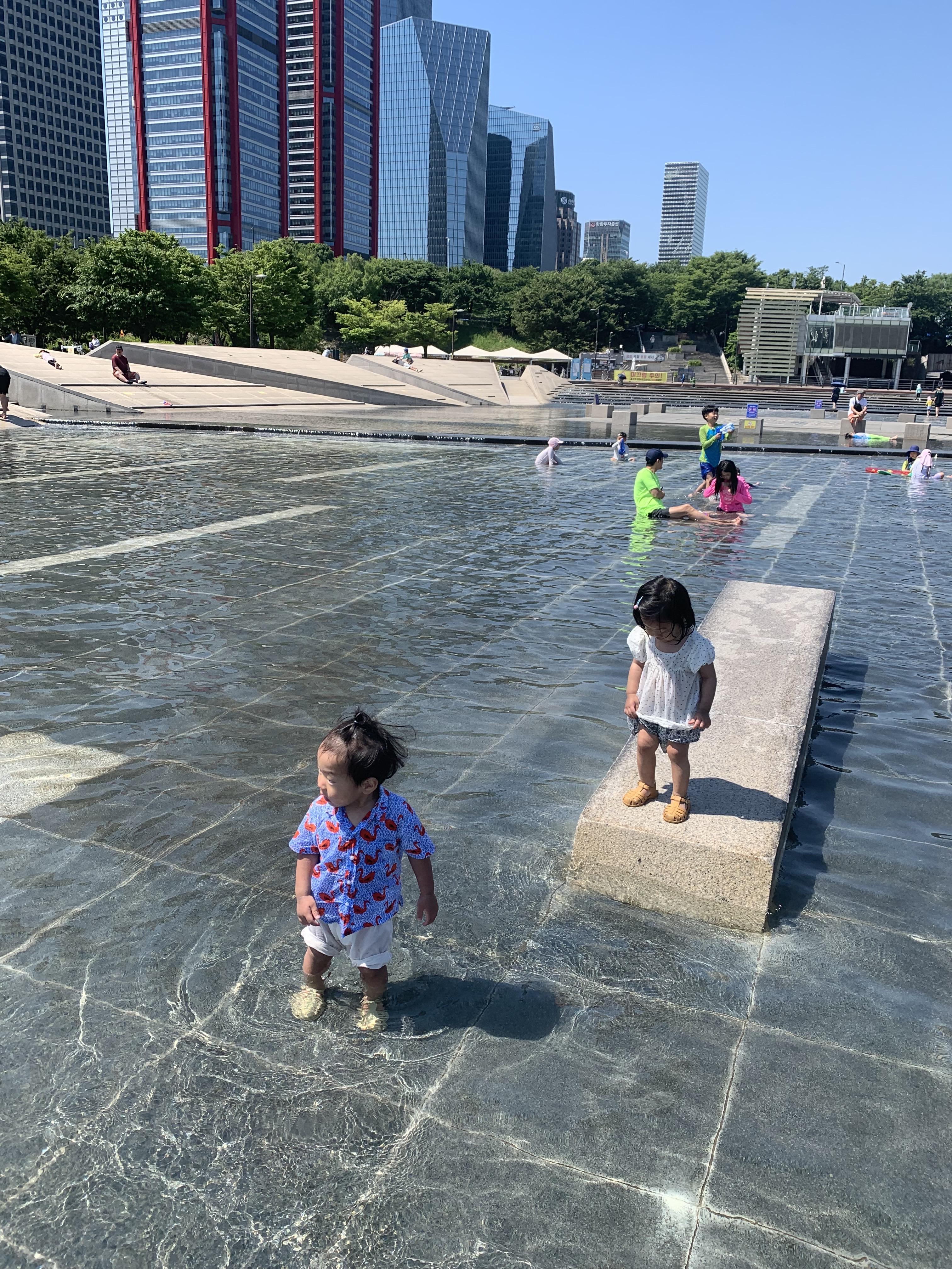 오전 9시에 도착해서 한두 시간 놀다가 점심 먹고 가려고 했는데, 아이들이 너무 좋아해서 오후 4시까지 있게 되었다. 그늘막을 챙겨 와서 쉴 때도 편하게 쉴 수 있었는데 다음에 오더라도 그늘막은 꼭 챙겨 와야겠다. 돗자리도 좋지만 벌레와 먼지로부터 노출이 되고, 무엇보다 아이들이 자리이탈을 할 수 있기에 그늘막에서 문 닫고 쉬는 게 마음도 편하고 제일 좋다. 생각 없이 와서 그런지 생각 이상으로 좋았던 여의도 물빛광장. 2주 뒤에 다시 오기로 했다.