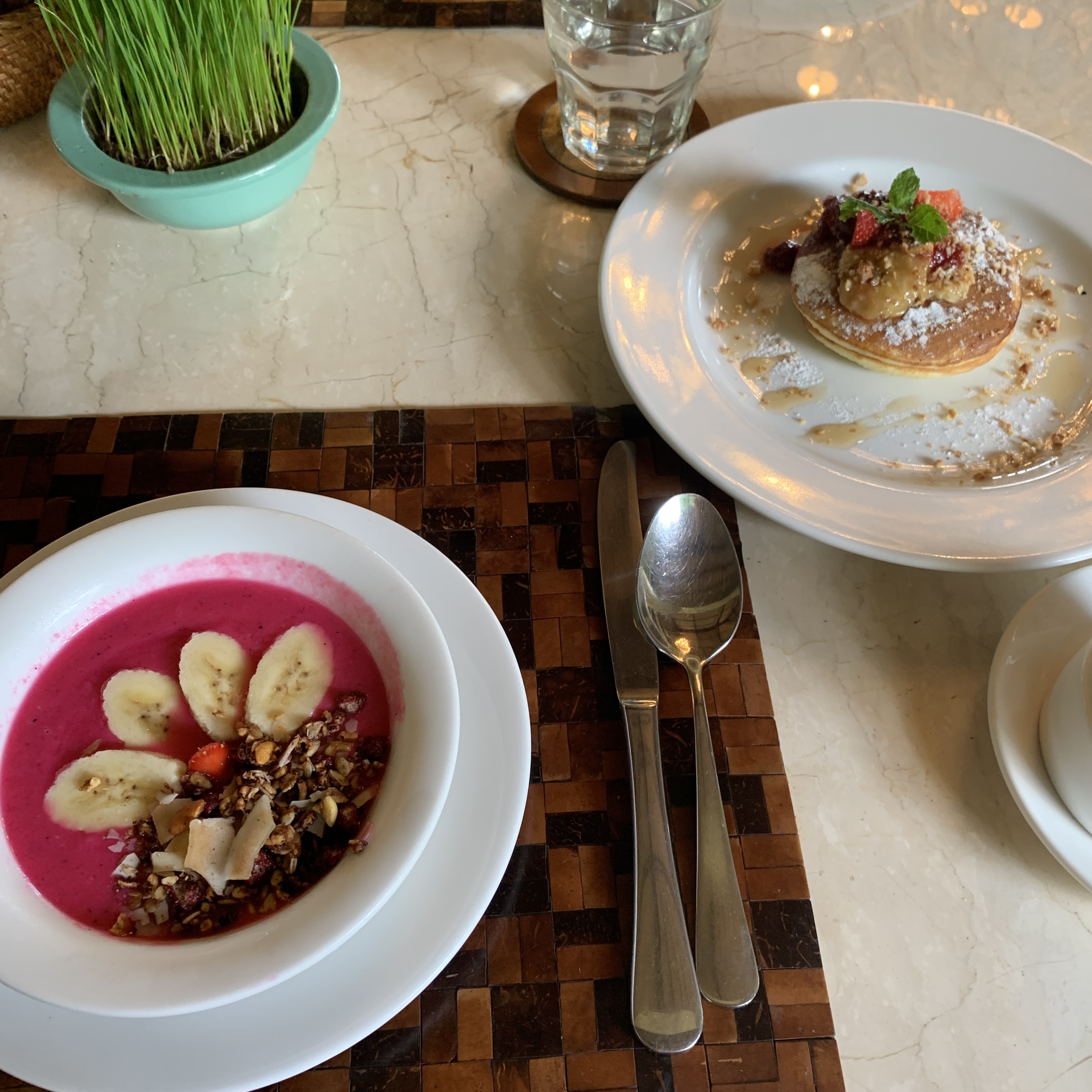 스무디볼, 나시고랭, 빵종류들. 이 외에도 미고랭, 와플, 팬케이크 등이 있으니 취향에 맞게 골라 먹으면 된다. 음료 중 주스랑 스무디는 오늘의 과일이 매일 달라 종류가 매일 바뀐다.