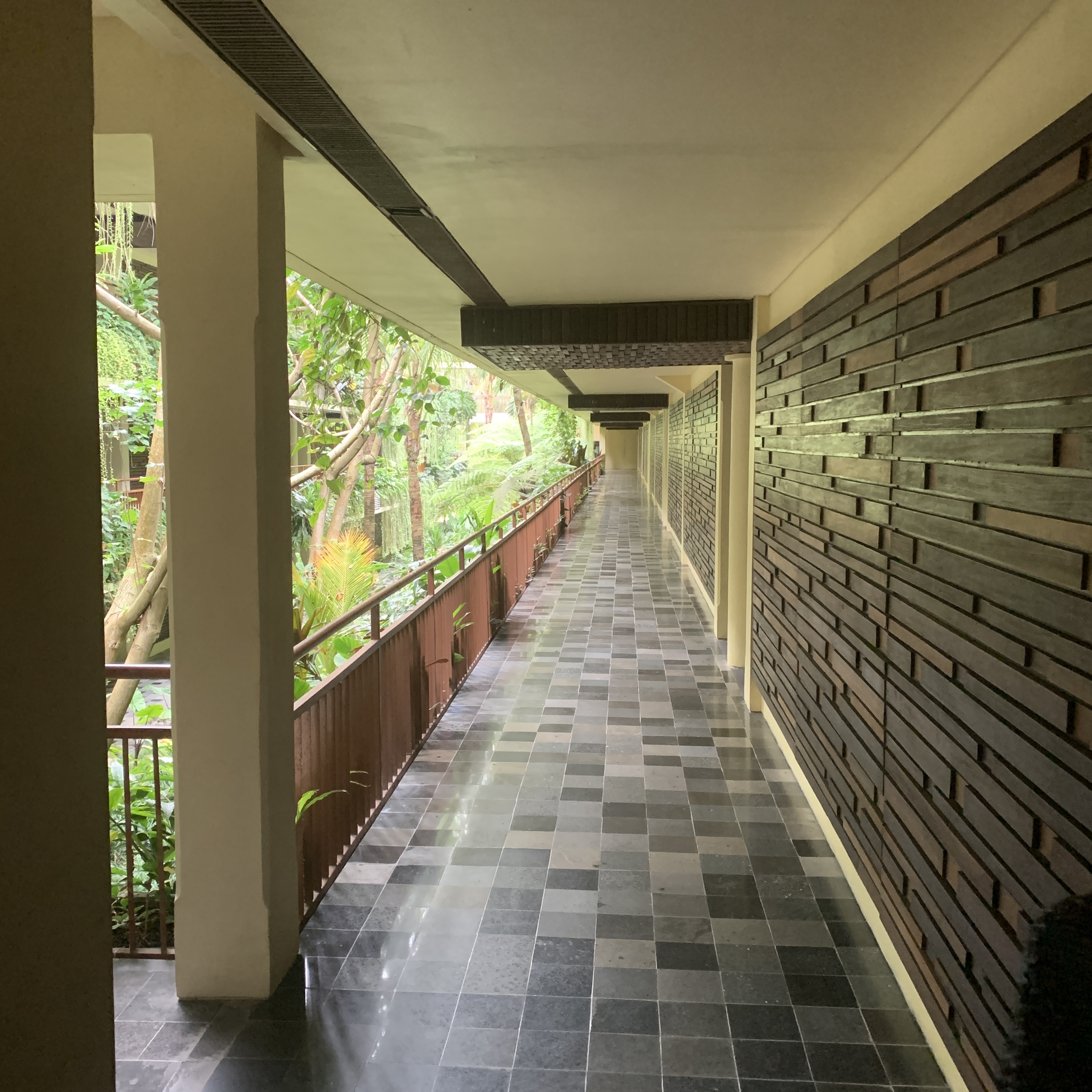 체크인을 하고 객실로 가는 모습. 호텔 중앙부는 오픈되어 있고, 중앙부는 대형 나무들과 자연 친환경적인 식물들로 오랜 시간 동안 자리 잡아서 우붓이라는 장소와 참 잘 어울린다.